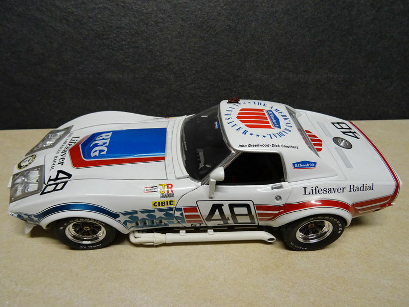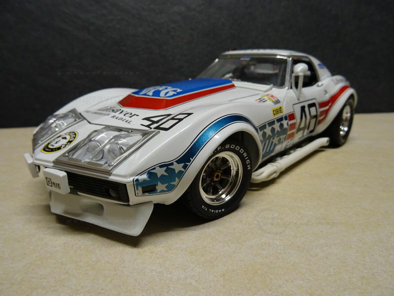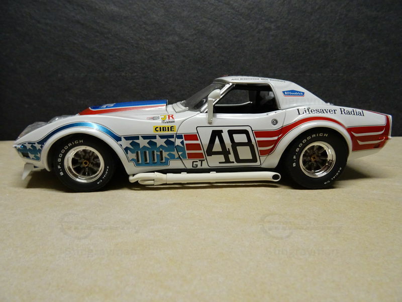 Für Sammler und Modellenthusiasten bietet der 1:18 Modellauto des Chevrolet Corvette Stingray L88, hergestellt von Carousel1, eine beeindruckende Detailtreue und Qualität. Gefertigt aus Diecast-Material, präsentiert das Modell lebendige Farben und authentische Rennlackierung. Wie auf den Fotos des Sammlers "Stingrayman" zu sehen ist, zeigt das Modellauto die Rennfarben des "American Tours" mit Sterne- und Streifenmotiven. Die Sponsornamen wie BF Goodrich, Cibie und JRP sind deutlich und präzise auf der Karosserie angebracht, was das Modell außergewöhnlich realistisch macht.