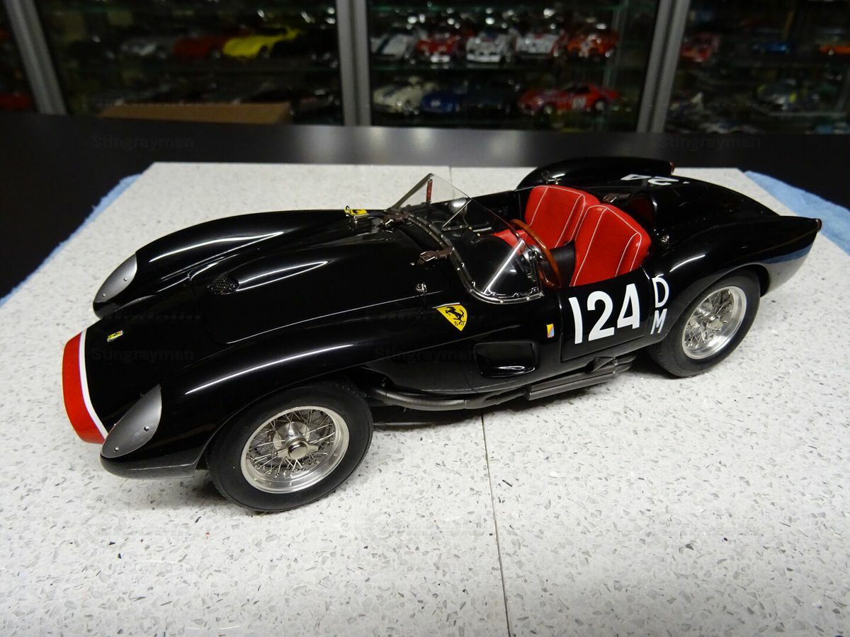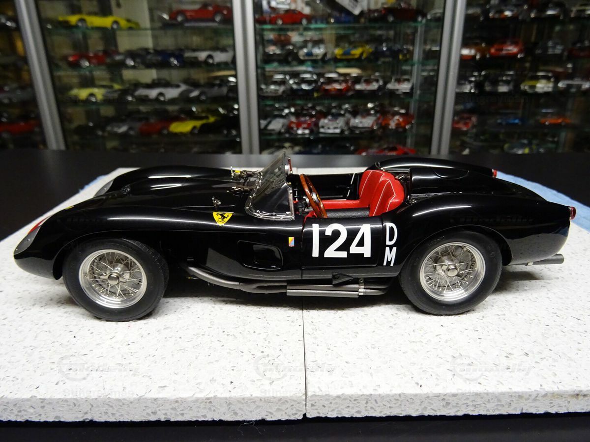Für Modellautoliebhaber bietet CMC ein bemerkenswertes Modell des Ferrari 250 Testa Rossa "Pontoon Fender" im Maßstab 1:18. Dieses Modell ist Teil der Sammlung des Modelly-Mitglieds "Stingrayman" und besticht durch seine detailgetreue Nachbildung. Gefertigt aus Diecast-Material, vereint es Haltbarkeit mit Präzision. Das Modell präsentiert sich in einer eleganten schwarzen Lackierung mit roten Akzentstreifen und der Startnummer "124". Die roten Sitze und das detaillierte Interieur spiegeln das Original perfekt wider und machen dieses Modell zu einem echten Hingucker in jeder Sammlung.
