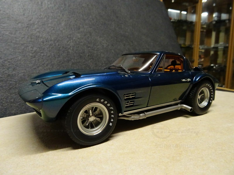 Das Modellauto auf den Fotos ist eine beeindruckende Darstellung des Chevrolet Corvette Grand Sport, hergestellt von Exoto Racing Legends im Maßstab 1:18. Dieses Miniaturmodell ist aus hochwertigem Diecast-Material gefertigt und bietet somit eine robuste und detailreiche Replik des Originals. Der Chevrolet Corvette Grand Sport wurde zum ersten Mal 1963 gebaut und war Teil der zweiten Generation der Corvette, bekannt als C2, die von 1963 bis 1967 produziert wurde. Entwickelt wurde das Fahrzeug, um in der FIA-GT-Rennklasse anzutreten.