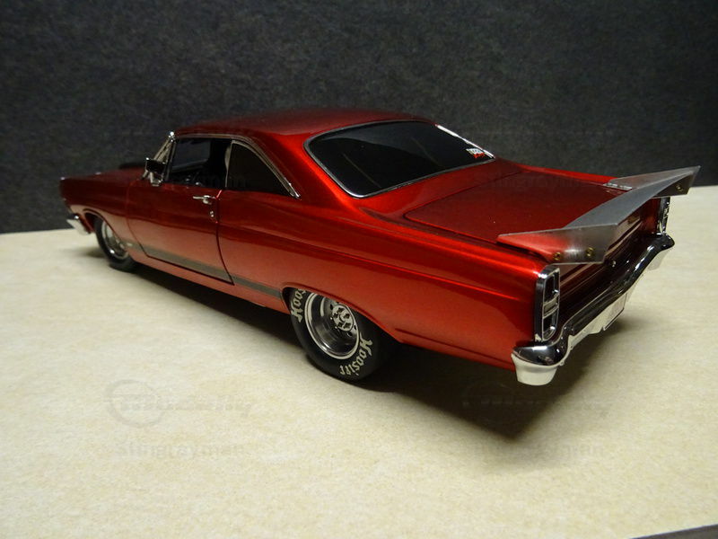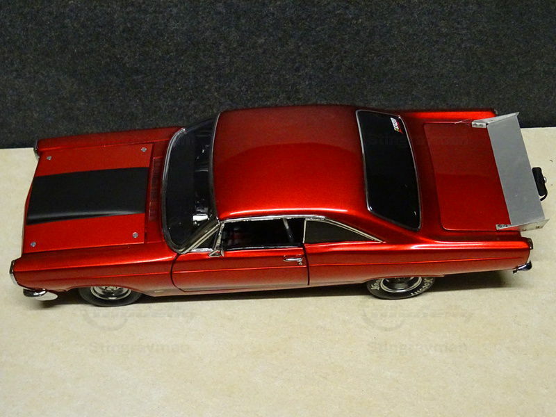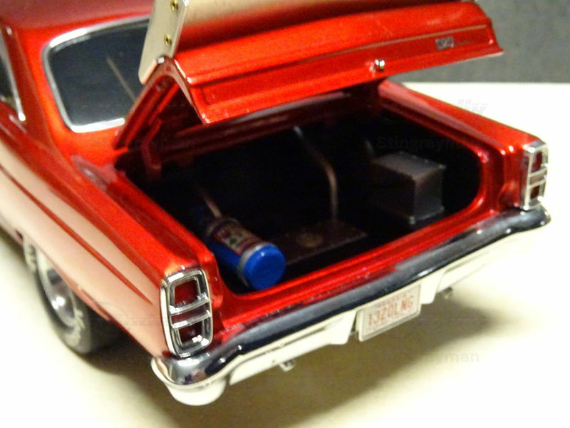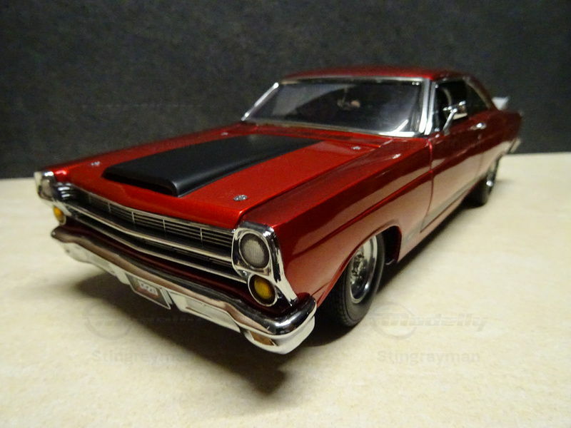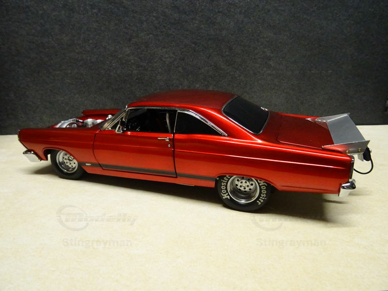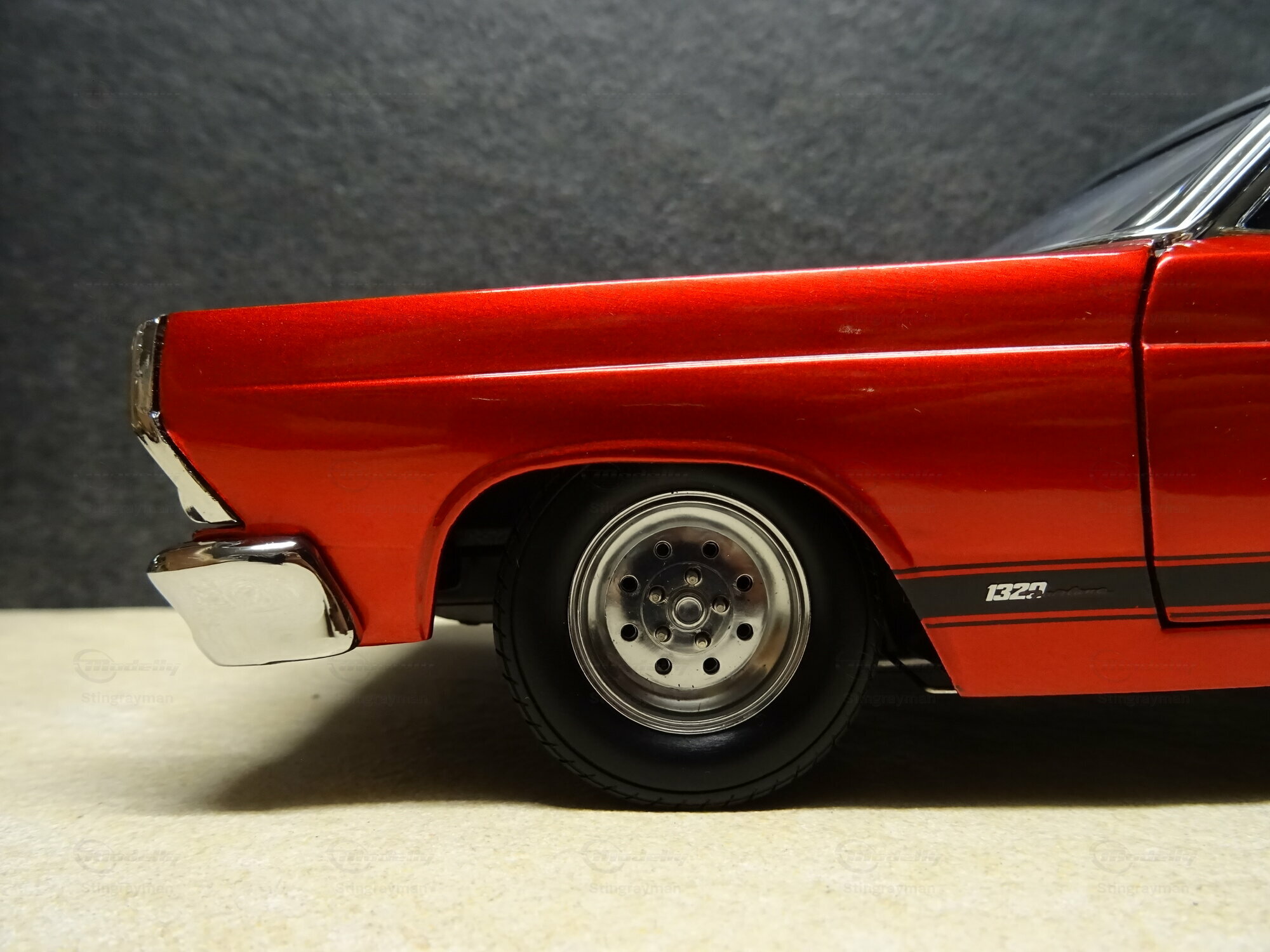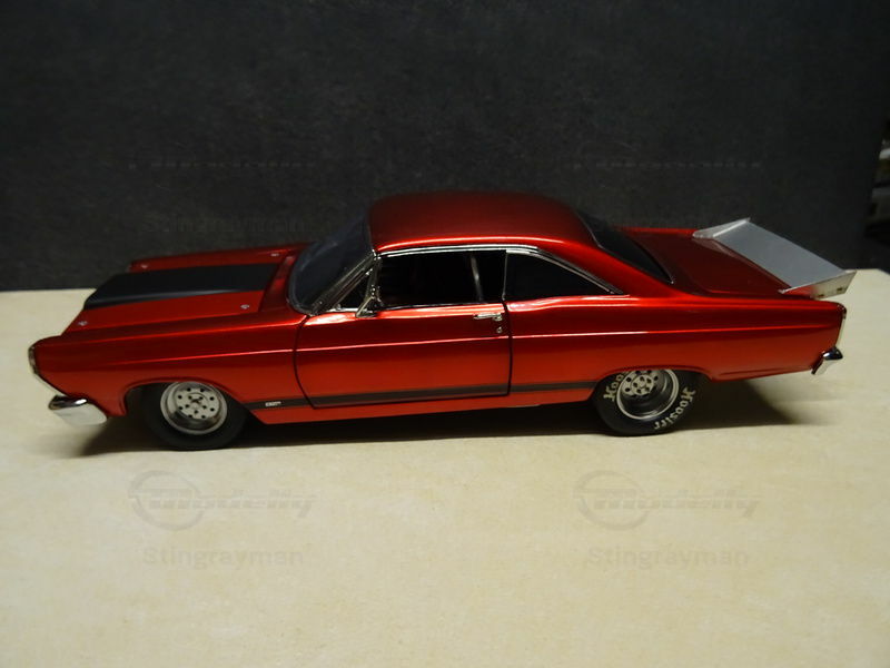 Für Modellauto-Sammler ist der GMP-Nachbau des Ford Fairlane 1320 King Drag im Maßstab 1:18 ein echtes Highlight. Diese Miniatur, die aus dem hochwertigen Material Diecast gefertigt wurde, ist Teil der Sammlung von Modelly-Mitglied "Stingrayman". Die detailreiche Nachbildung beeindruckt durch zahlreiche Originalgetreue Features, wie z.B. die realistischen Räder mit Goodyear-Aufschriften und das fein ausgearbeitete Chassis. Der Lack ist in einem glänzenden Rot gehalten, kombiniert mit schwarzen Akzenten auf der Motorhaube, die das kraftvolle Design des Originals widerspiegeln. Die Scheinwerfer und Rücklichter sind ebenfalls detailgetreu nachgebildet, was die Miniatur besonders authentisch erscheinen lässt.