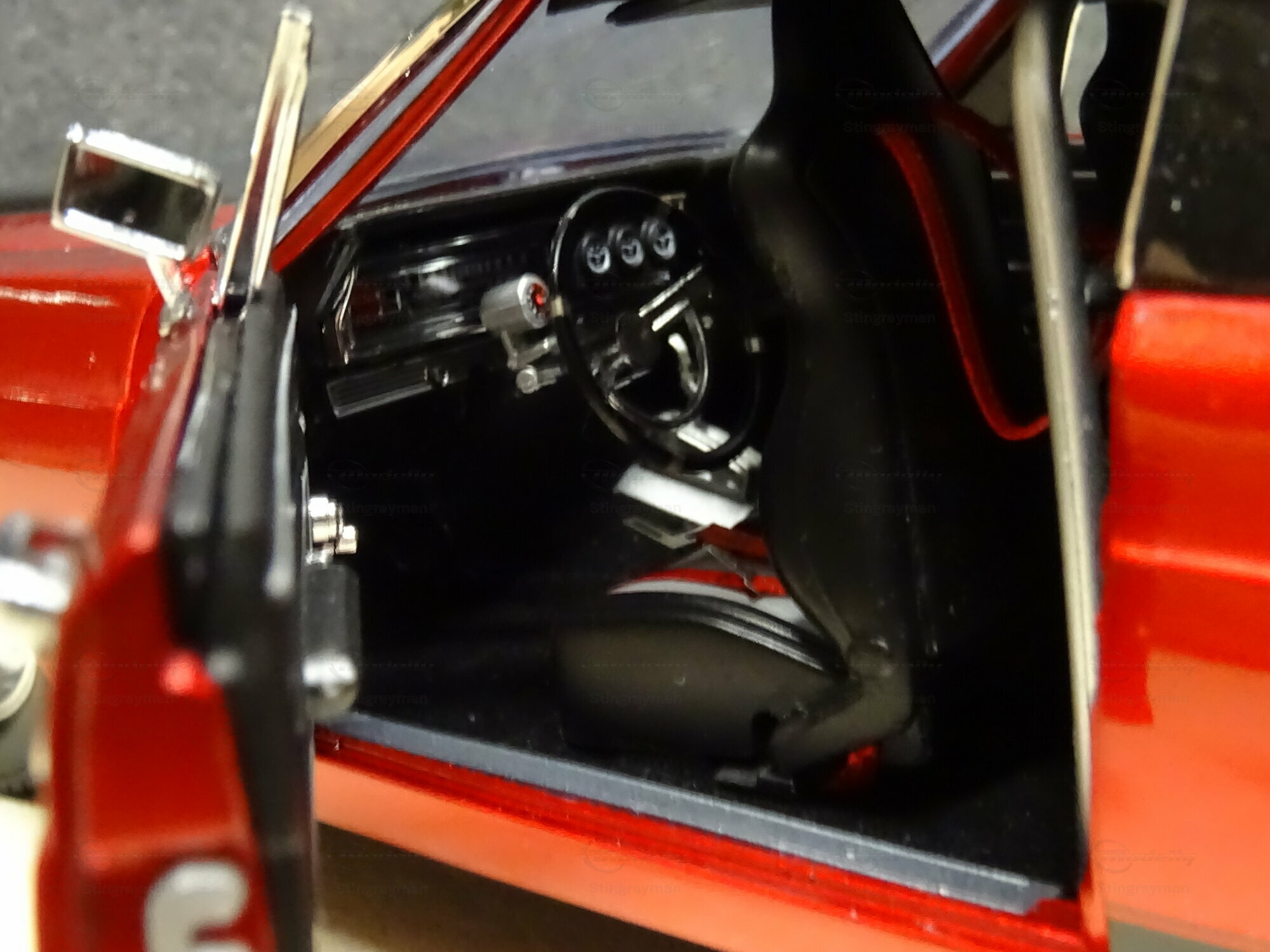 Optisch ist die Miniatur des Ford Fairlane 1320 King Drag eine Augenweide. Der detailreiche Druck und die sorgfältige Verarbeitung sind in jeder Hinsicht beeindruckend. Die Modelllackierung in glänzendem Rot mit schwarzen Akzenten verleiht dem Fahrzeug ein ansprechendes und kraftvolles Erscheinungsbild. Spezielle Sponsorenaufkleber wie Hooker Headers und Goodyear auf der Karosserie sind präzise und sauber aufgebracht, und selbst die kleinsten Details wie die Türgriffe und Spiegel wurden mit größter Sorgfalt gestaltet. Diese Modellcar im Maßstab 1:18 von GMP zeigt, wie akribisch Modellbauer arbeiten, um selbst die kleinsten Details des Originals nachzubilden. Für Sammler ist diese Miniatur ein echtes Juwel in jede Modellauto-Sammlung.