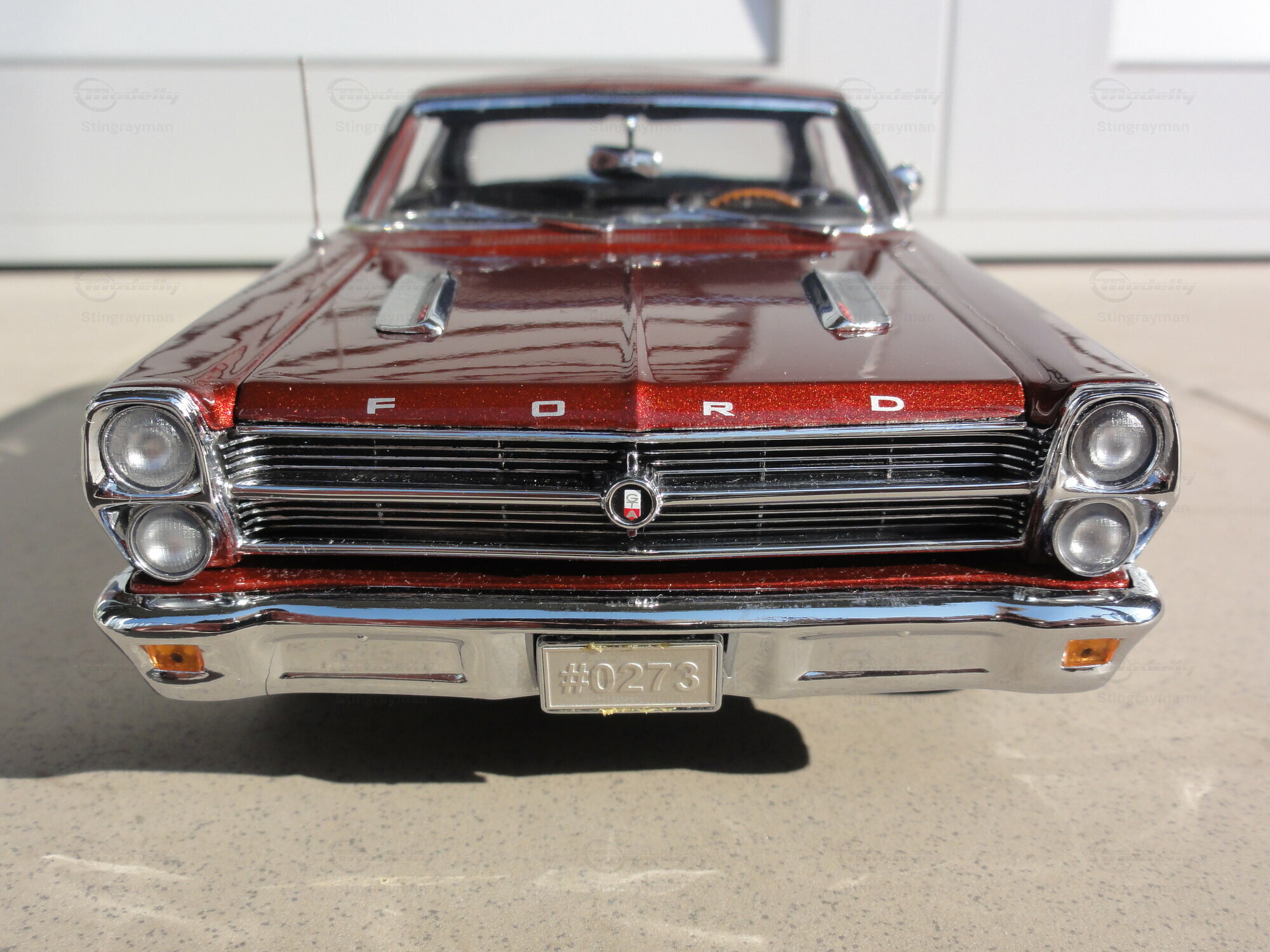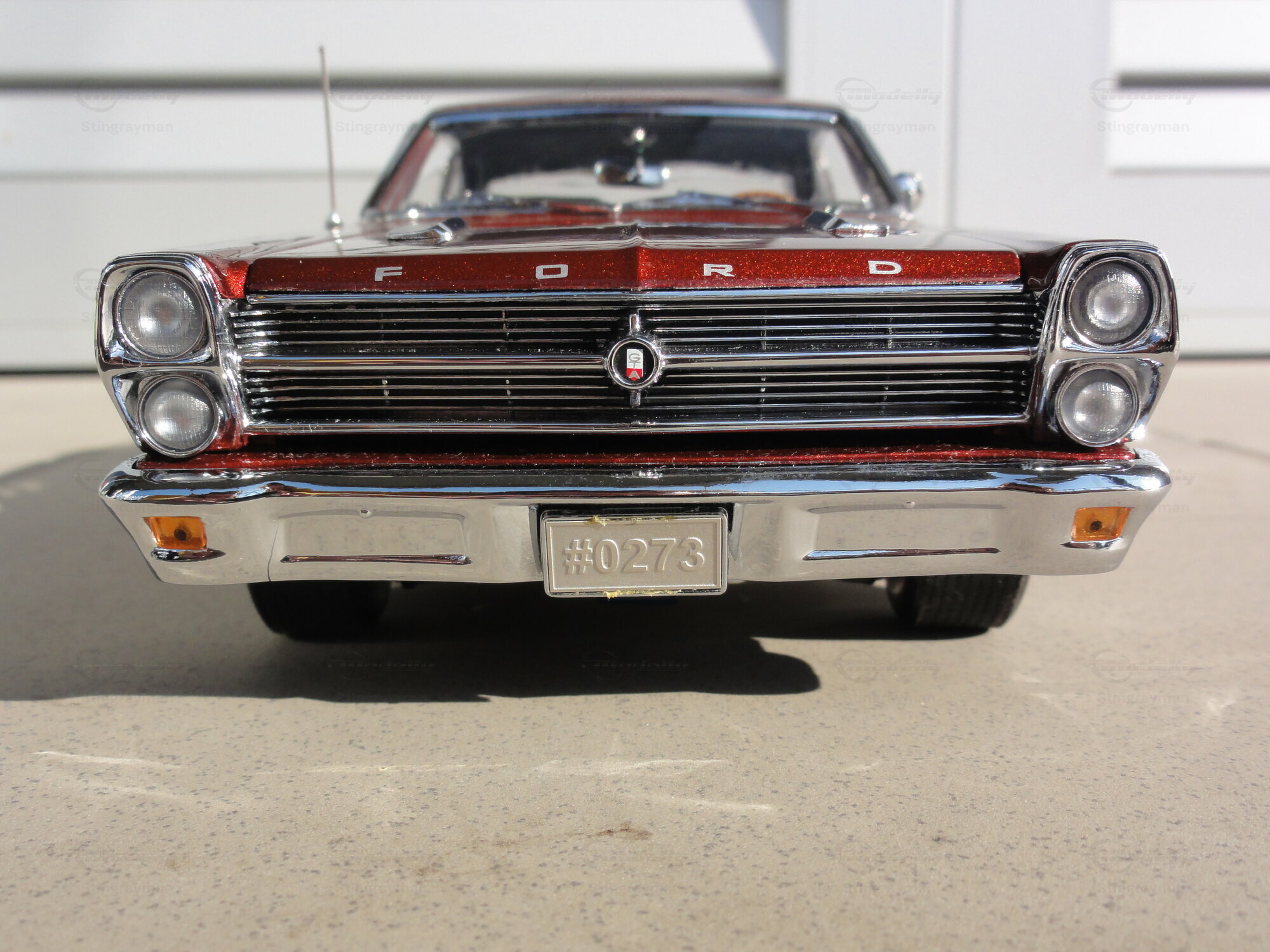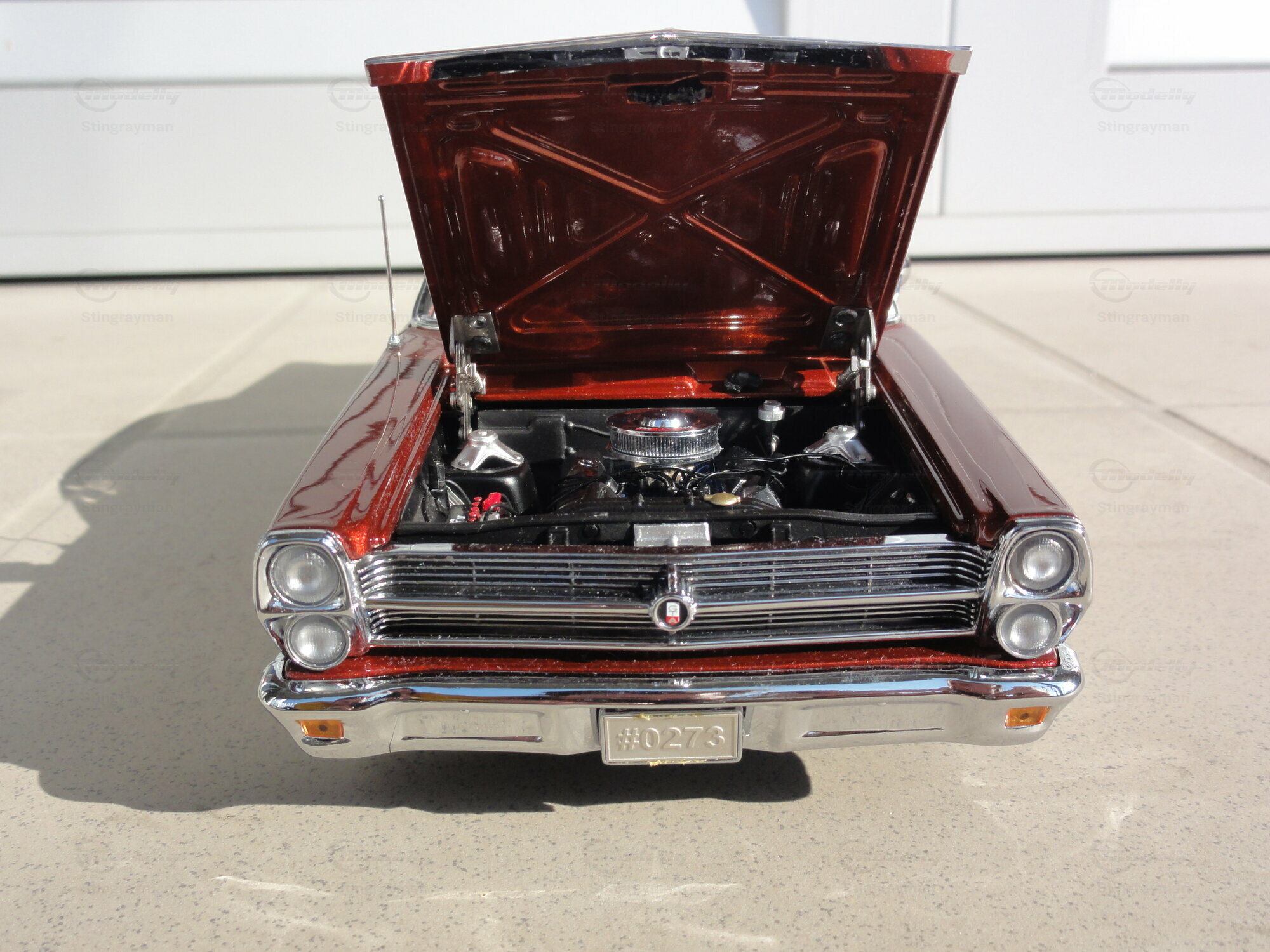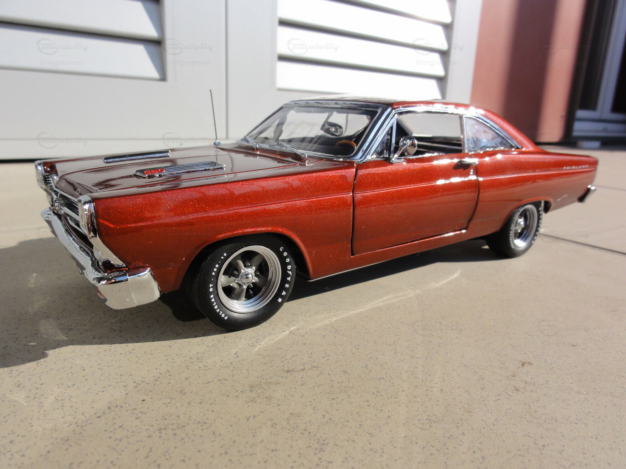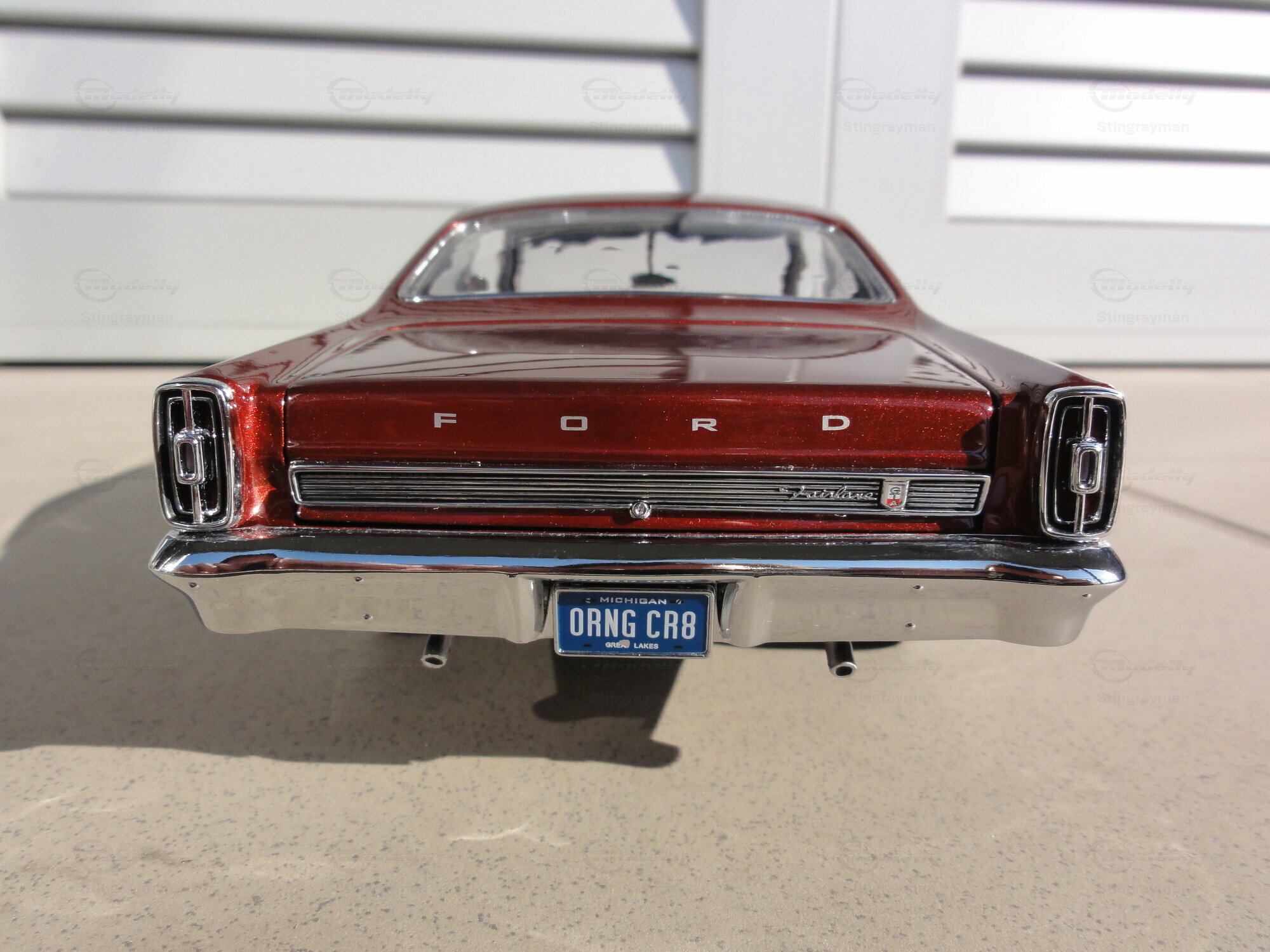 Das Modellauto im Maßstab 1:18, hergestellt von GMP, ist eine präzise Nachbildung des Ford Fairlane. Dieses Modell ist Teil der Sammlung von Modelly-Mitglied "Stingrayman". Es zeichnet sich durch eine detailreiche Verarbeitung aus, darunter funktionierende Türen, eine öffnende Motorhaube und ein detailliertes Interieur. Die roten Lackierung mit einem leicht metallischen Glanz verleiht dem Modell einen authentischen Look. Zudem sind auf der Karosserie die originalen Schriftzüge und Embleme sorgfältig reproduziert. Die Felgen des Modells scheinen von einem renommierten Hersteller, möglicherweise American Racing, zu stammen und tragen wesentlich zur Gesamtoptik bei.