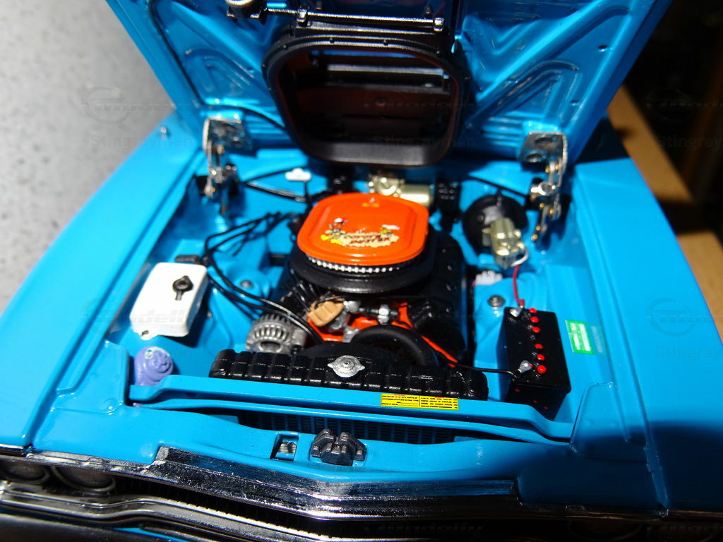 Das Originalfahrzeug hatte diverse Motoroptionen, darunter auch den legendären 426 Hemi V8-Motor, der als höchstleistungsfähige Option galt. Der Hemi-Motor lieferte eine beeindruckende Leistung von 425 PS und war bekannt für seine Standfestigkeit und Leistungsfähigkeit. Neben den verschiedenen Motorisierungen beeindruckte der Plymouth Road Runner auch durch technischen Details wie die Einführung von Air Grabber-Hauben, ein Luftansaugsystem, das die Leistung des Motors optimierte. Besonders bemerkenswert ist das spezielle Luftansaugsystem, dass das Fahrzeug bei Hochgeschwindigkeitsfahrten effizienter und leistungsstärker machte. 1970 markierte auch bemerkenswerte globale Ereignisse, wie die Einführung des Nikon F2 Kamera-Systems und den Ringkampf um die Vorherrschaft im Kalten Krieg zwischen Ost und West, die die Zeit, in der der Plymouth Road Runner unterwegs war, untermauern.