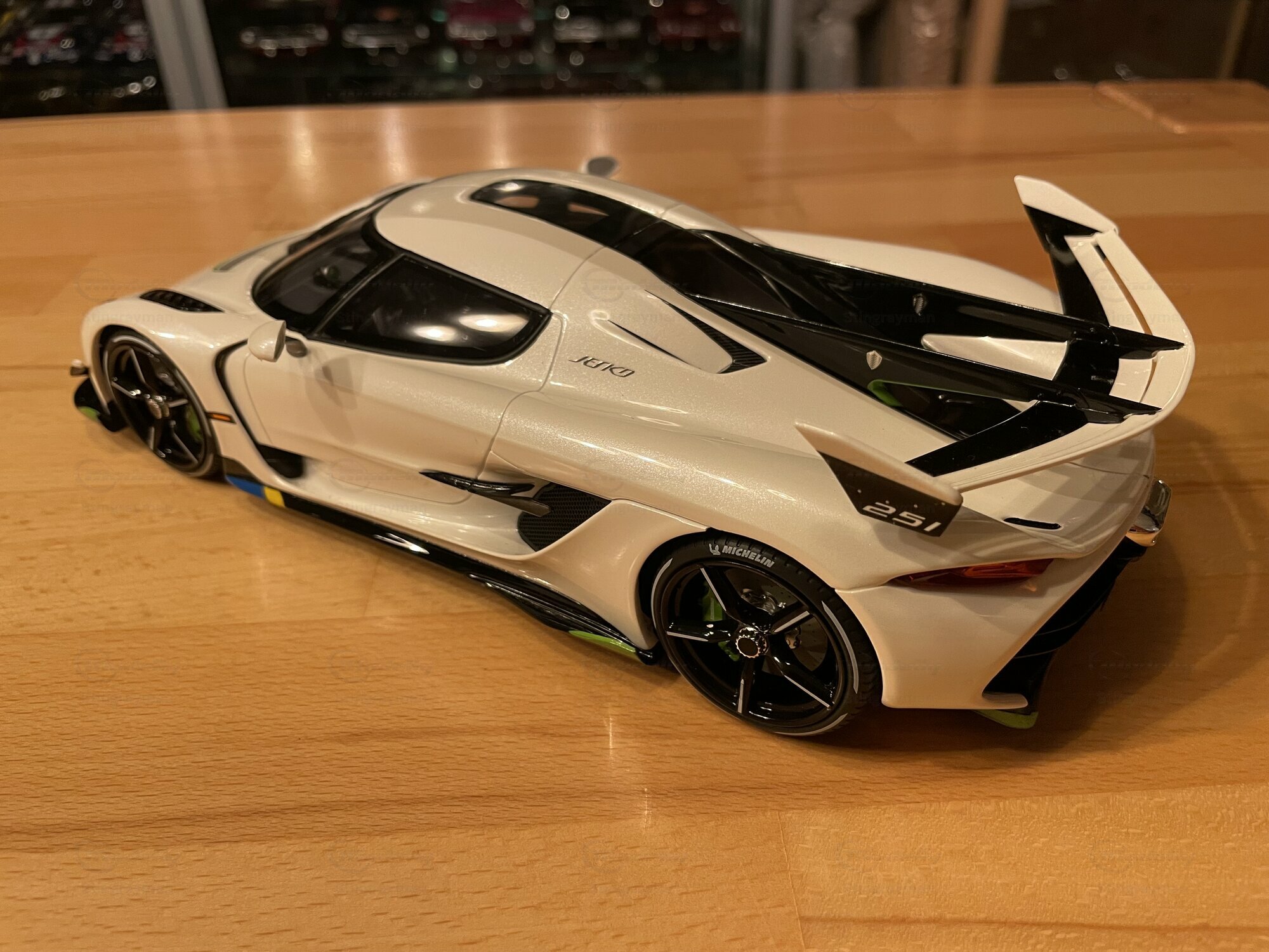 Die auf den Fotos gezeigte 1:18 Scale Miniatur basiert auf dem beeindruckenden Koenigsegg Jesko, einem Meisterwerk schwedischer Ingenieurskunst. Der Koenigsegg Jesko wurde ab dem Jahr 2019 präsentiert und zählt zu den fortschrittlichsten Hypercars seiner Generation. Er ist der Nachfolger des weltbekannten Koenigsegg Agera RS und wurde nach dem Vater des Firmengründers von Christian von Koenigsegg benannt.