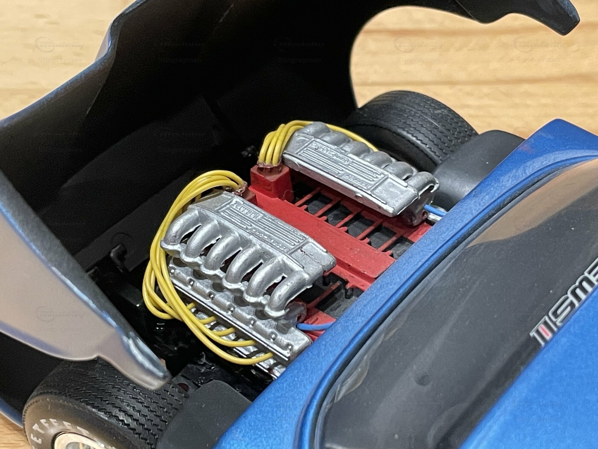 Kühlergrill und der originale Motor fehlt, als Ersatz wurde ein V12 Motor eingebaut