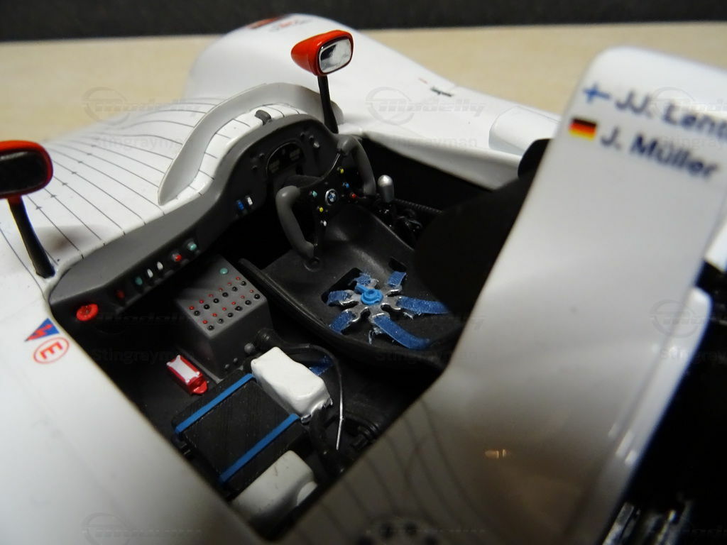 Von der Flügelform des Heckspoilers bis hin zu den Racing-Felgen, bietet die 1:18-Minivariante des BMW V12 LMR viele ihrer Vorzüge. Der Innenraum, obwohl weniger sichtbar, ist mit feinen Details versehen, die die Armaturen sowie das Lenkrad und die Sicherheitsgurte umfassen. Das Modell befindet sich in der Sammlung des Modelly-Mitglieds "Stingrayman" und ist ein Paradebeispiel für die Sorgfalt und Präzision, die Markensammlerstücke von Kyosho ausmacht. Für Liebhaber von Diecast-Modellen und historischem Motorsport ist dieses Modell ein wertvolles und ansehnliches Stück, das viele Aspekte des originalen BMW V12 LMR in Miniaturform einfängt.