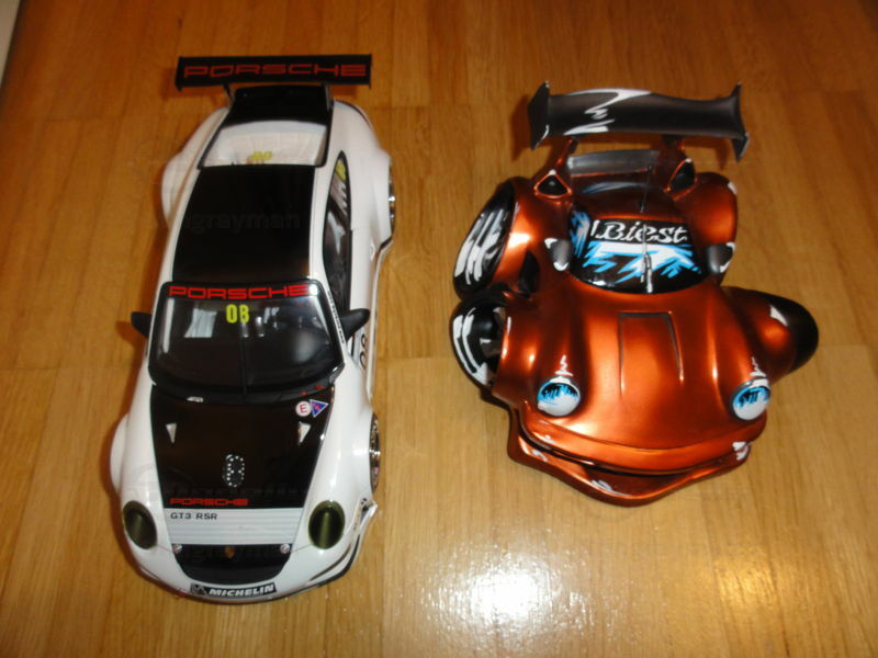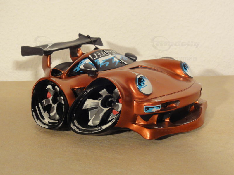 Das Miniaturmodell, das Modelly-Mitglied "Stingrayman" präsentiert, basiert auf dem bekannten Porsche Das Biest. Dieses Modellauto im 1:24 Maßstab wurde von Speed Freaks hergestellt und weist eine detailreiche Gestaltung auf. Die Verwendung von Resin als Material sorgt für eine hochwertige, robuste Nachbildung. Das Design des Originalautos, insbesondere die markanten Züge und aerodynamischen Formen, sind in dieser Miniatur eindrucksvoll dargestellt. Der kraftvolle Frontspoiler, die großflächigen Lufteinlässe und der prägnante Heckflügel machen den Modellnachbau zu einem echten Hingucker in jeder Sammlung. Die auffällige Lackierung des Modells fügt eine weitere Ebene an Authentizität und visuellem Reiz hinzu.