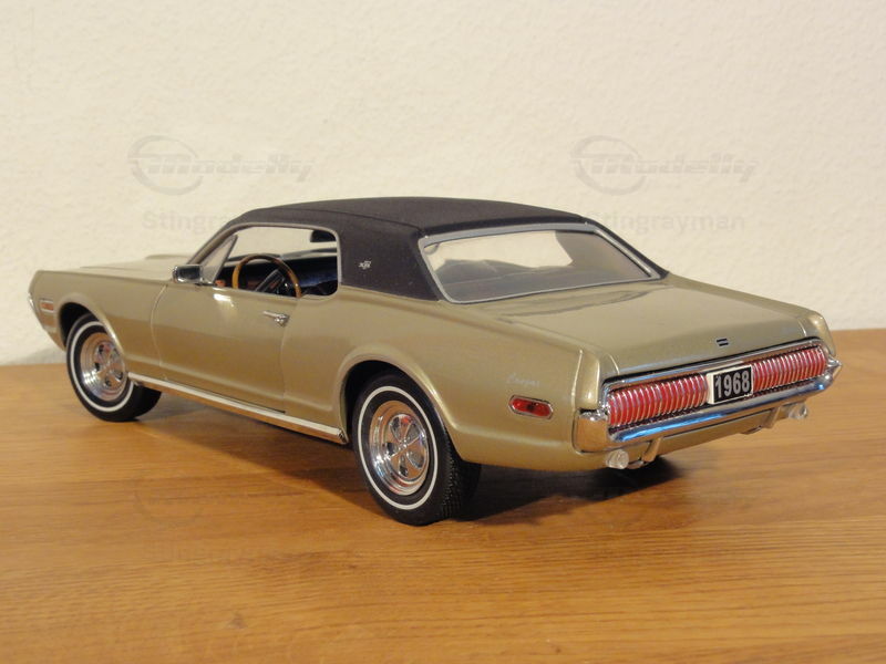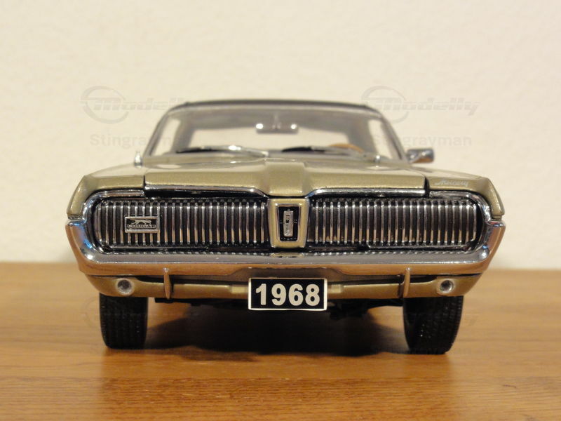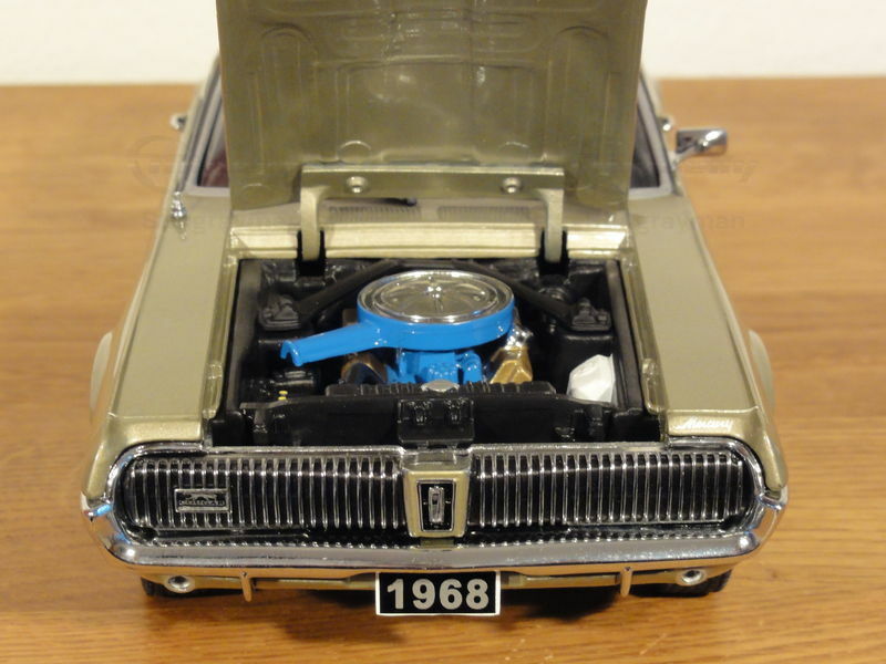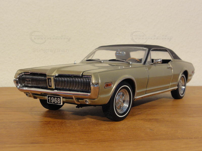 Der Mercury Cougar XR7 debütierte im Jahr 1967 und gehört zur 1. Generation des Modells, die von 1967 bis 1970 in Produktion war. Der Cougar wurde als luxuriösere Alternative zum Ford Mustang konzipiert und teilte sich grundlegende Plattformen mit diesem. Der Entwurf stammte von David Ash und John Aiken, die den speziellen Fokus auf die Mischung aus Leistung und gehobenem Komfort legten. Der Cougar war bekannt für seine versteckten Scheinwerfer und die auffälligen vertikalen Lamellen am Kühlergrill, die auch in der gezeigten Miniatur detailgetreu wiedergegeben sind.