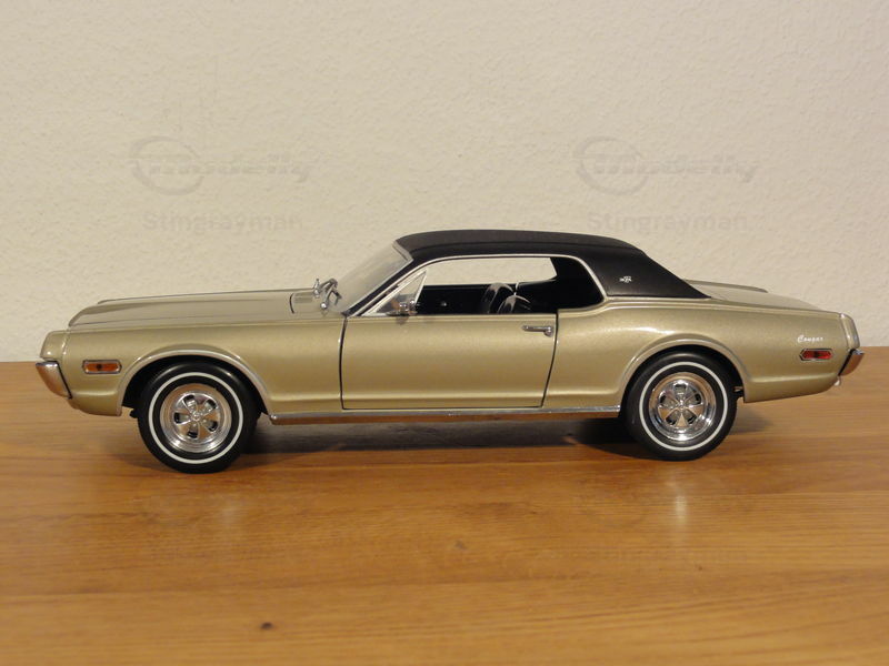 Das hier gezeigte Modellauto im Maßstab 1:18 von Sunstar ist bis ins Detail nachempfunden und Bestandteil der Sammlung des Modelly-Mitglieds "Stingrayman". Der Kühlergrill mit den vertikalen Lamellen und die Kennzeichenplatte mit der Jahreszahl 1968 sind genau wie das Original. Auch das Metallic-Gold der Lackierung und das schwarze Vinyl-Verdeck entsprechen der echten Fahrzeugausführung. Die Reifen und Felgen des Modells sind ebenfalls originalgetreu, und die silbernen Felgen mit Chromfinish verleihen dem Modell seine authentische Optik.