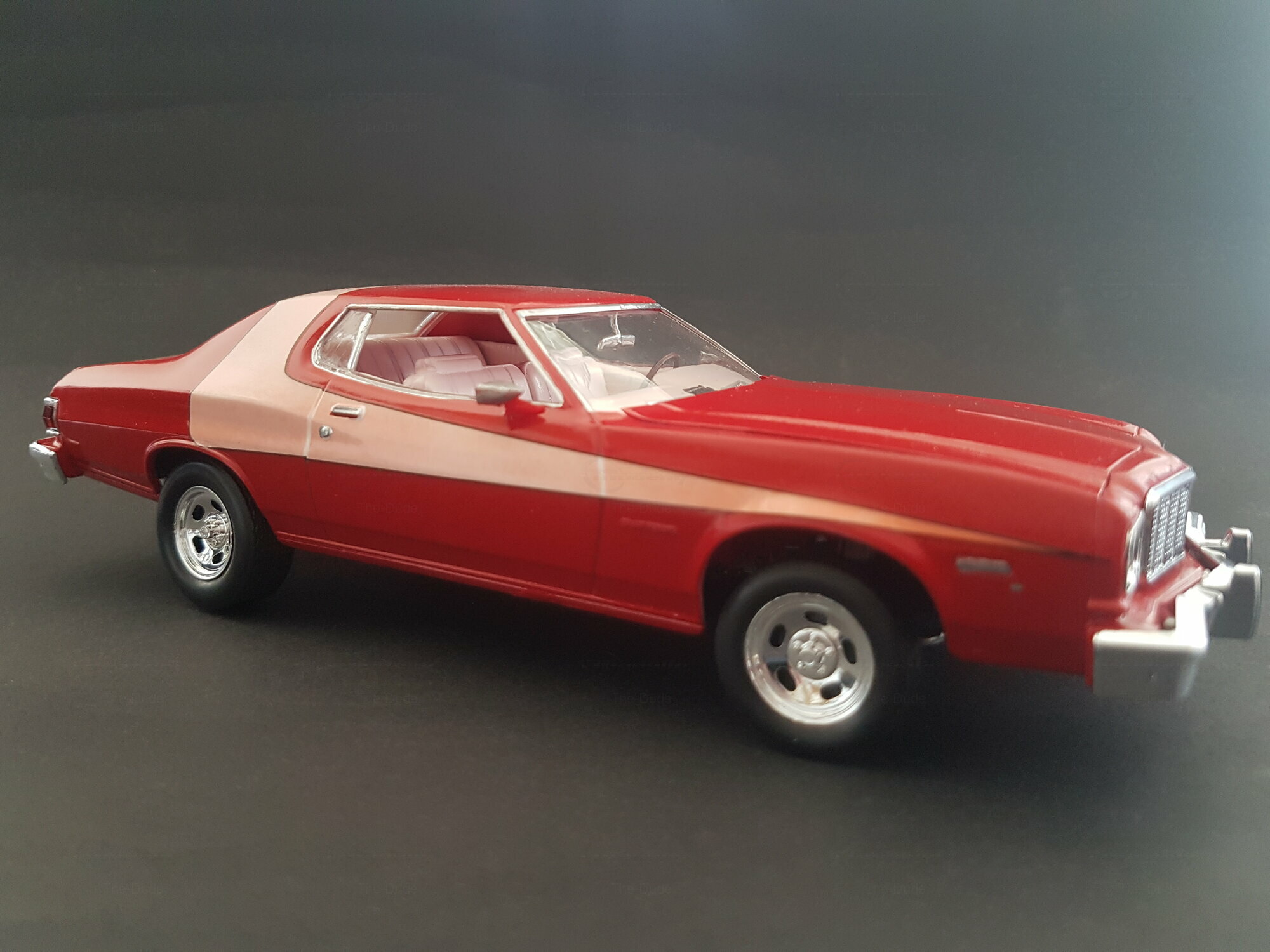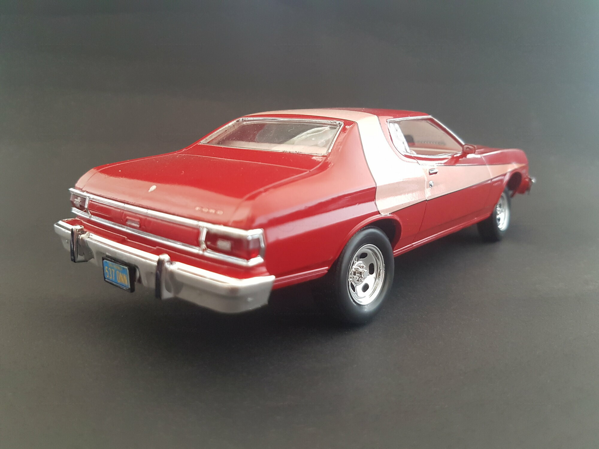 Das Modellauto im Maßstab 1:25, welches auf dem Ford Torino basiert, wurde von Revell gefertigt. Es handelt sich um eine präzise Nachbildung aus dem Material Kunststoff, die viele Details des Originals erfasst. Auffällig an diesem Modell sind die akkuraten Proportionen und die feine Verarbeitung. Jedoch ist zu beachten, dass dieses Modell modifiziert wurde und nicht das von Revell ursprünglich produzierte Produkt darstellt.