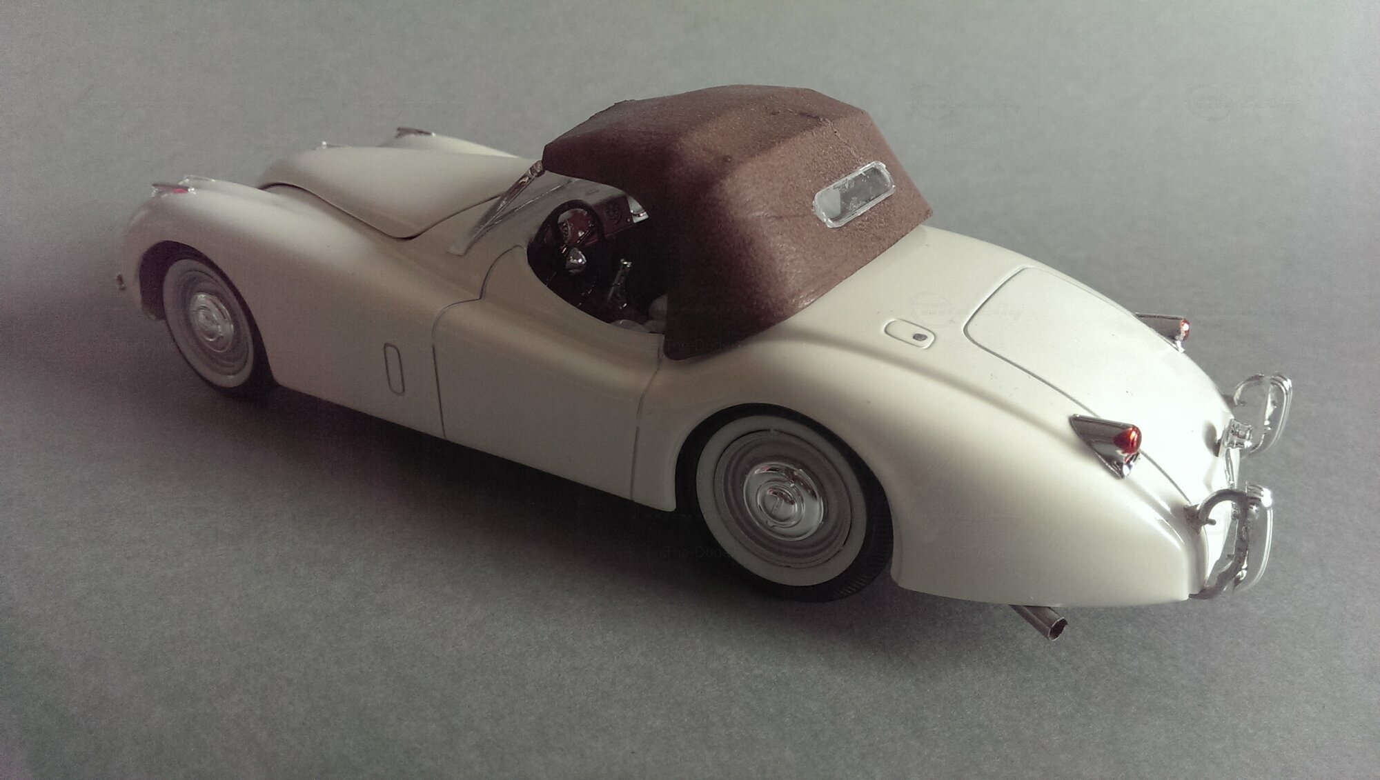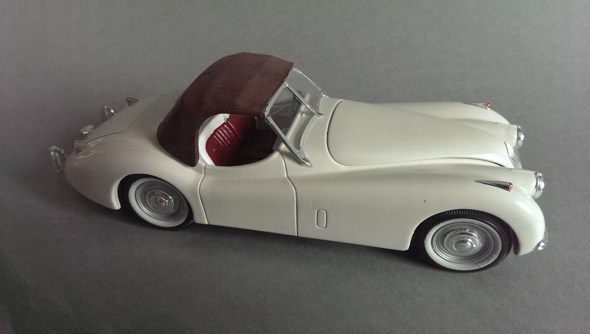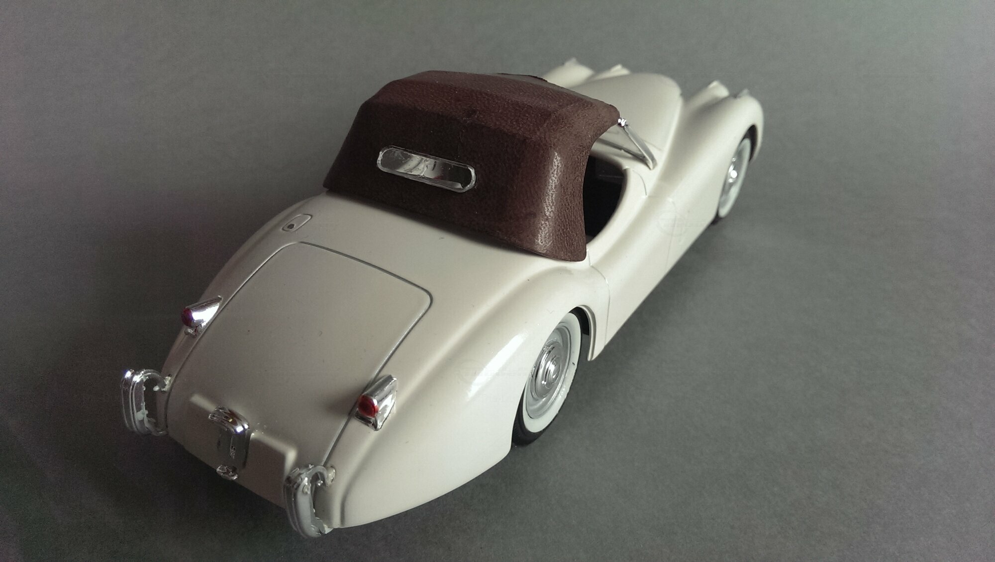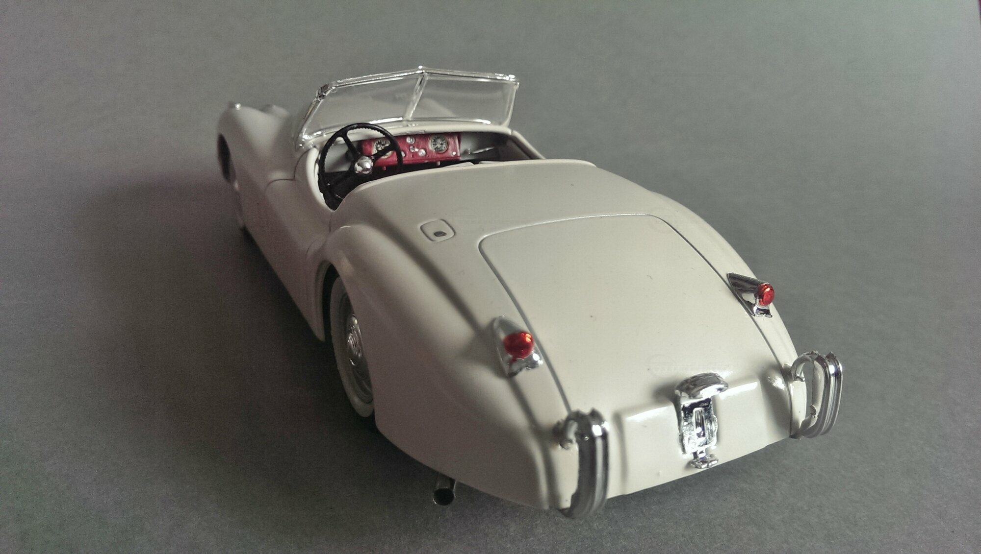 Das gezeigte Modell des Jaguar XK 120 im Maßstab 1:25 ist ein interessantes Sammlerstück für Modellauto-Enthusiasten weltweit. Durch die Modifikation durch "The-Dude" erhält dieses Modell eine individuelle Note, die es von Standardmodellen abhebt. Der Verzicht auf übertriebene decorative Elemente lässt die klassischen Linien des Jaguar XK 120 besonders gut zur Geltung kommen. Die in metallisch silber gehaltenen Felgen und die klare, glatte Lackierung sorgen dafür, dass das Modell sowohl im Regal als auch in einer Vitrine eine sehr gute Figur macht. Der ursprüngliche Charme des Jaguar XK 120 bleibt vollständig erhalten, während die Modifikationen für zusätzliche Individualität sorgen. Das Modell bietet ambitionierten Sammlern die Möglichkeit, ein Stück Automobilgeschichte im Kleinformat zu besitzen und ist zugleich ein Beweis für die handwerkliche Kunstfertigkeit von Modellbauern.