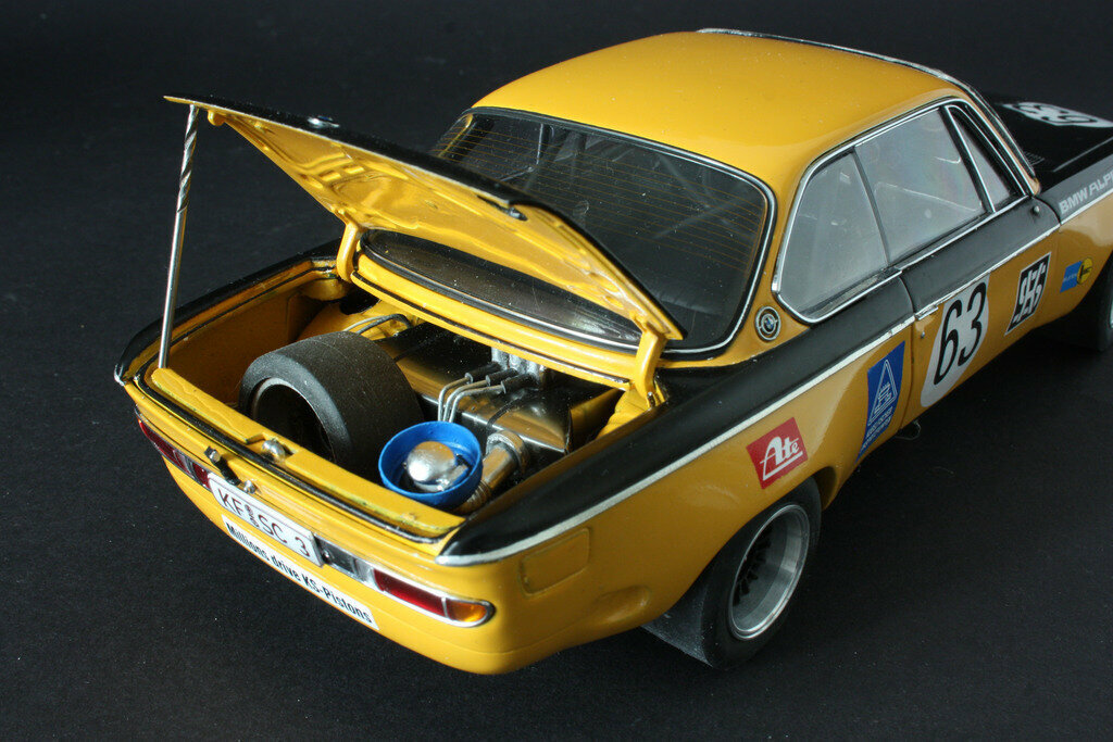 Die auffällige Lackierung des Modells, die aus einem gold-schwarzen Farbschema besteht, bleibt der Rennhistorie des Originals treu. Die spezifischen Linien und Formen wurden sorgfältig nachgebildet, ebenso wie die markanten Badges und Sponsorenaufkleber. Die markante "63" auf den Türen und der Haube unterstreicht den Renncharakter des Fahrzeugs. Detailgetreu sind auch die lackierten Felgen, die dem Modell eine sportliche und realistische Erscheinung verleihen. Jedes Element des Miniaturwagens zeigt die Liebe zum Detail, die von "TrolleyJack" in dieses einzigartige Sammlerstück eingebracht wurde. Diese modifizierte Nachbildung ist ein Muss für jeden ernsthaften Sammler und Liebhaber von Modellfahrzeugen.