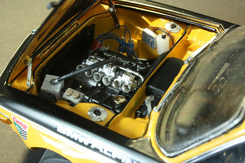 Der BMW 2800 CS Alpina war bekannt für seine fortschrittliche Technik und Leistung. Ausgestattet mit einem 2.8-Liter-Reihensechszylindermotor, leistete das Fahrzeug beeindruckende 200 PS in seiner modifizierten Alpina-Version. Es verfügte über eine elektronische Einspritzung von Kugelfischer und eine 5-Gang Getriebe, die eine präzise Steuerung und schnelle Gängewechsel ermöglichten. Der Wagen konnte eine Höchstgeschwindigkeit von 220 km/h erreichen und beschleunigte von 0 auf 100 km/h in nur 7,7 Sekunden. Diese technischen Eigenschaften machten den BMW 2800 CS zu einem der leistungsstärksten Fahrzeuge seiner Zeit und einem beliebten Modell unter Rennfahrern.