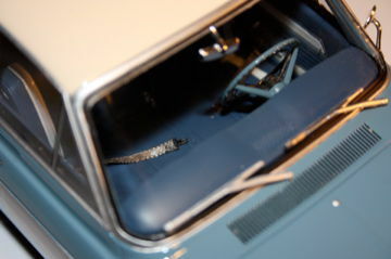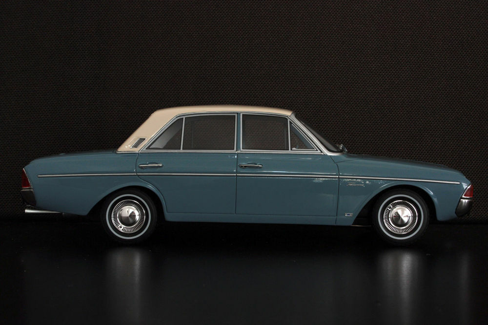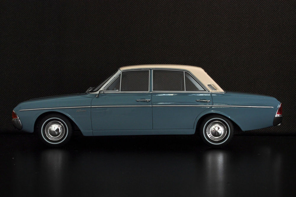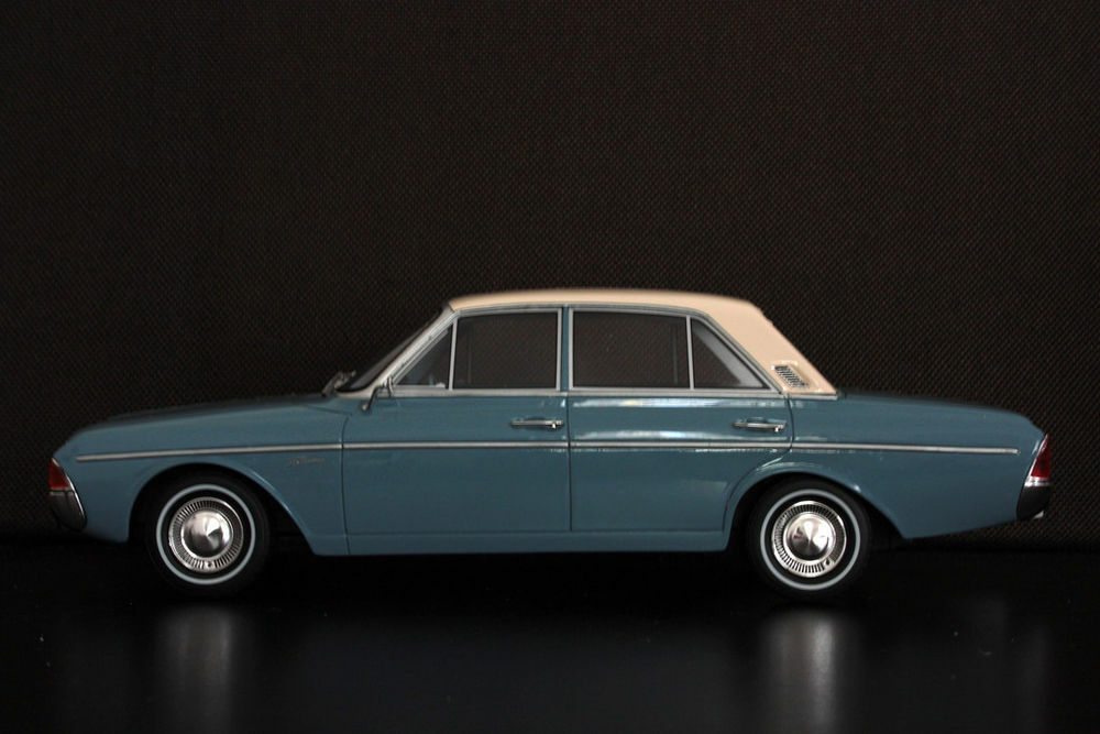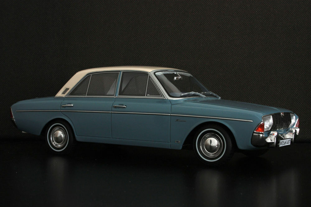 Der Besitzer "TrolleyJack" hat das Modell des Ford Taunus P5 20M TS im 1:18 Maßstab, das von BoS produziert wurde, außergewöhnlich detailliert modifiziert. Die türkisfarbene Lackierung wird durch das cremefarbene Dach komplementiert, was einen eleganten Look erschafft. Detailgetreu wurde auch der Innenraum ausgearbeitet, obwohl dieser auf den Fotos nicht sichtbar ist. Bemerkenswert ist, wie "TrolleyJack" die originalen Felgen beibehalten hat, die den Stil der 1960er Jahre gut einfangen. Dieses Modellauto ermöglicht es Sammlern, einen genaueren Blick auf ein historisch wichtiges Fahrzeug zu werfen und in eine andere Ära einzutauchen. Die Besonderheit an diesem Modell ist, dass es durch die Modifikationen deutlich von der regulären Version von BoS abweicht und somit ein Einzelstück darstellt.