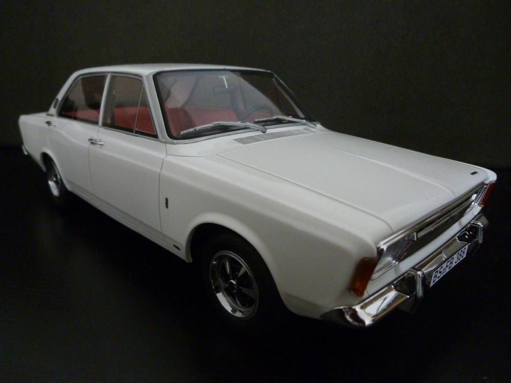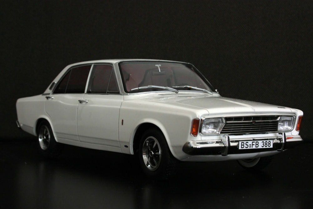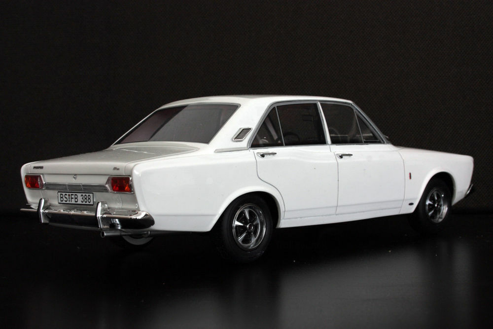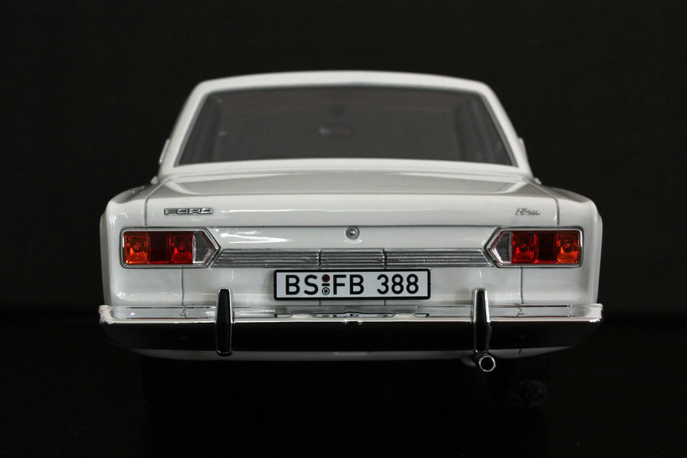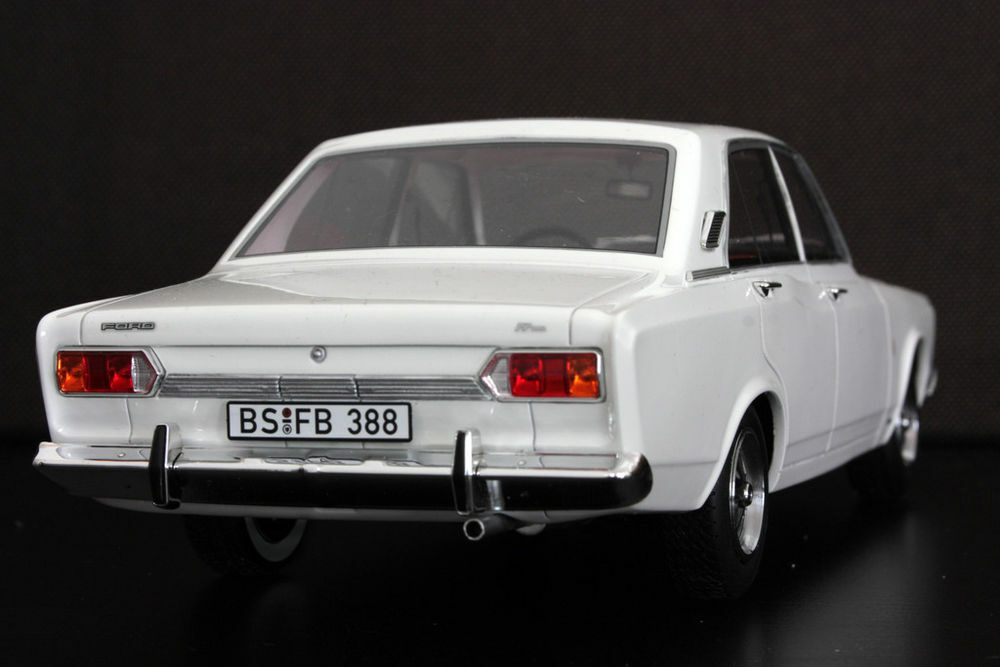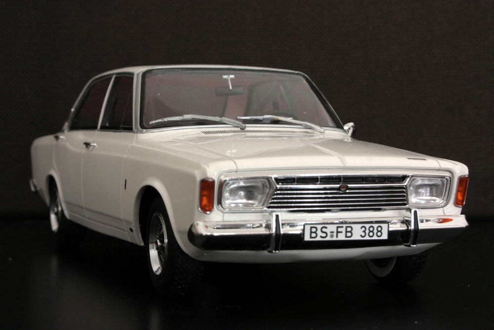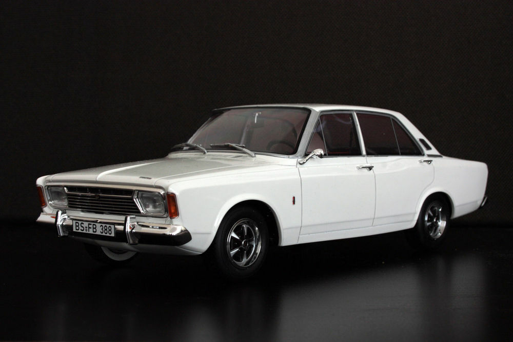 Das hier gezeigte Miniaturmodell im Maßstab 1:18 von BoS ist eine faszinierende Darstellung des klassischen Ford Taunus P7a 17M. Hervorzuheben ist, dass es sich hier um ein modifiziertes Miniaturmodell handelt und nicht um das ursprünglich von BoS entworfene Produkt. Das Modell im Maßstab 1:18, präsentiert in der Sammlung des Modelly-Mitglieds „TrolleyJack“, zeigt beeindruckende Details, die Sammler weltweit begeistern. Auf den Fotos ist zu erkennen, dass das Modell detaillierte Nachbildungen der Scheinwerfer, des Kühlergrills und der Chromleisten des Originals aufweist. Die Felgen, die möglicherweise von ATS stammen, runden die realistische Erscheinung ab.