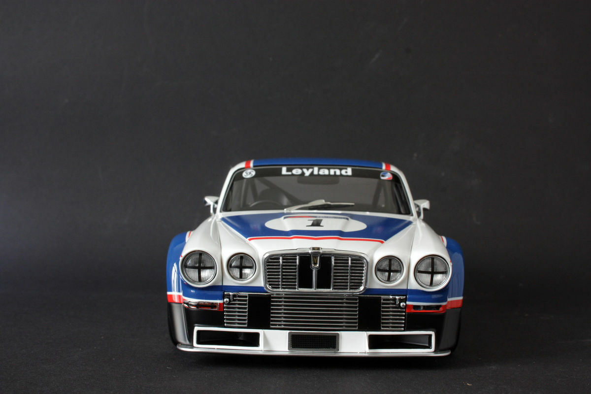Das vorliegende Modellauto im 1:18 Maßstab von BoS basiert auf dem Jaguar XJ12C Gr.2 Broadspeed und beeindruckt durch seine detailgetreue Ausführung. Hergestellt aus Resin, bietet dieses Modell präzise Nachbildungen der Rennversion, einschließlich der weit ausgestellten Kotflügel, des großen Heckspoilers und der speziellen Rennlackierung. Die Lackierung in den Farben Weiß, Blau und Rot ist originalgetreu nachempfunden und wird durch Sponsorenaufkleber von Leyland ergänzt. Besonderen Wert wurde ebenfalls auf die feinen Details wie die goldenen Felgen und die realistischen Auspuffrohre gelegt. Das Modell ist ein besonderes Highlight in der Sammlung von Modelly-Mitglied „TrolleyJack“.