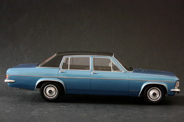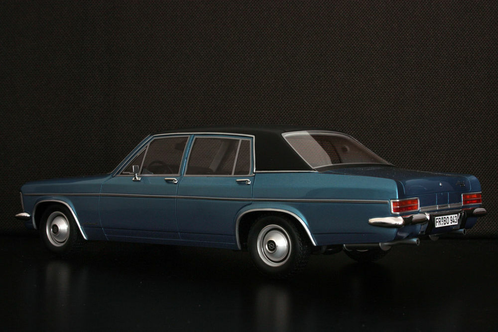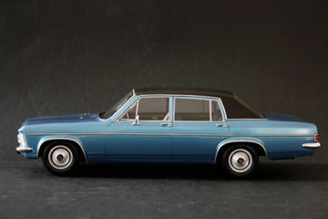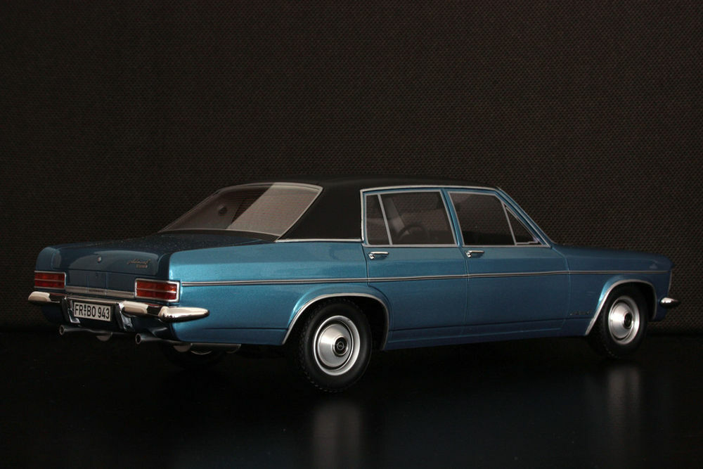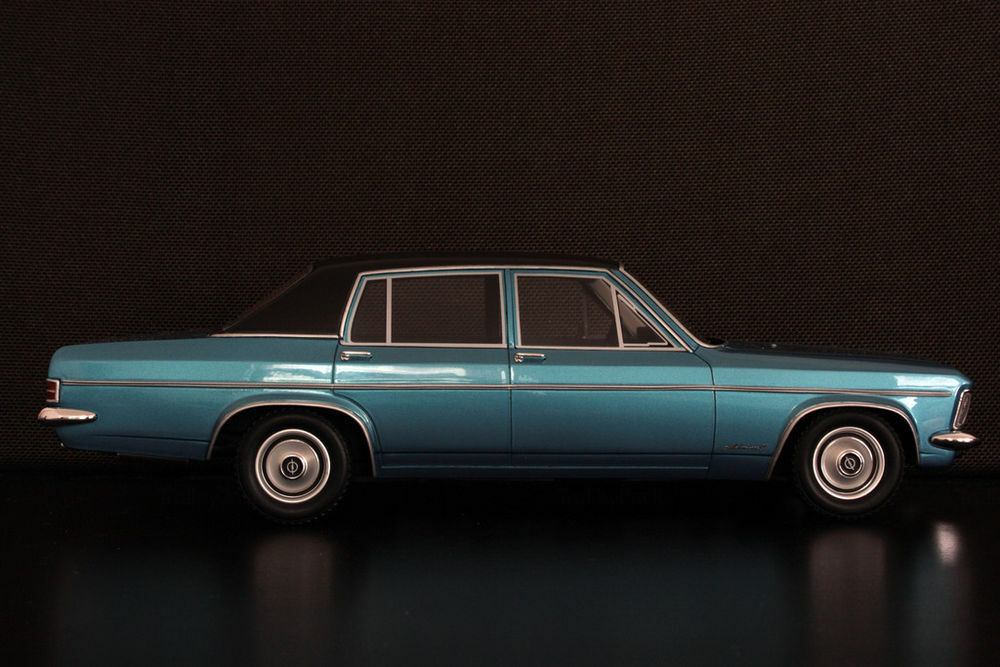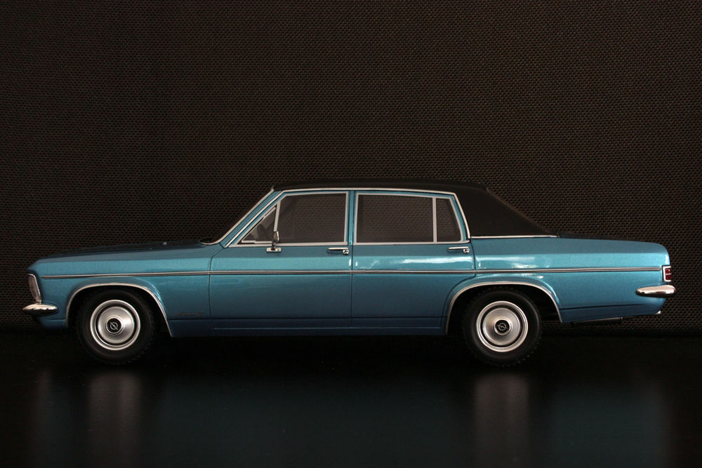 Der Opel Admiral B war ein Fahrzeug, das sowohl durch seine Leistung als auch durch sein Design beeindruckte. Er war mit verschiedenen Motorisierungen erhältlich, wobei die leistungsstärksten Varianten einen 5,4-Liter V8-Motor enthielten, der eine Leistung von 230 PS erbrachte. Dies ermöglichte dem Fahrzeug eine Höchstgeschwindigkeit von etwa 200 km/h, was es zu einem der leistungsstärksten Fahrzeuge seiner Klasse in den 1970er-Jahren machte. Zu den technischen Besonderheiten gehörten zudem eine moderne Radaufhängung und ein komfortables Fahrwerk, das speziell für lange Reisen ausgelegt war. Darüber hinaus verfügte der Admiral B über fortschrittliche Sicherheitsmerkmale, die zur damaligen Zeit innovativ waren. Das Modellauto spiegelt diese technischen Features mit hoher Präzision wider, bis hin zu den kleinen Details wie den Radkappen und der Haltung der Karosserie.