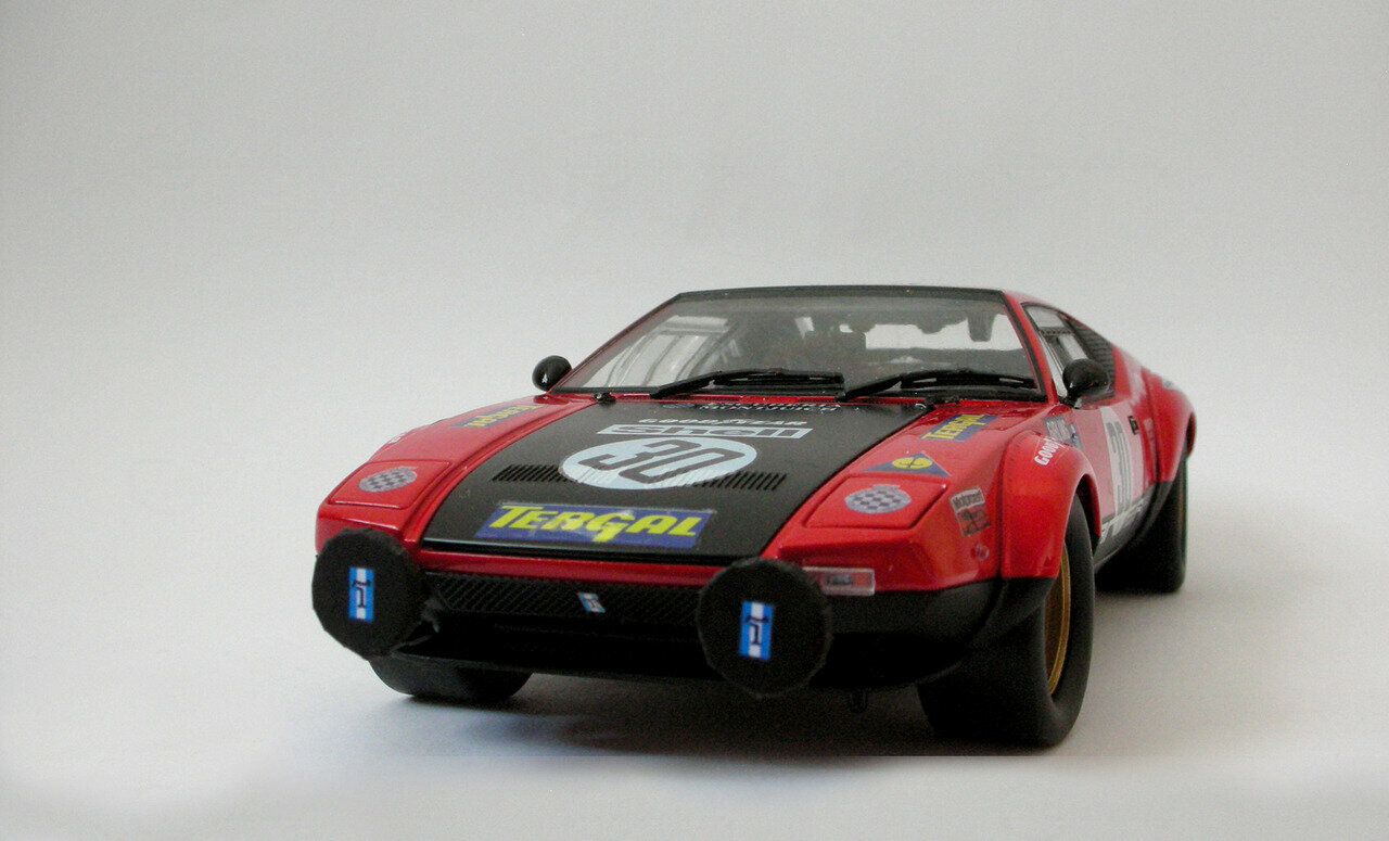 Das hier vorgestellte Modellauto im Maßstab 1:18 wurde von Kyosho hergestellt und basiert auf dem Material Diecast. Es handelt sich jedoch um ein modifiziertes Miniaturmodell und repräsentiert nicht das originale Produkt von Kyosho. Dieses detailgetreue Modell zeigt in beeindruckender Weise die charakteristischen Merkmale des Fahrzeugs, wie die markanten Kotflügelverbreiterungen, die aerodynamische Form und die spezielle Lackierung. Das Modellauto ist Teil der Sammlung von Modelly-Mitglied "TrolleyJack" und hebt sich durch die zahlreichen Sponsoren- und Herstelleraufkleber wie Girling, Goodyear und Shell hervor.