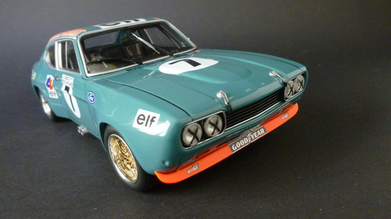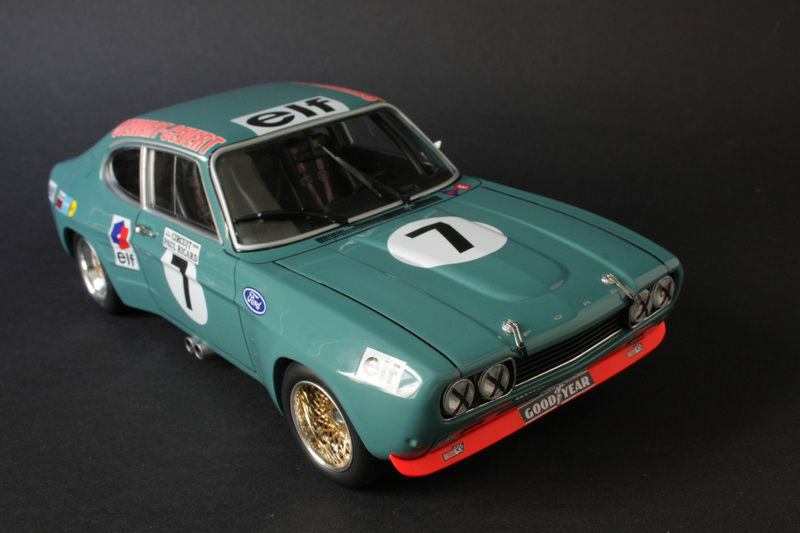 Das hier gezeigte 1:18-Modell ist eine detaillierte Nachbildung des legendären Ford Capri RS 2600 Gr.2, hergestellt von Minichamps. Es handelt sich dabei um ein maßstabsgetreues Modell aus Diecast-Material, das zahlreiche Details des Originals enthält. Beachten Sie jedoch, dass diese Miniaturmodifikation Änderungen enthält und nicht das ursprüngliche Modell darstellt, das von Minichamps hergestellt wurde. Das Modell aus der Sammlung von "TrolleyJack" zeigt präzise die Formen und Farben des Rennwagens, inklusive der goldfarbenen Felgen und der akkuraten Nachbildung der Sponsorenlogos. Solche Details machen dieses Sammlerstück besonders wertvoll – auch wenn es nicht der unveränderten Serienversion von Minichamps entspricht.