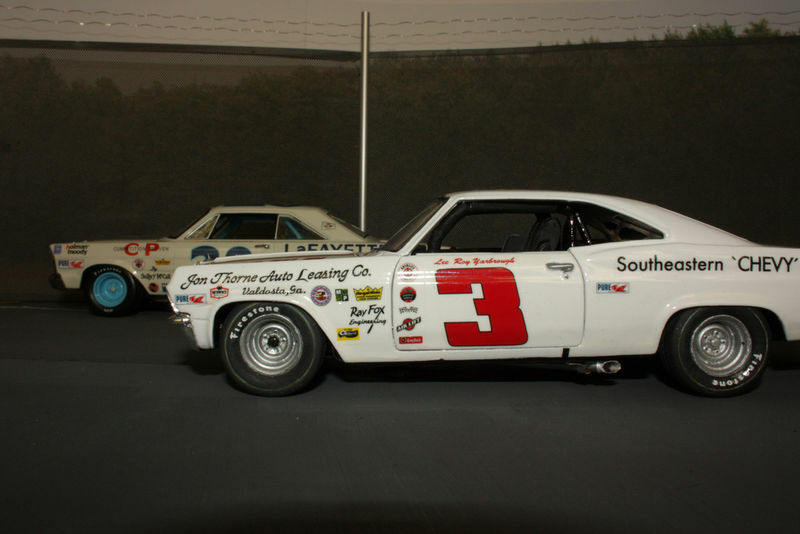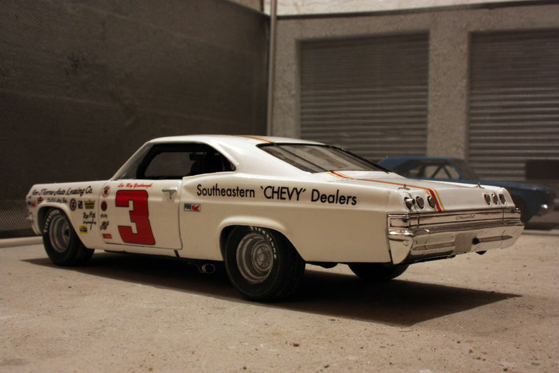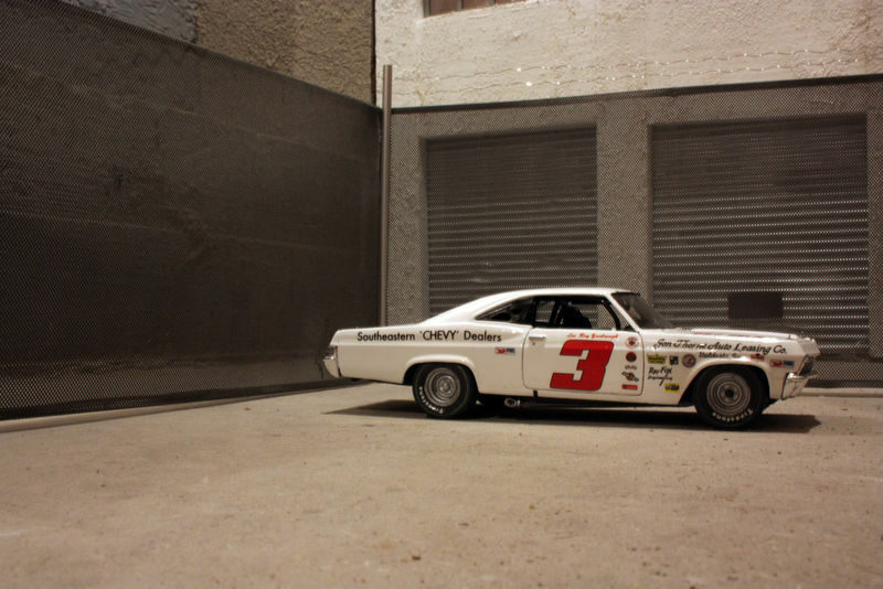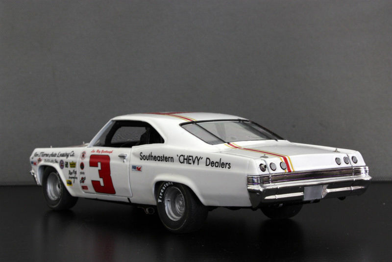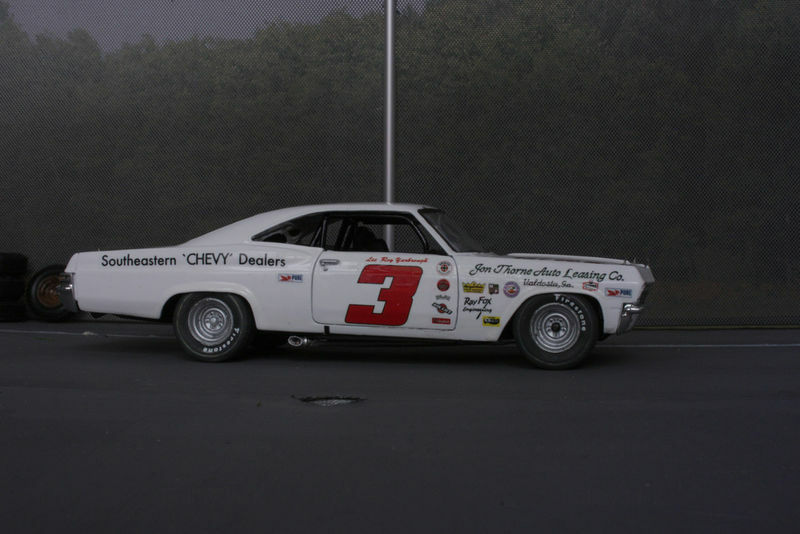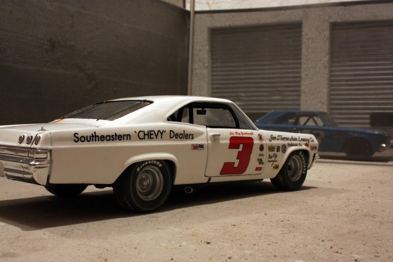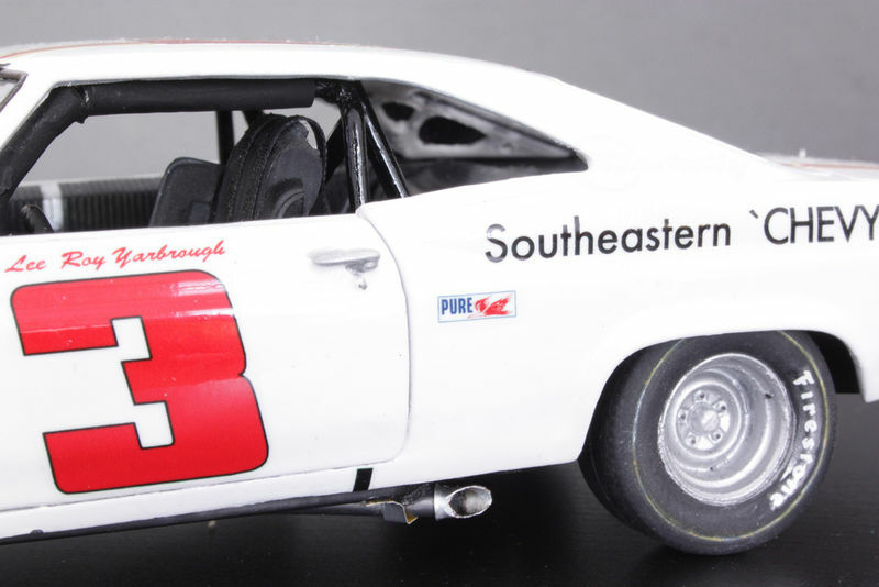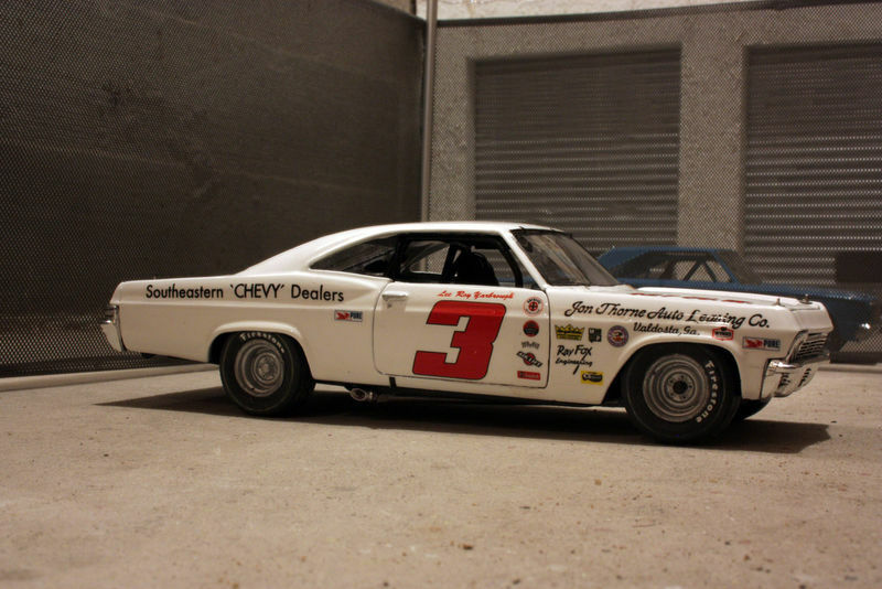 Dieses Modell im 1:24 Maßstab von Welly zeigt eine detaillierte Nachbildung mit akkuraten Sponsoren-Logos wie Jim Thorne Auto Leasing Co. und Southeastern "CHEVY" Dealers. Auch sind die Namen Roy Fox und PUROLATOR zu erkennen. Die Farbgebung ist überwiegend weiß mit einem großen roten Nummer 3 auf den Türen, was dem Auto eine authentische Nascar-Aussehen verleiht. Die Anpassungen an diesem Modell unterstreichen die Hingabe und das Detailbewusstsein, das in seine Erschaffung eingeflossen ist.