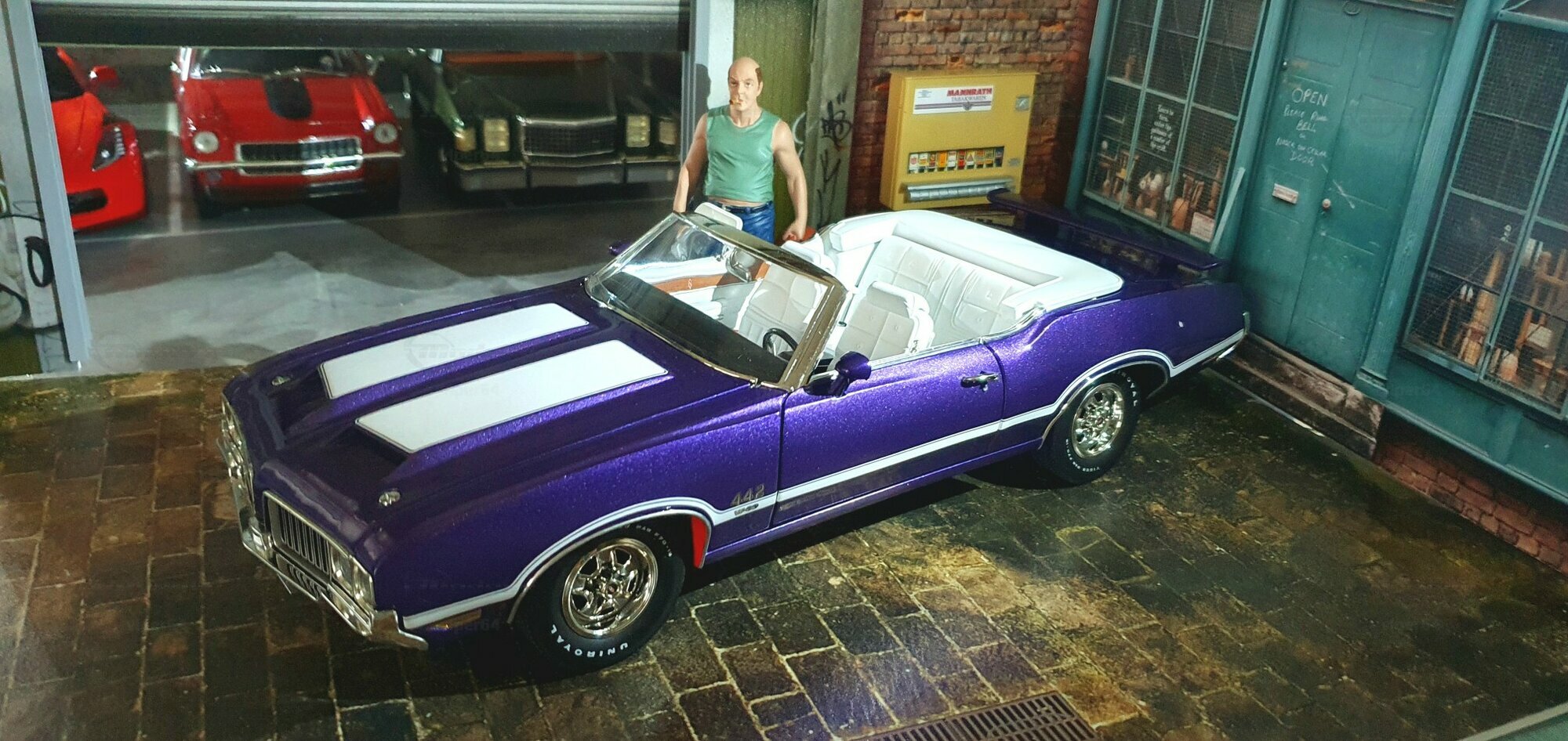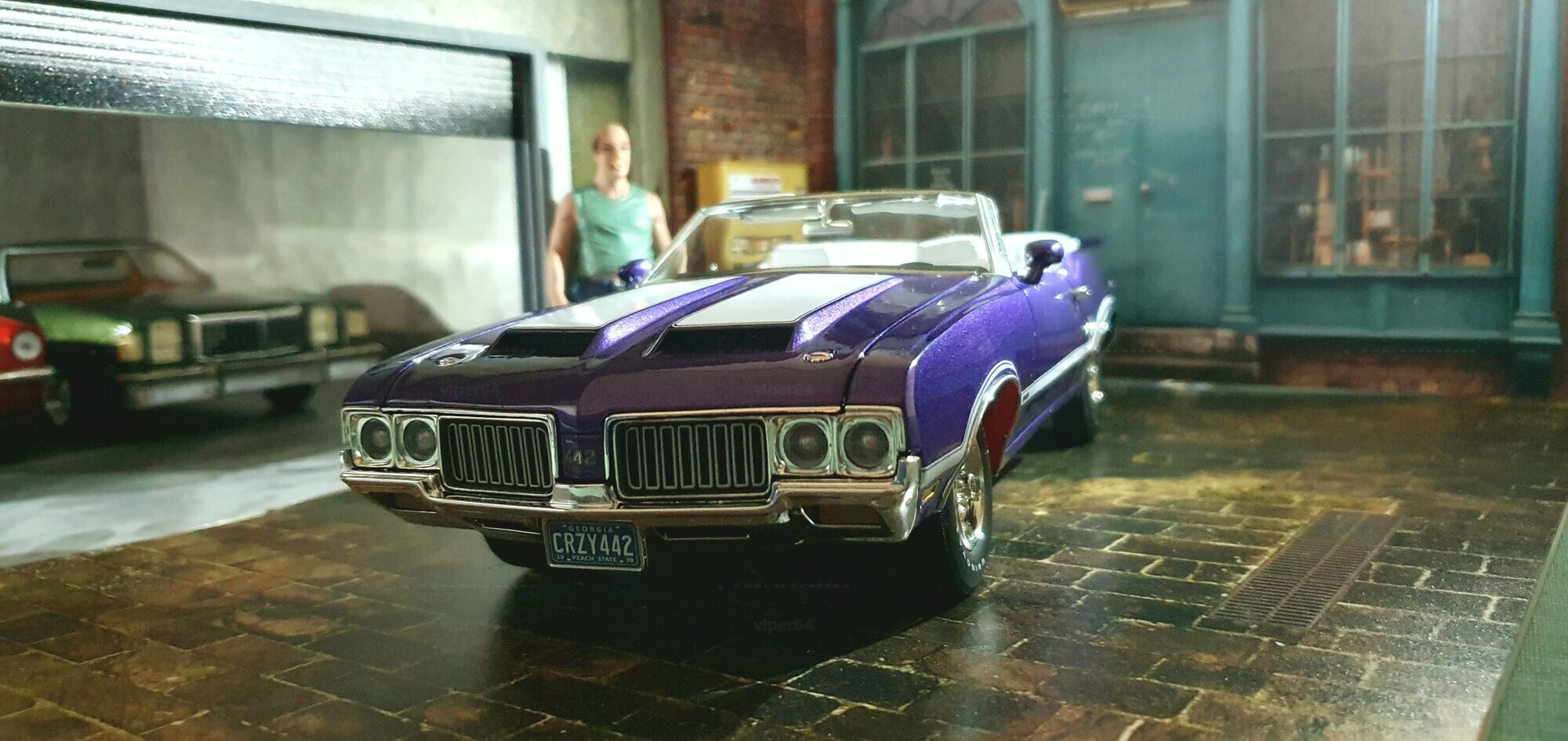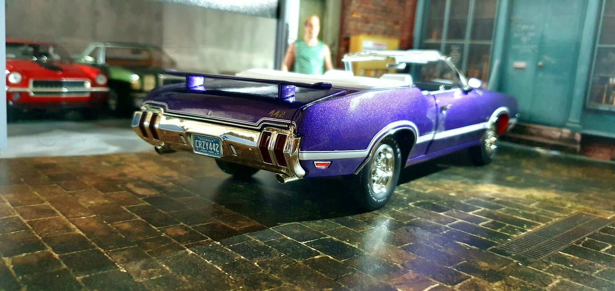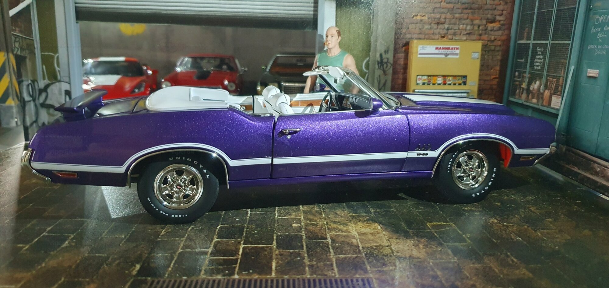 Das hier gezeigte Modell gehört zur Sammlung des Modelly-Mitglieds „viper64“ und bildet den Oldsmobile 442 W-30 Convertible der späten Muscle-Car-Ära ab. Das Originalfahrzeug war die besonders leistungsorientierte Ausführung der Cutlass-Reihe und erschien in der zweite Generation des 442, gebaut von 1968–1972. Der Oldsmobile 442 entstand als sportliches Paket über dem Cutlass und löste damit den Vorgänger der ersten Generation (1964–1967) ab. Die abgebildete Miniatur ist ein Modellauto im Maßstab 1:18 von ACME. Es handelt sich um eine Ausführung in Diecast-Bauweise (Druckguss), wodurch Türen, Haube und Kofferraum bei diesem Hersteller üblicherweise beweglich und die Spaltmaße robust ausgeführt sind. Die Edition ist als limitierte Auflage deklariert, was sie für Sammler planbarer macht. Um die zeitliche Einordnung des Vorbilds zu erleichtern: Im Jahr 1968, als die zweite 442-Generation startete, wurde Martin Luther King Jr. ermordet, die NASA schickte Apollo 8 in die Mondumlaufbahn, und die Beatles veröffentlichten „Hey Jude“. Diese Beispiele dienen lediglich dazu, Alter und Umfeld des Fahrzeugs historisch einzuordnen.