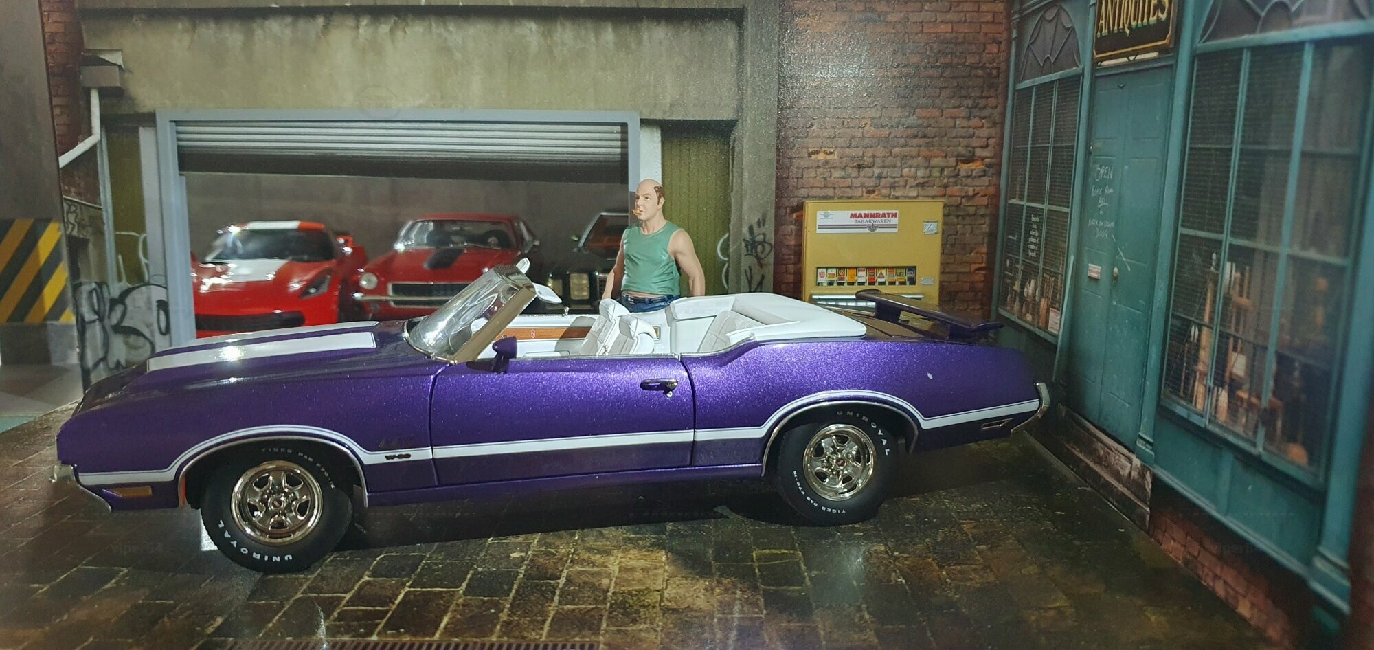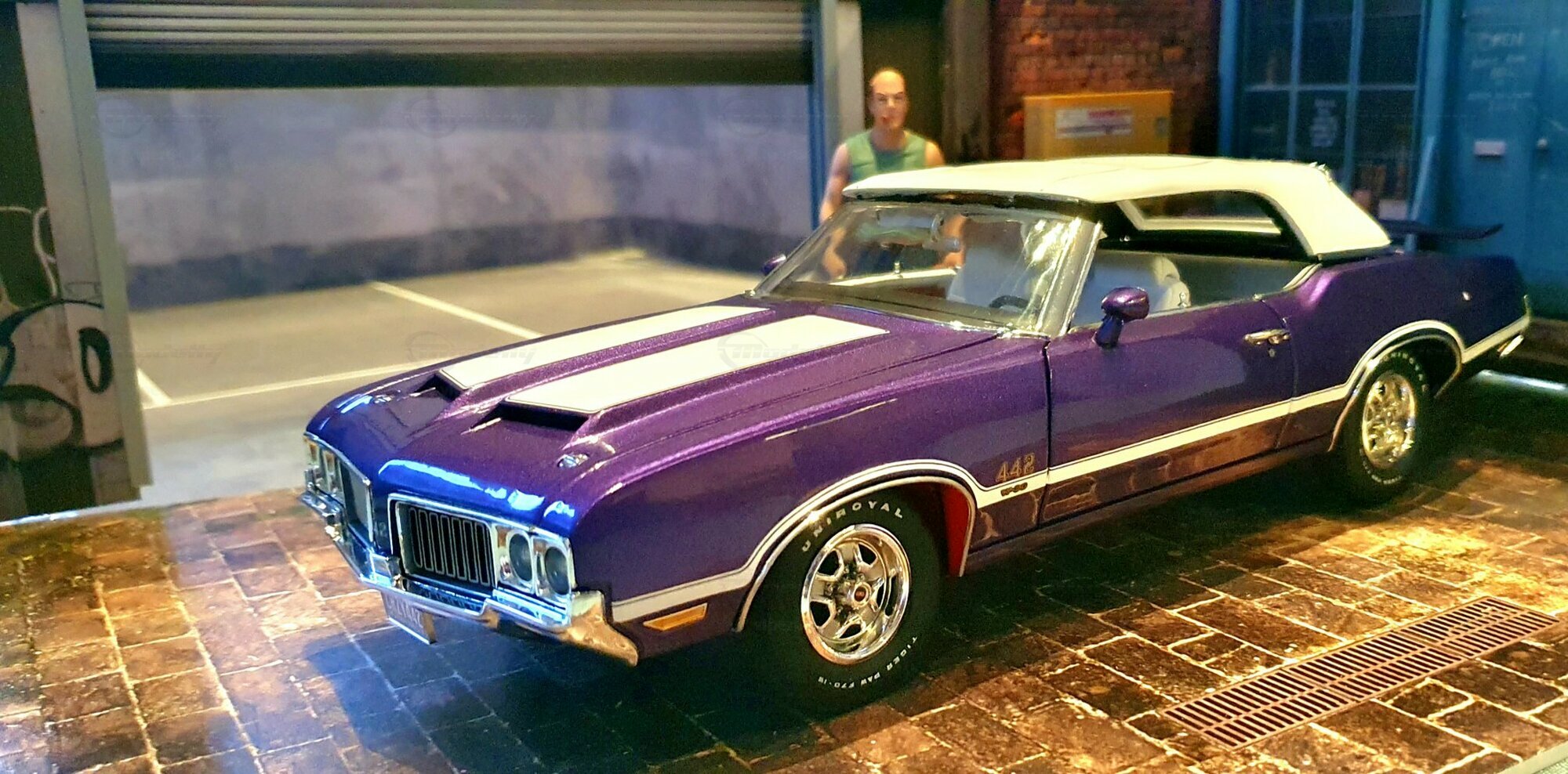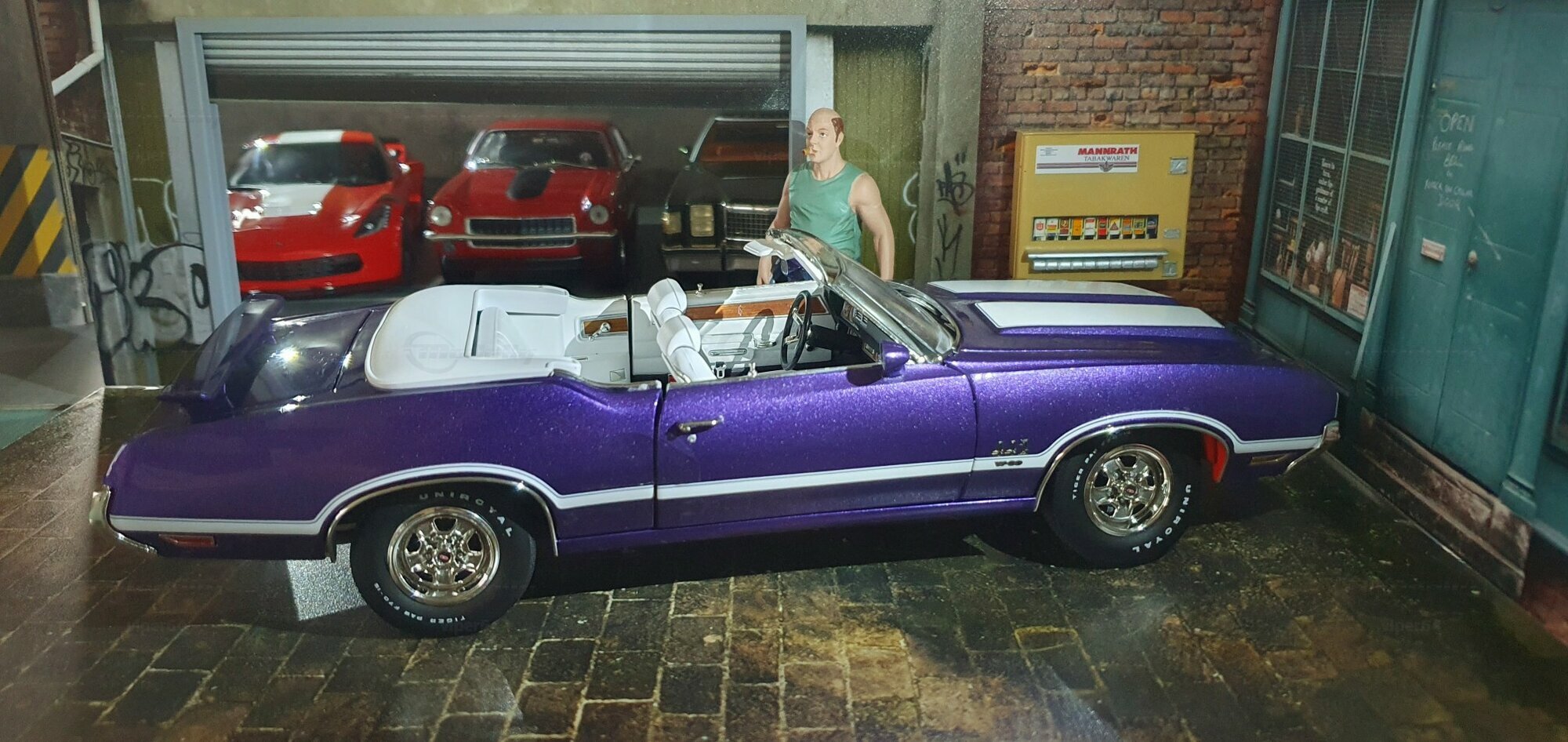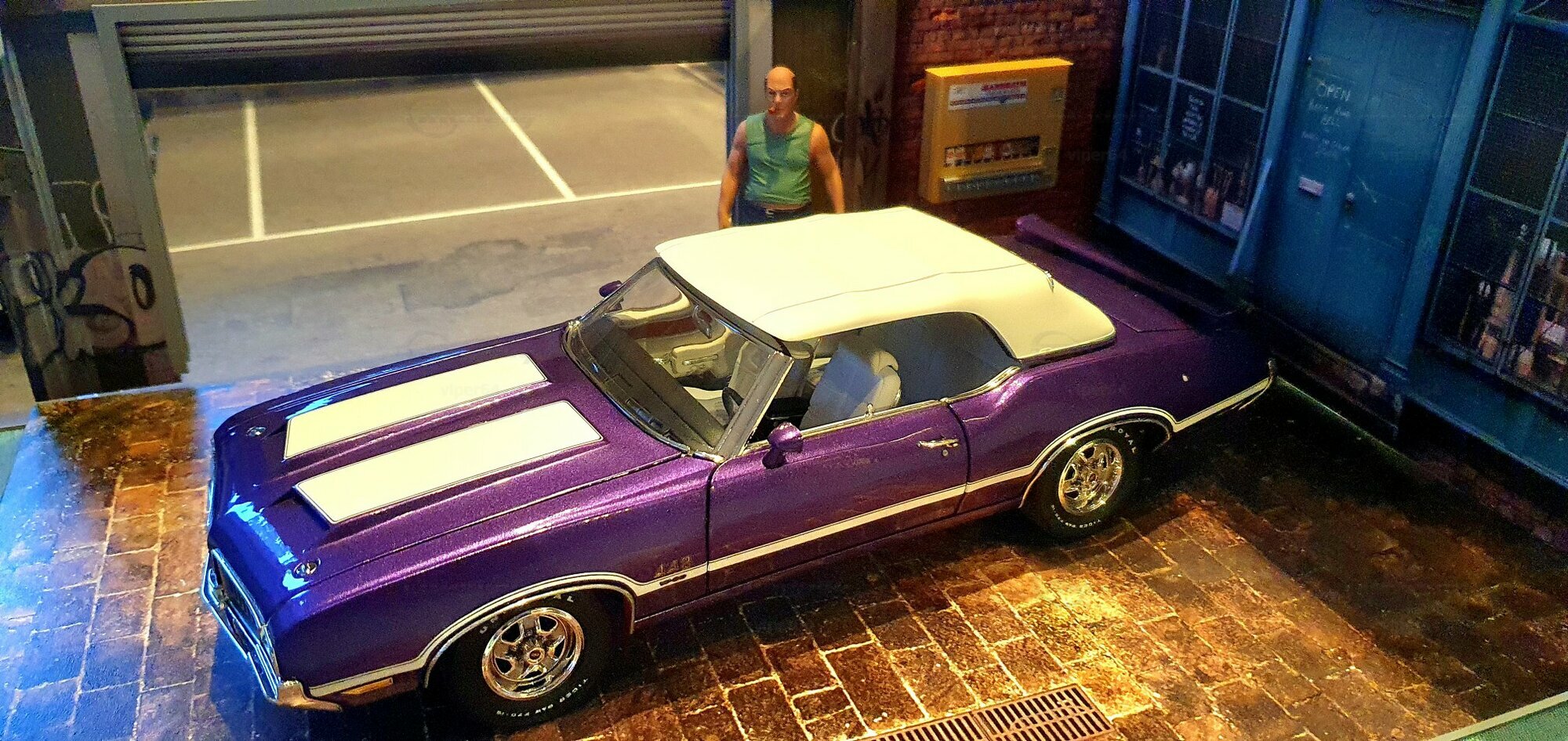 Das hier gezeigte Modell gehört zur Sammlung des Modelly-Mitglieds „viper64“ und bildet den Oldsmobile 442 W-30 Convertible der späten Muscle-Car-Ära ab. Das Originalfahrzeug war die besonders leistungsorientierte Ausführung der Cutlass-Reihe und erschien in der zweite Generation des 442, gebaut von 1968–1972. Der Oldsmobile 442 entstand als sportliches Paket über dem Cutlass und löste damit den Vorgänger der ersten Generation (1964–1967) ab. Die abgebildete Miniatur ist ein Modellauto im Maßstab 1:18 von ACME. Es handelt sich um eine Ausführung in Diecast-Bauweise (Druckguss), wodurch Türen, Haube und Kofferraum bei diesem Hersteller üblicherweise beweglich und die Spaltmaße robust ausgeführt sind. Die Edition ist als limitierte Auflage deklariert, was sie für Sammler planbarer macht. Um die zeitliche Einordnung des Vorbilds zu erleichtern: Im Jahr 1968, als die zweite 442-Generation startete, wurde Martin Luther King Jr. ermordet, die NASA schickte Apollo 8 in die Mondumlaufbahn, und die Beatles veröffentlichten „Hey Jude“. Diese Beispiele dienen lediglich dazu, Alter und Umfeld des Fahrzeugs historisch einzuordnen.