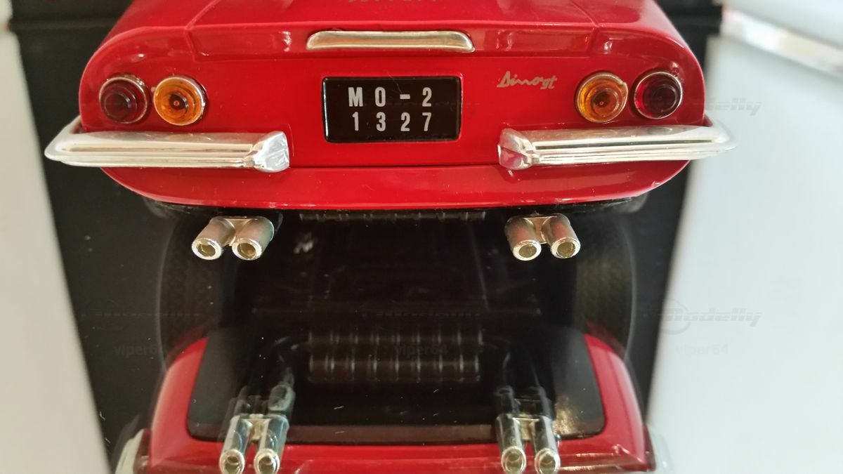 Der Name Dino wurde im Hause Ferrari zum ersten Mal Ende der 50er Jahre für Wagen in der Formel 1 und Rennsportwagen mit V-Motoren genutzt. Dabei handelte es sich um den Namen des Sohnes von Enzo Ferrari, der im Jahr 1956 verstorben war. Kurz vor seinem Tod hatte Dino an einem V-Motor gearbeitet, weshalb man die V-Motoren des Hauses in den 60er Jahren Dino nannte und 1965 den 166P Mittelmotor Rennsportwagen, der zum 206 SP und zum 206 S wurde. Es war aber dieser Wagen hier, der zum ersten Mal einen Dino-Schriftzug auf der Nase trug und keinen von Ferrari. Das Zeichen war ein horizontales Rechteck mit blauer Schrift auf gelbem Grund.