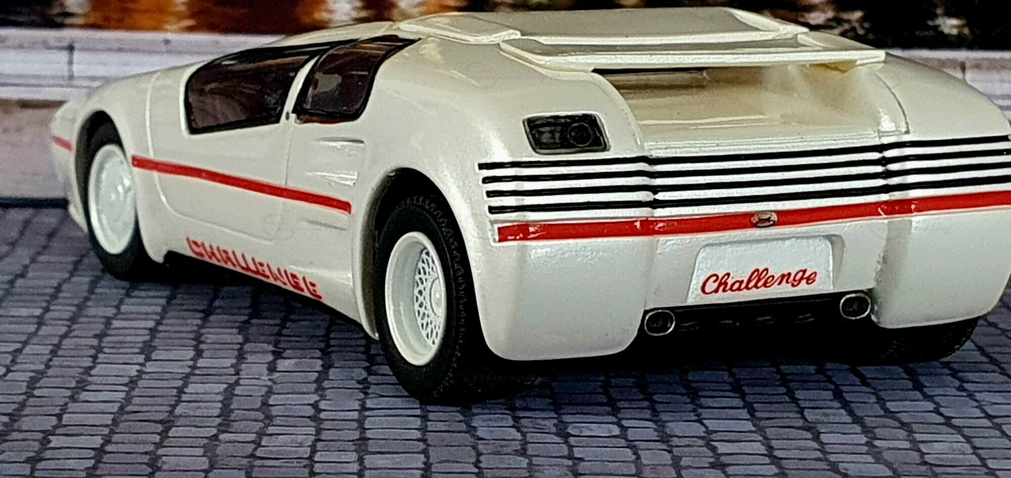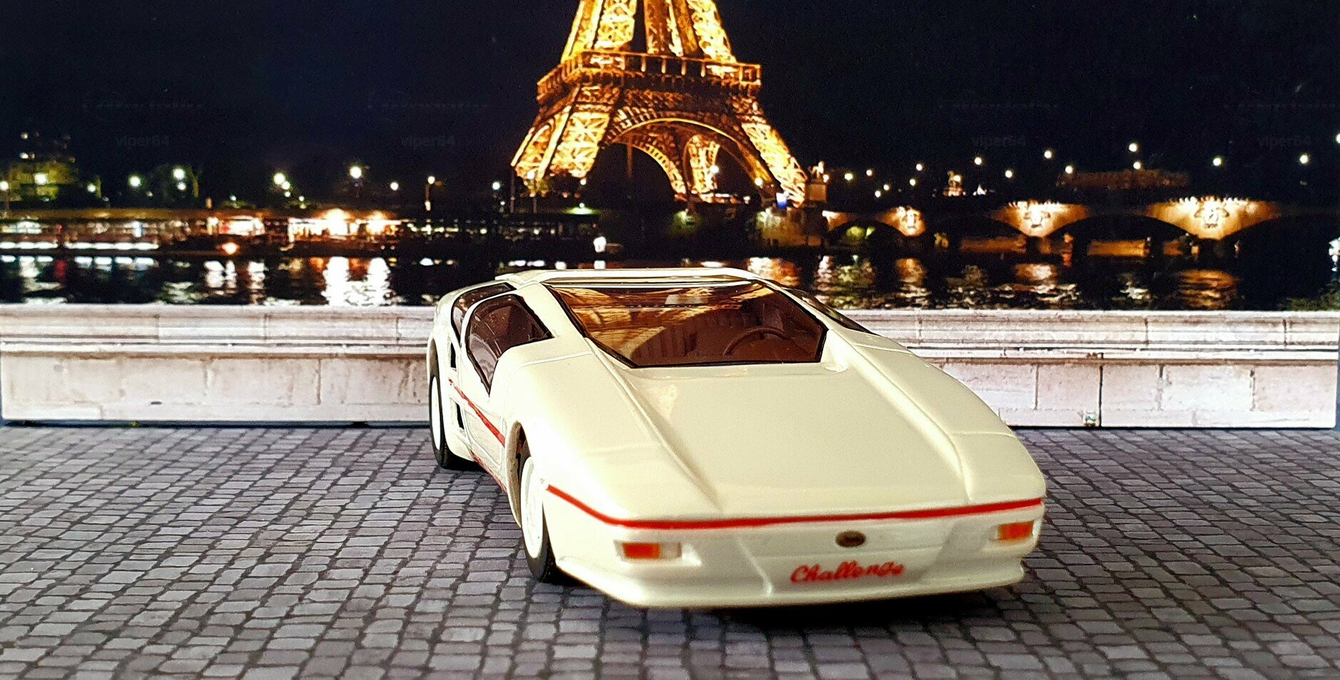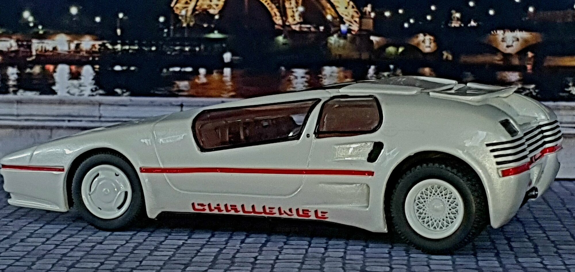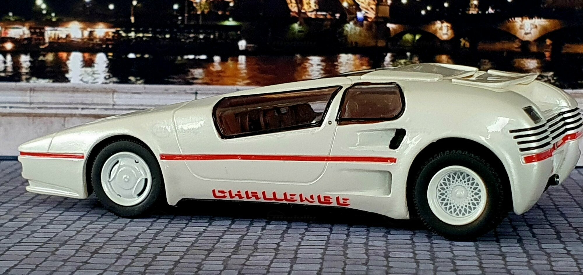 Sbarro sorgte schon in jungen Jahren mit atemberaubenden Studien für Aufsehen. So auch 1985 am Genfer Autosalon, als er «den uninspirierten Volumenherstellern» (Zitat Sbarro) mit dem extrem aerodynamischen Conceptcar Challenge seine Idee eines modernen Sportwagens vor die Nase stellte. Blickfang des keilförmigen Einzelstücks mit dem rekordverdächtig tiefen Luftwiderstandswert von 0,23 sind der Übergang der flachen Haube in die fürs Frischluftvergnügen gar absenkbare Windschutzscheibe und die beiden Heckflügel am höchsten Punkt der Karosserie. Diese stellen sich beim Bremsen auf und verstärken so den Verzögerungseffekt. Das ist auch nötig. Denn der 310 km/h schnelle Keil – für die Verhältnisse vor vier Jahrzehnten ein unvorstellbares Tempo – wird von einem von Sbarro überarbeiteten Mercedes-Fünfliter-V8-Motor mit zwei Turboladern und 380 PS Leistung angetrieben.