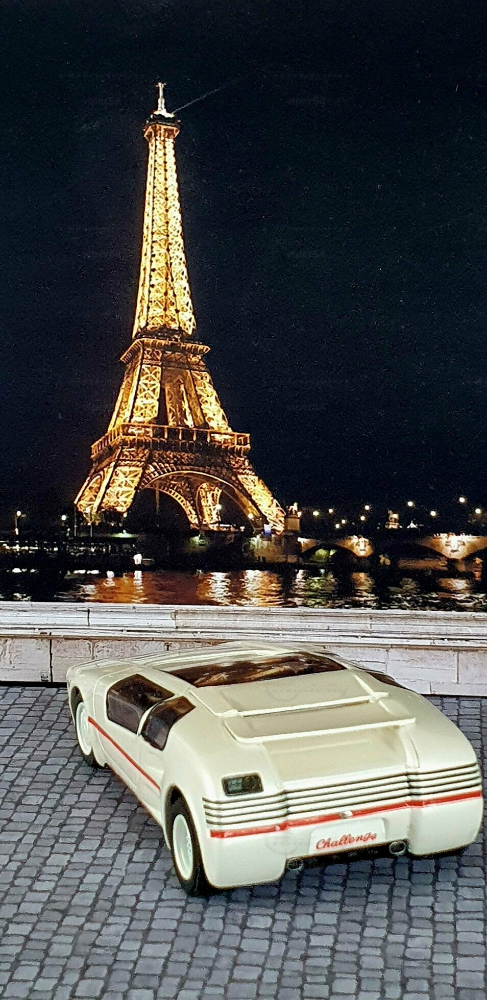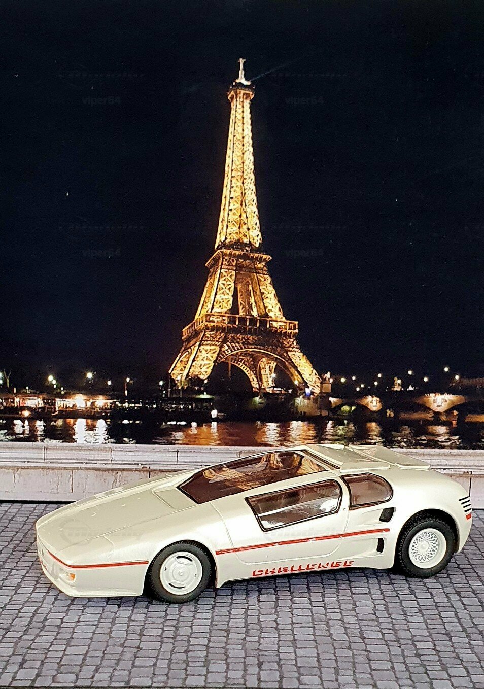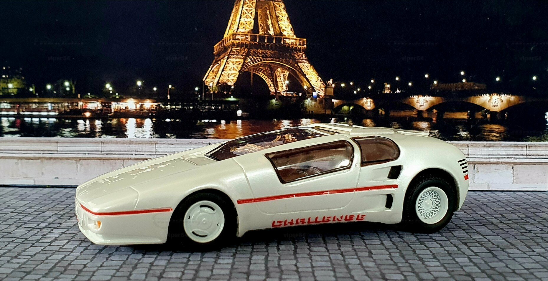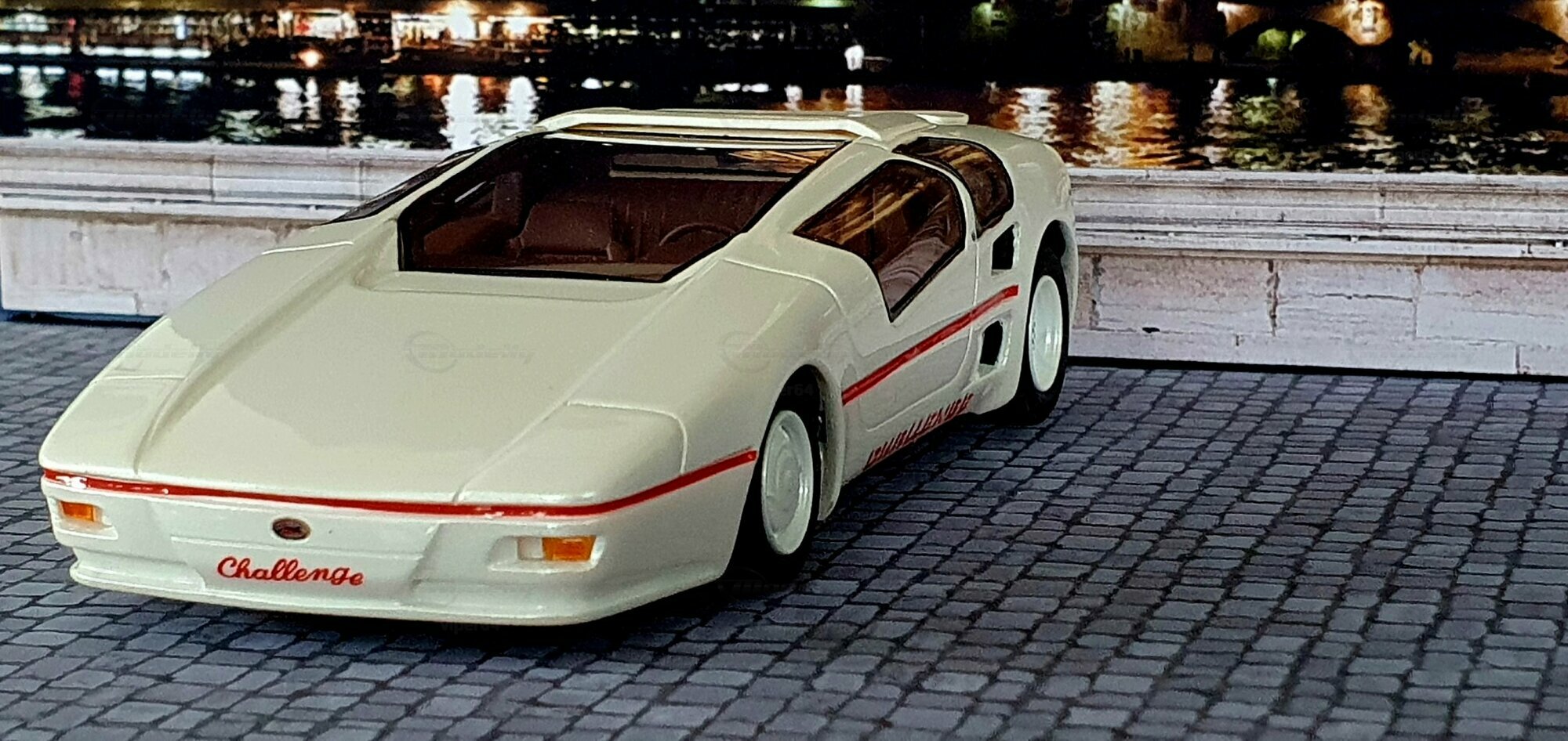 Sbarro sorgte schon in jungen Jahren mit atemberaubenden Studien für Aufsehen. So auch 1985 am Genfer Autosalon, als er «den uninspirierten Volumenherstellern» (Zitat Sbarro) mit dem extrem aerodynamischen Conceptcar Challenge seine Idee eines modernen Sportwagens vor die Nase stellte. Blickfang des keilförmigen Einzelstücks mit dem rekordverdächtig tiefen Luftwiderstandswert von 0,23 sind der Übergang der flachen Haube in die fürs Frischluftvergnügen gar absenkbare Windschutzscheibe und die beiden Heckflügel am höchsten Punkt der Karosserie. Diese stellen sich beim Bremsen auf und verstärken so den Verzögerungseffekt. Das ist auch nötig. Denn der 310 km/h schnelle Keil – für die Verhältnisse vor vier Jahrzehnten ein unvorstellbares Tempo – wird von einem von Sbarro überarbeiteten Mercedes-Fünfliter-V8-Motor mit zwei Turboladern und 380 PS Leistung angetrieben.