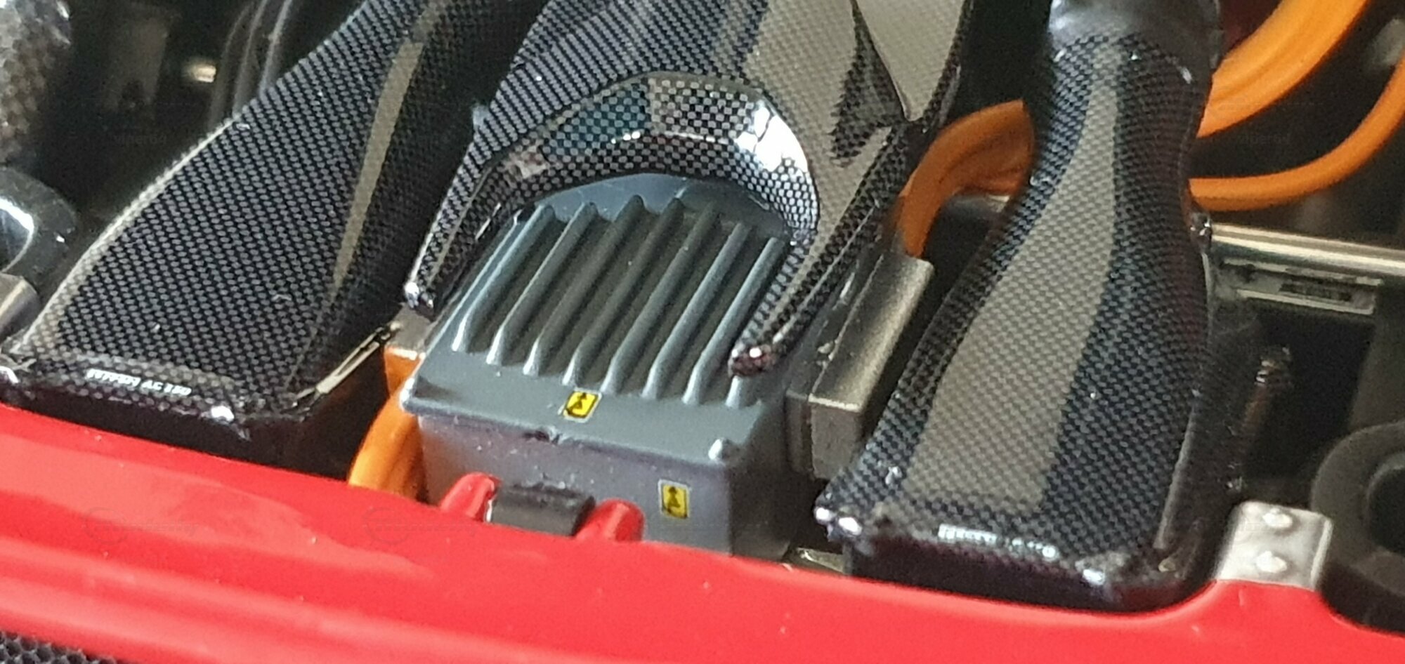Beim an das F1-Doppelkupplungsgetriebe gekoppelten elektrischen Motor war es den Ingenieuren durch Verwendung neuester Technologien möglich, dessen Verhältnis zwischen Gewicht, Volumen und verfügbares Drehmoment drastisch zu verbessern. Das Ergebnis sind Leistungszahlen, die sich mit jenen des F1-Wagens vergleichen lassen. Beide haben die gleiche Drehmomentwerte und die gleiche Effizienz (94 %) – oder anders gesagt, eine geringe Verlustleistung.