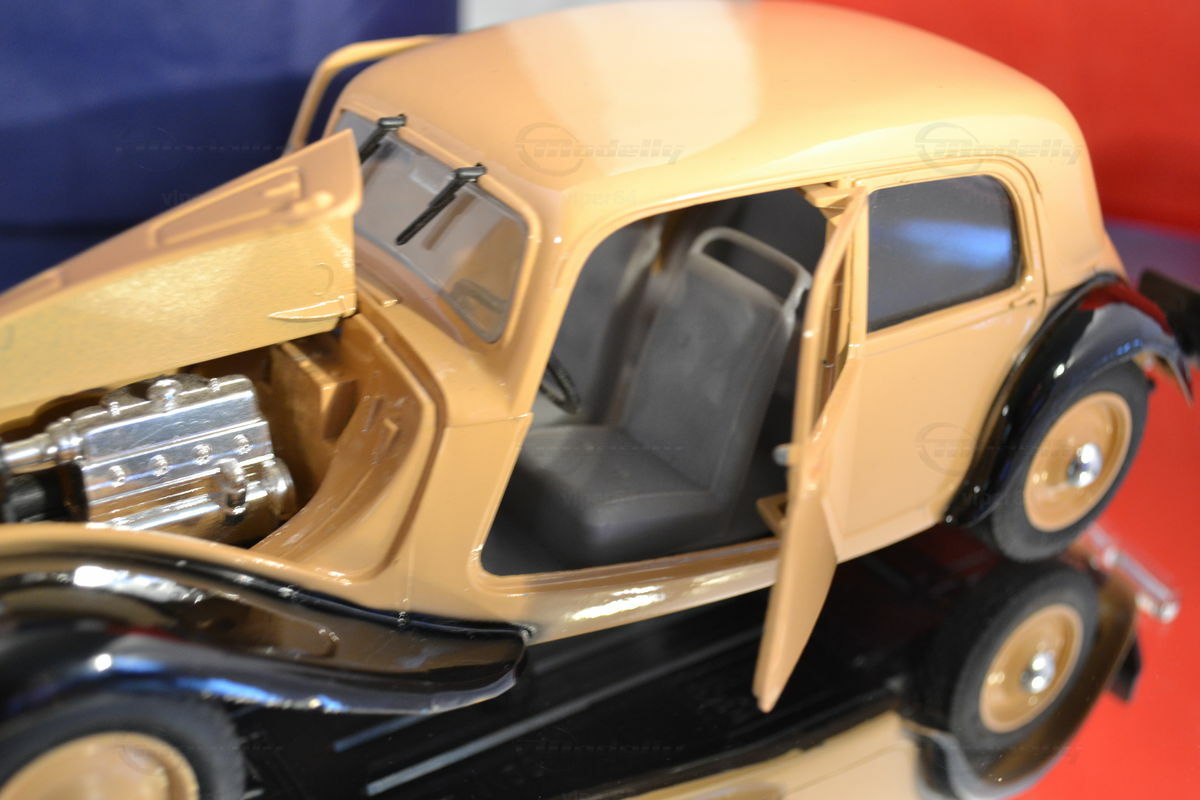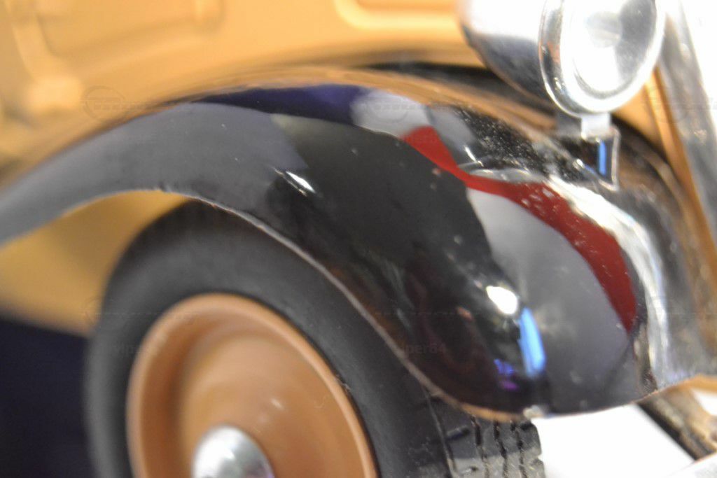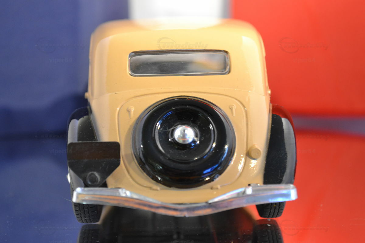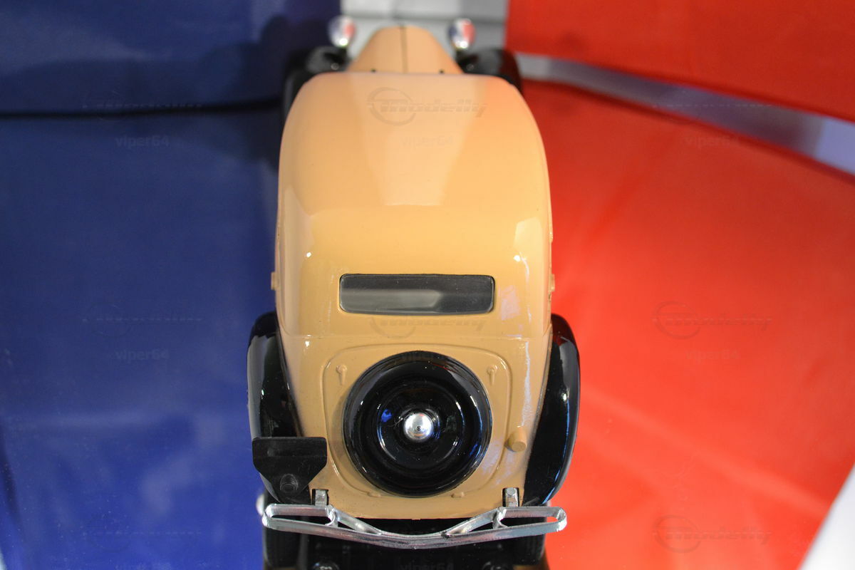Das Modell hat nicht nur einen ungewöhnlichen Maßstab ( 1:20 ), sondern auch eine ungewöhnliche Farbe. Beim material bin ich mir echt nicht sicher ob es nun Druckguss oder Blech ist! Ich denke eine Mischung von Beidem. Denn der "Klopftest" sagt Blech, z.B. die Motorhauben und der "Fühltest" sagt Druckguss, z.B. die Kotflügel. Also ehrlich.....Ich kann es nicht einstufen.