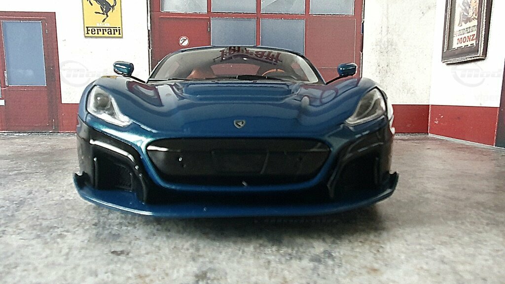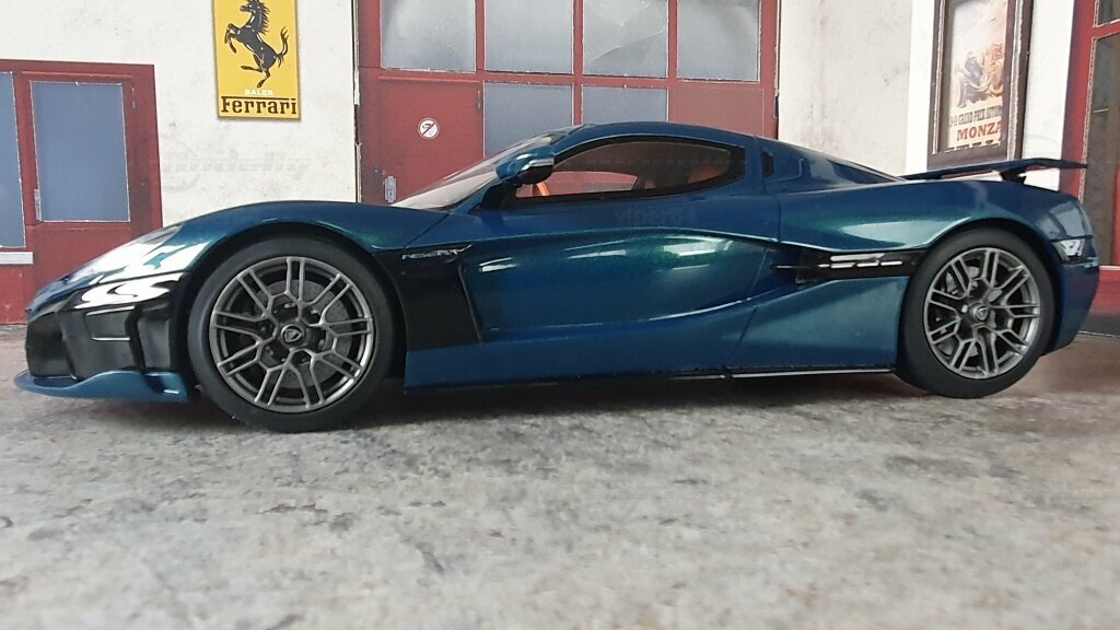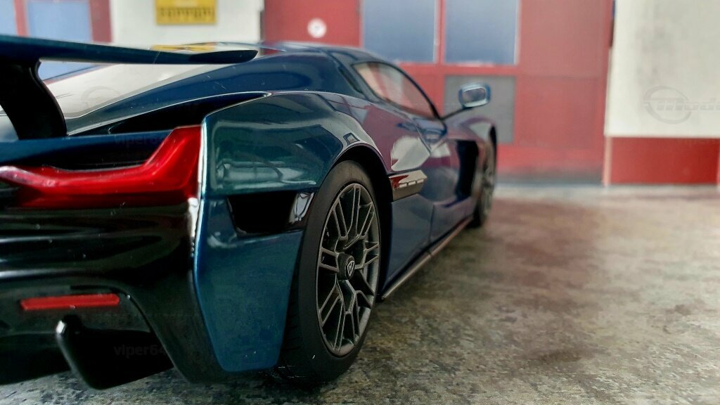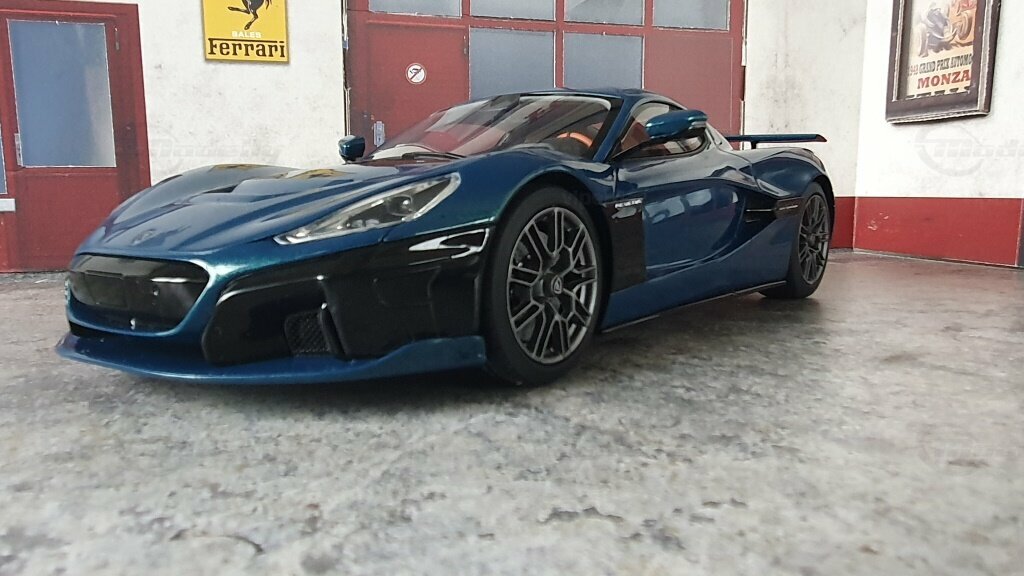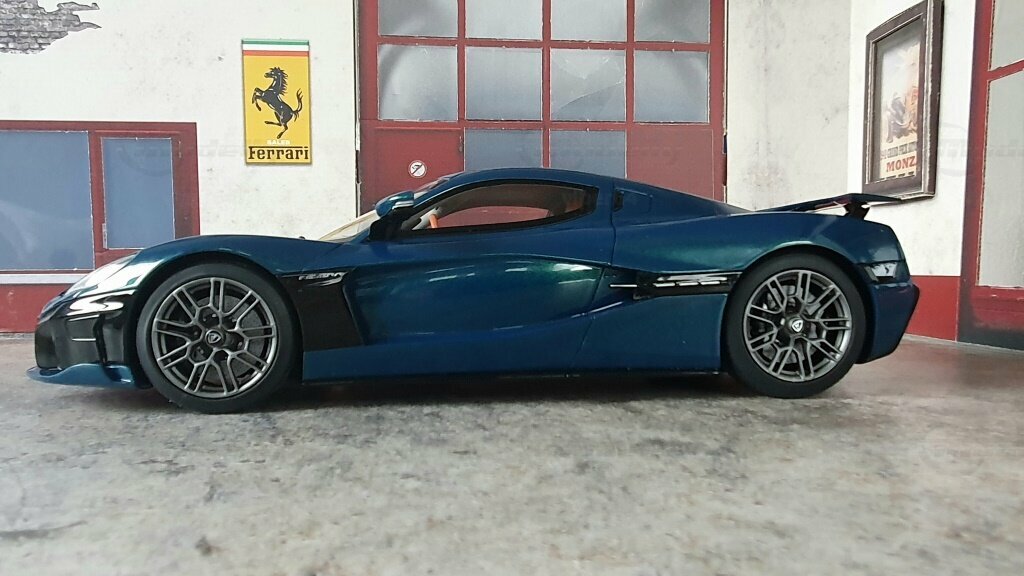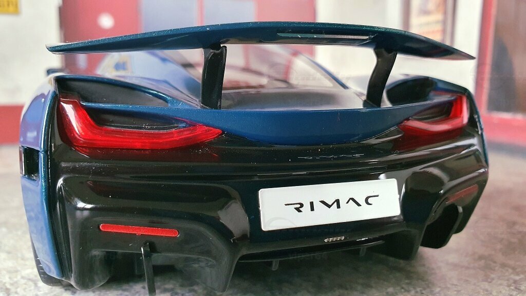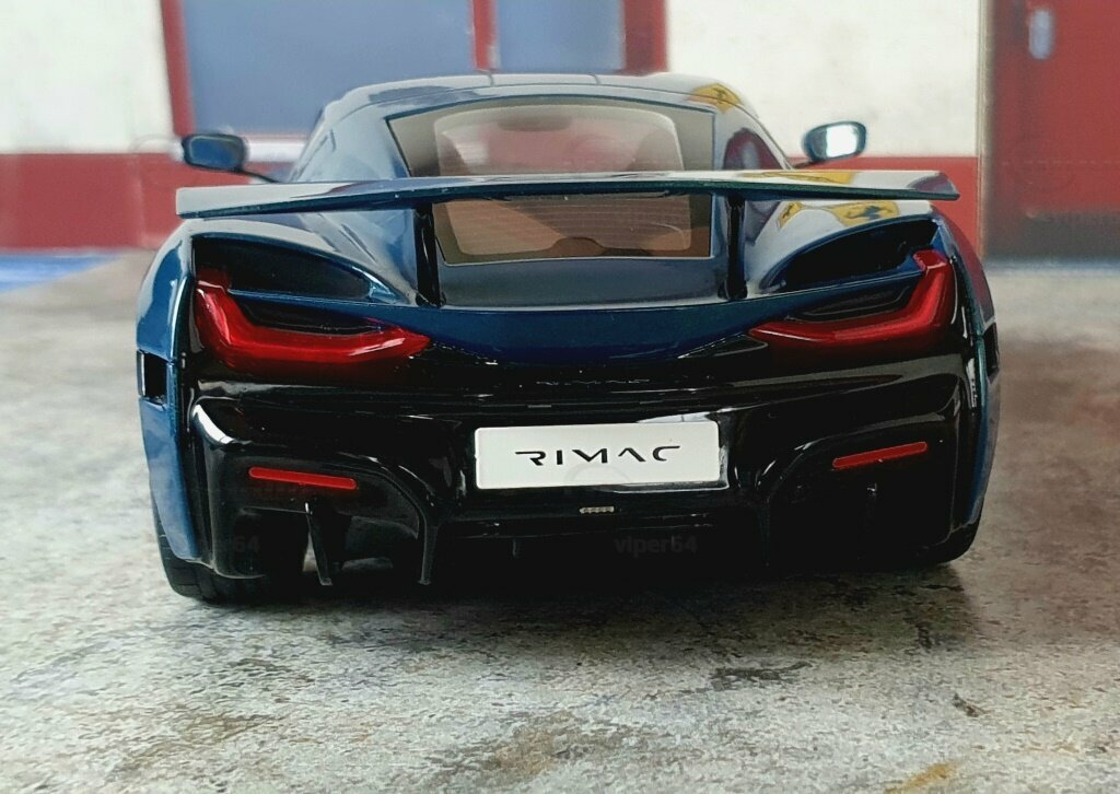 Das Design des Rimac zeichnet sich durch die klassischen Supersportwagen-Charakteristika aus: flach, breit, mit aggressiver Front und riesigen Lufteinlässen hinter den Türen. Dazu gibt es die obligatorischen Scherentüren und einen Heckflügel in Größe XXL. Einzig der geschlossene Kühlerschlund und die fehlenden Endrohre lassen darauf schließen, dass man es hier mit einem etwas anderen Hypercar zu tun hat.