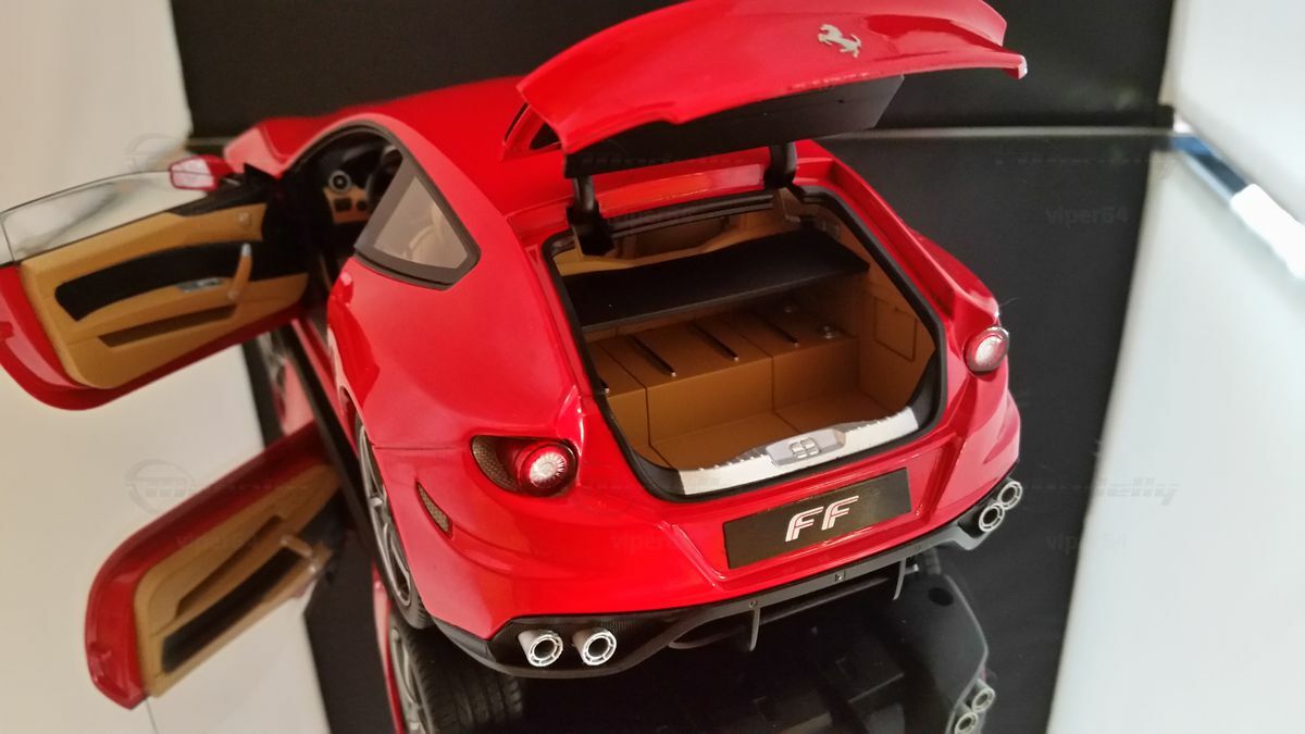 Das Kofferraumfassungsvermögen des FF ist in dieser Fahrzeugkategorie ebenfalls unerreicht: 450 Liter. Der Kofferraum ist jedoch extrem vielseitig, da beide Rücksitze separat umgeklappt werden können, womit das Fassungsvermögen bis auf über 800 Liter erweitert werden kann. Dies bedeutet zum Beispiel, dass vier Fahrzeuginsassen vier Trolleys in Standardgröße, zwei Golftaschen oder zwei Kindersportwagen in den Kofferraum einladen können.