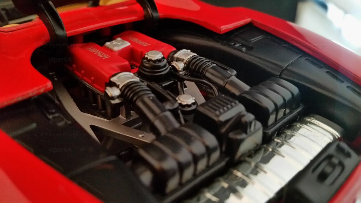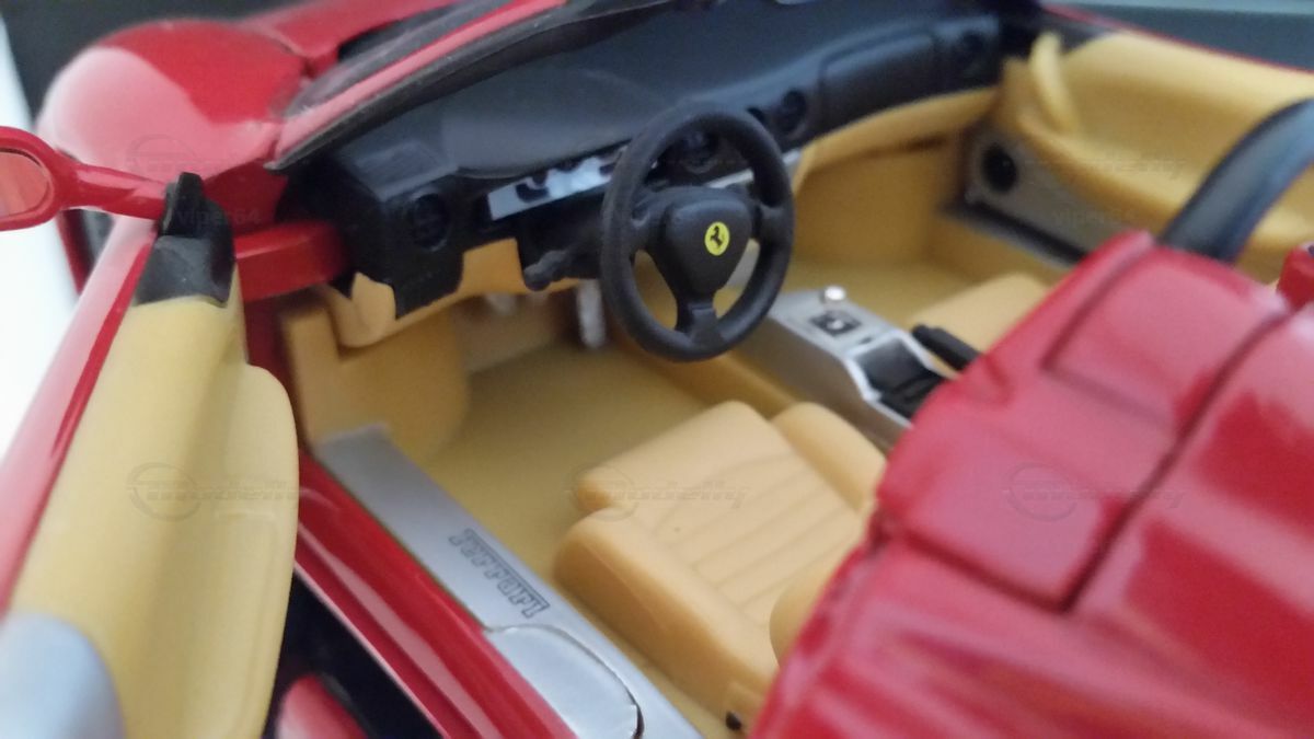 Trotz des V8-Mittelmotors ist es den Ferrari-Ingenieuren gelungen ein faltbares Dach zu schaffen, das automatisch im Motorraum verstaut werden kann, womit die klaren Formen des Wagens beibehalten werden können. Das außergewöhnliche Design des Wagens wird durch zwei in die Karosserie hinter den Sitzen integrierten Verkleidungen unterstrichen, welche die klassische Sportwagenform hervorheben. Diese beiden Verkleidungen werden von den beiden Überrollbügeln ergänzt, die dem Wagen den letzten Schliff verleihen und zudem für absolute Sicherheit der beiden Fahrzeuginsassen sorgen.