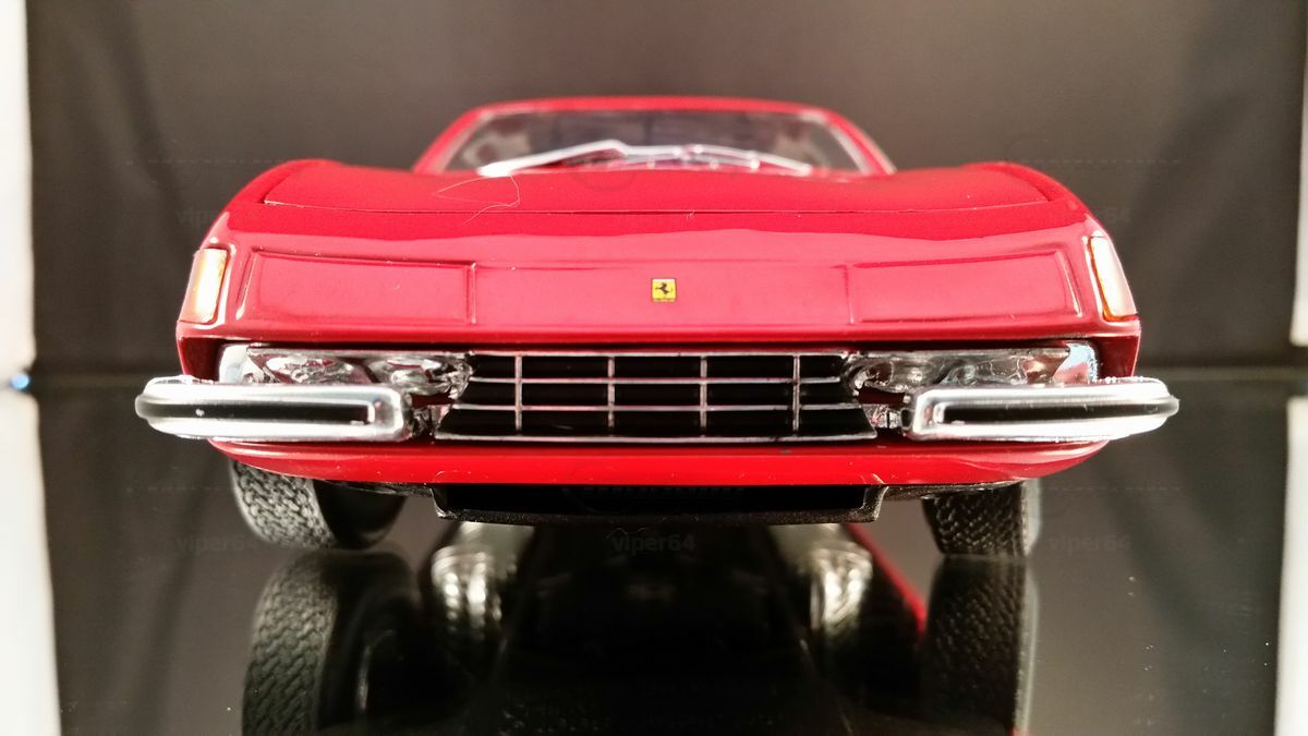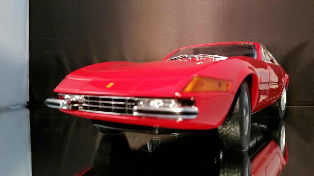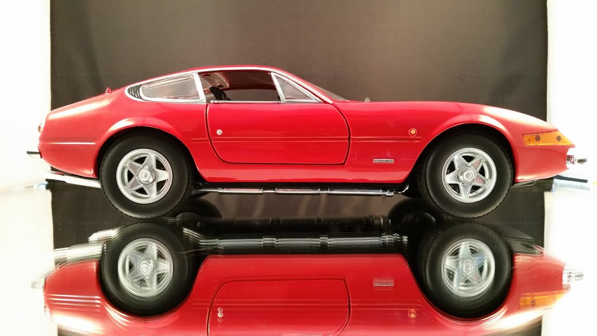 Die Weiterentwicklung des 275 GTB4 war ein Meilenstein in der Geschichte der Hochleistungssportwagen mit Frontmotor. Geschmeidig und modern hatte Pininfarina die Karosserie gestaltet, welche die 4,4 Liter des V12-Triebwerks komplementierten. Der Motor wurde von sechs Weber Doppelvergasern mit 40 mm versorgt. Die hervorragende Gewichtsverteilung und das daraus folgende einzigartige Fahrerlebnis war dem Transaxle-Aufbau zu verdanken. Viele Fans kennen diesen Wagen vornehmlich unter seinem inoffiziellen Namen: “Daytona”.