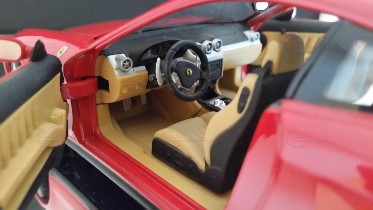 Die Details im 612 Scaglietti sind sowohl funktionell als auch dekorativ. So wurde etwa Aluminium auf dem Armaturenbrett, der Entlüftungsgruppe, der Klimazonen-Kontrolle, dem Dachregler, den F1-Schaltwippen, dem Fußblech für den Beifahrer sowie der Pedalerie verwendet. Sogar die kleinen Türknöpfe können personalisiert werden, um mit dem polierten Aluminium, dem Leichtaluminium oder dem Leder auf dem Armaturenbrett zu harmonieren.