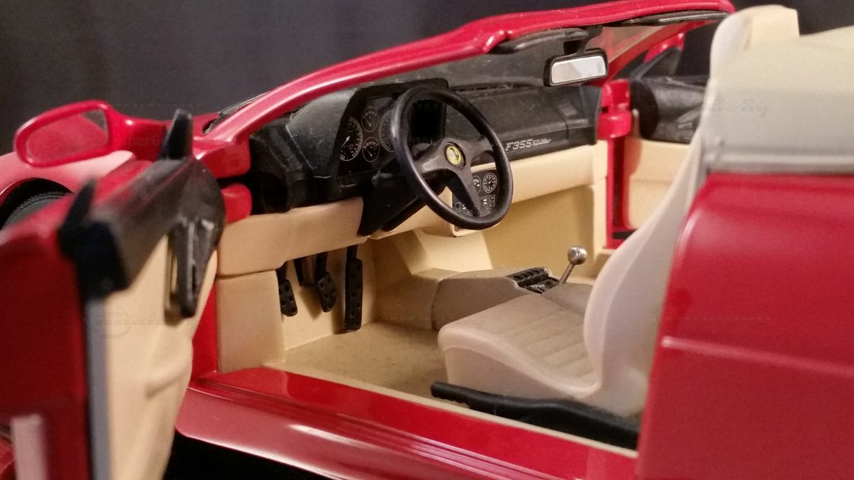 Der F355 Spider Zweisitzer hatte eine Aluminium-Stahl-Karosserie. Zum Ausgleichen des Abtriebs (Cl) zwischen den beiden Achsen wurde ein geschlossener Unterboden entwickelt.