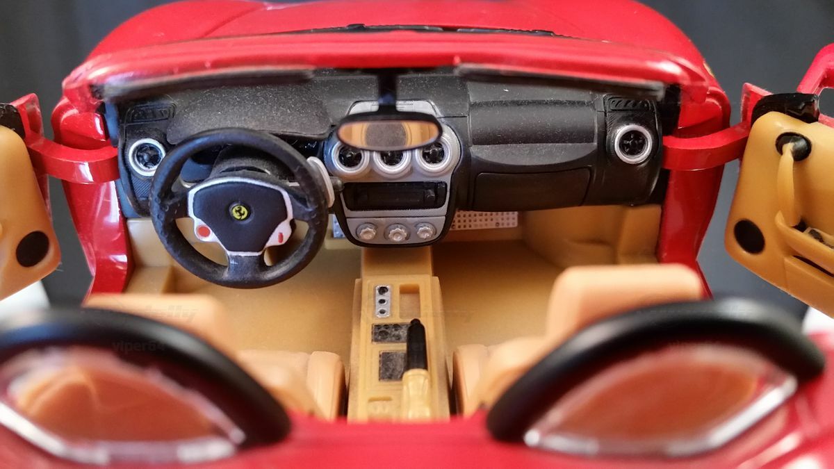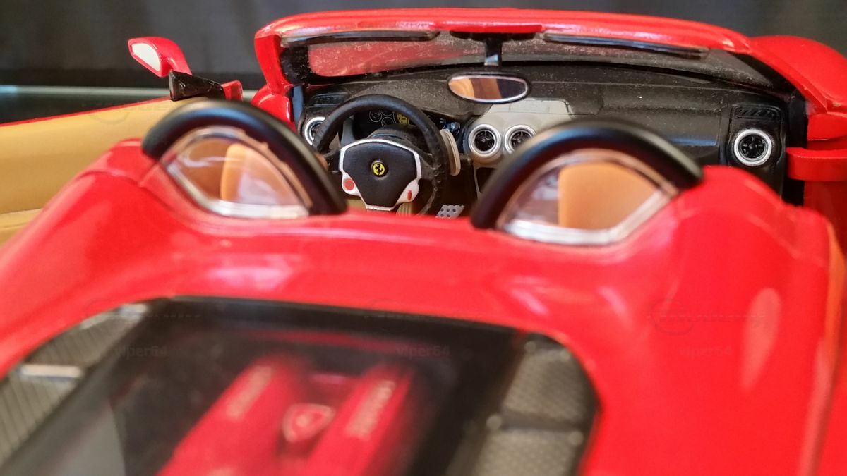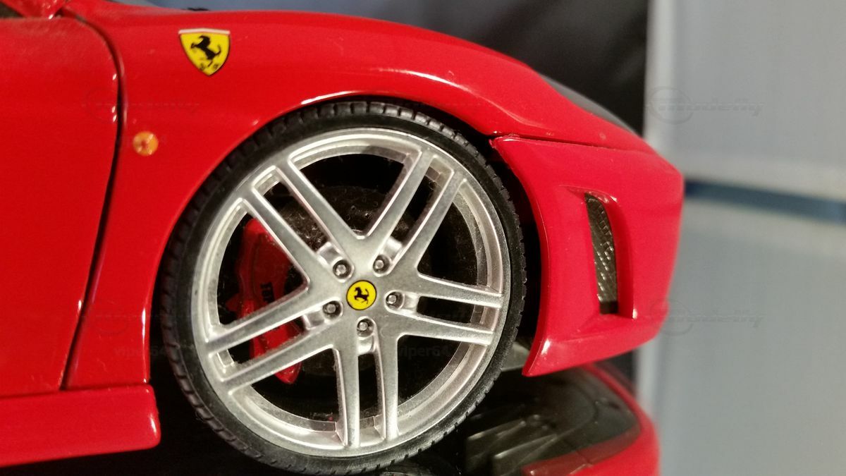 Extreme Aufmerksamkeit wurde auch dem Design der Außendetails des Wagens zuteil. Die Außenspiegel verfügen nun über speziell geformte Doppelarme, um den Luftfluss hin zu den Einlässen am Motor zu leiten, während die Modellbezeichnung F430 auf die Rückseite des Außenspiegels auf der Fahrerseite eingeprägt wurde. Nicht zuletzt kann man beinahe auch die Details des Motorraums mit speziellen Formen und Materialien als Kunstwerk bezeichnen.