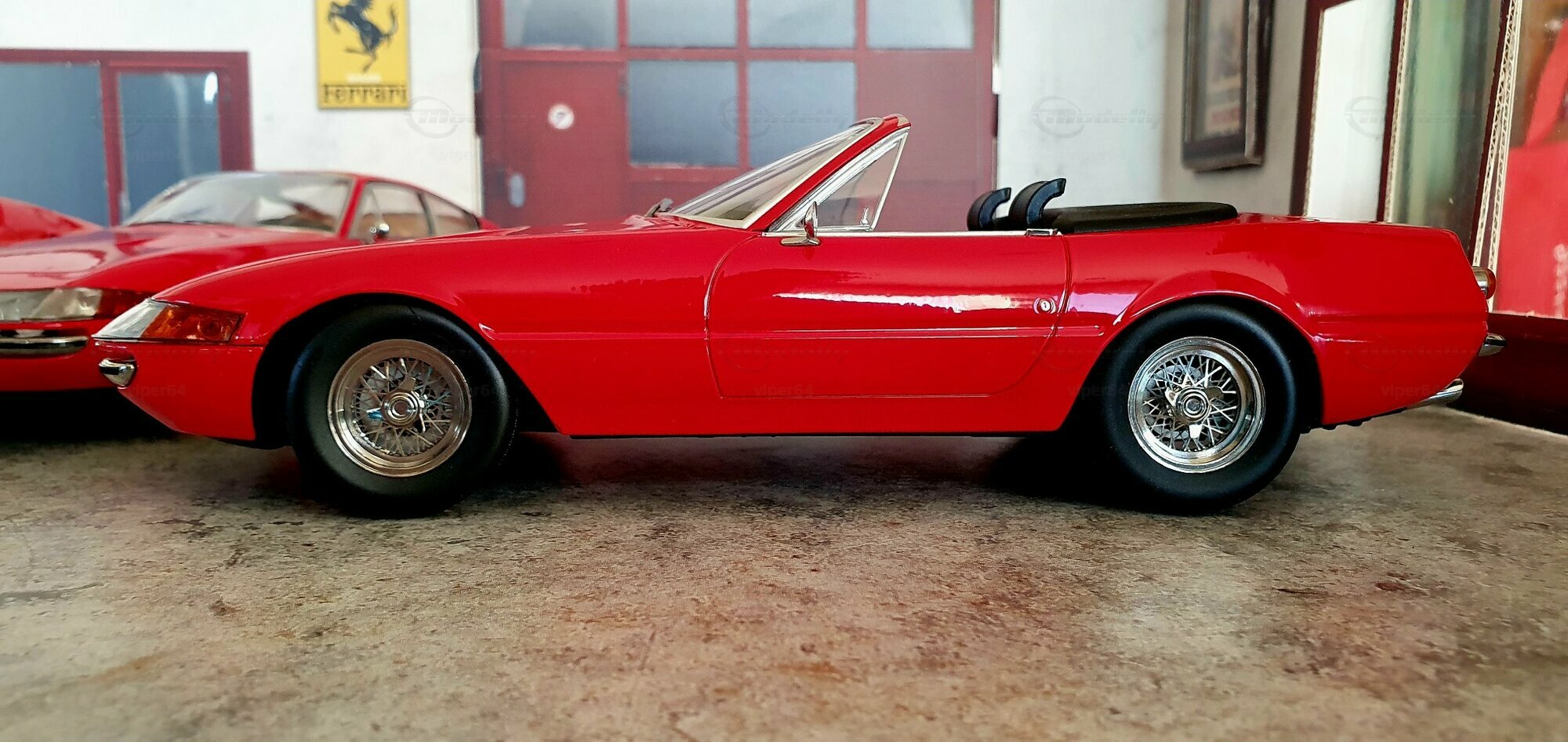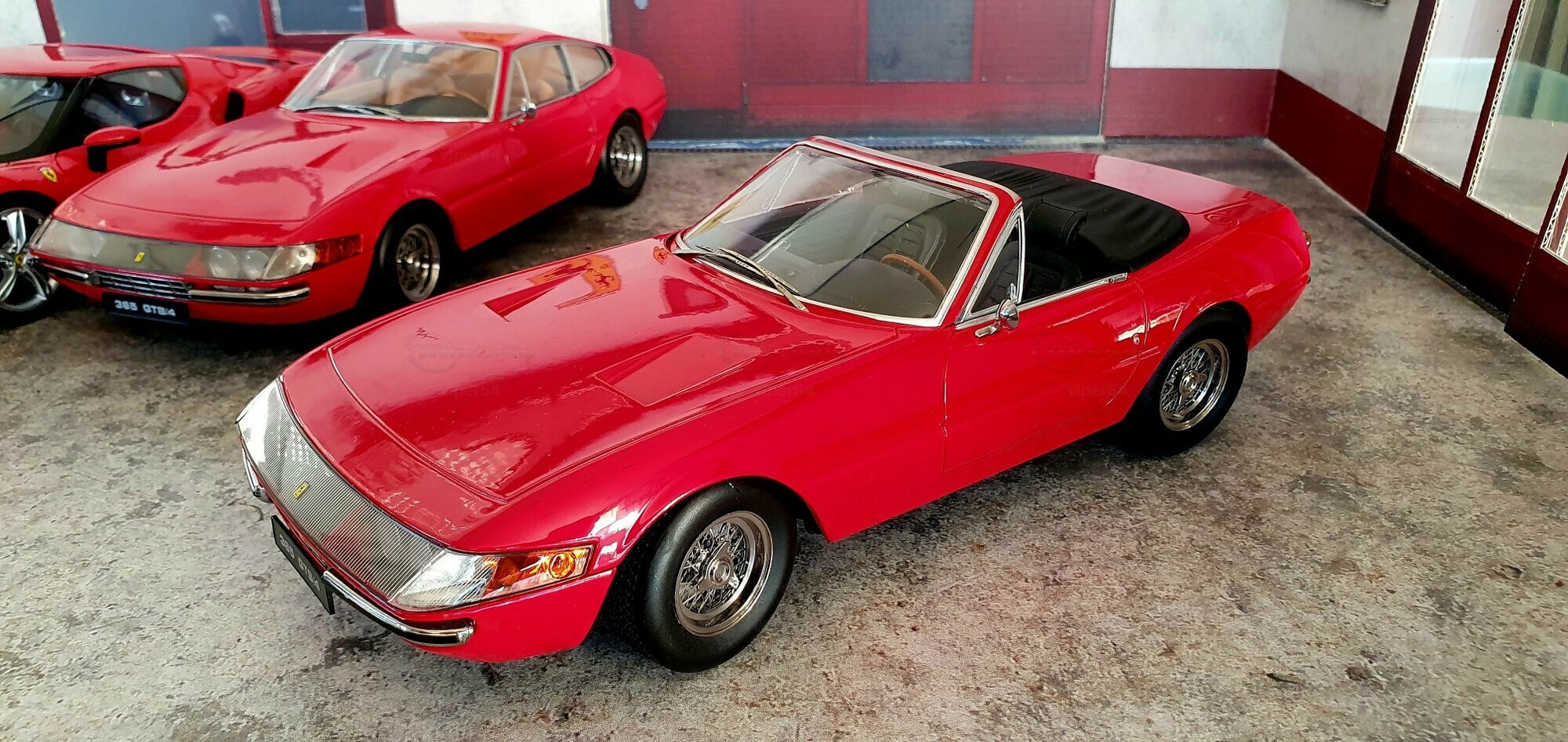 Den Ferrari 365 GTB/4 Daytona 1.Serie US-Version und die offene Version 1969 und den GTS/4 Daytona Spider 1.Serie US-Version 1969. Beide Modelle, aus der Fertigung von KK-SCALE, sind DieCast und in 1/18