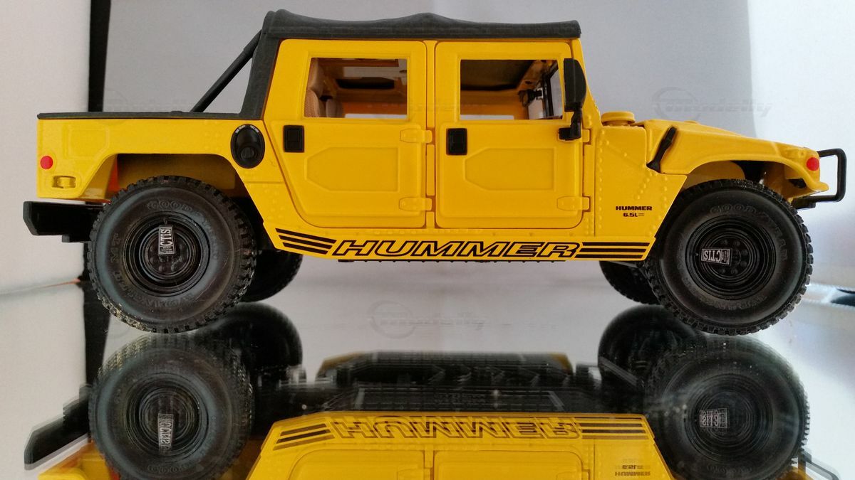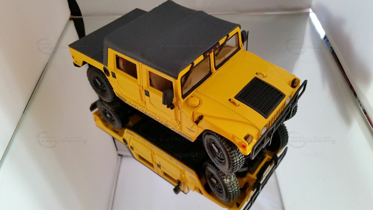 Dieses Modell des Hummer H1 in 1:18 Maßstab ist ein hervorragendes Beispiel für die Präzisionsarbeit von Maisto. Es wurde aus Diecast-Material gefertigt und daher besonders robust. Das Detailreichtum dieses Modells ist bemerkenswert. Zu den sichtbaren Merkmalen gehören die gelbe Lackierung mit passenden schwarzen Akzenten und einem schwarzen Verdeck, was dem Fahrzeug einen unverwechselbaren Look verleiht. Besonders hervorzuheben ist die gut detaillierte Innenausstattung, die richtige Dächerstruktur des Soft-Top und die genaue Wiedergabe der Scheinwerfer. Die Details machen dieses Modell zu einem Hingucker in jeder Sammlung, wie sie im Foto von Modellauto-Sammler "viper64" aus der Modelly-Community zu sehen ist.