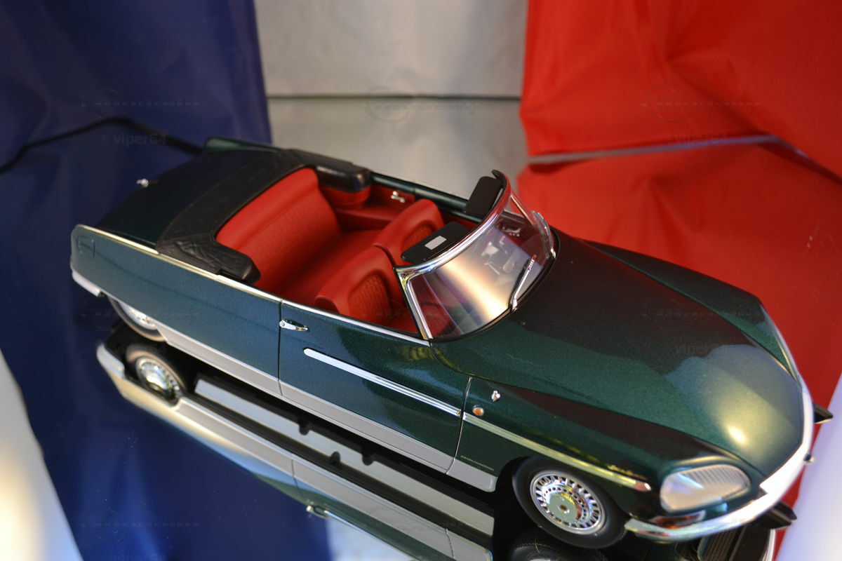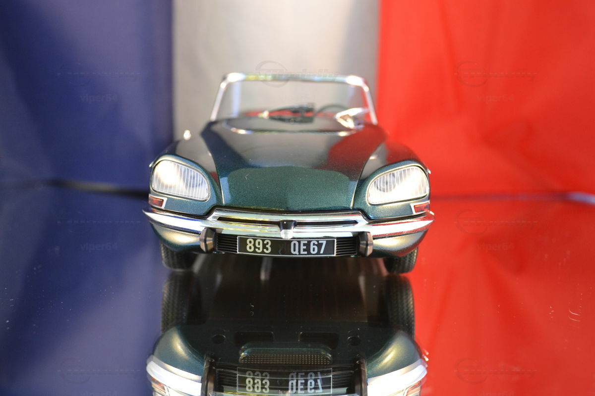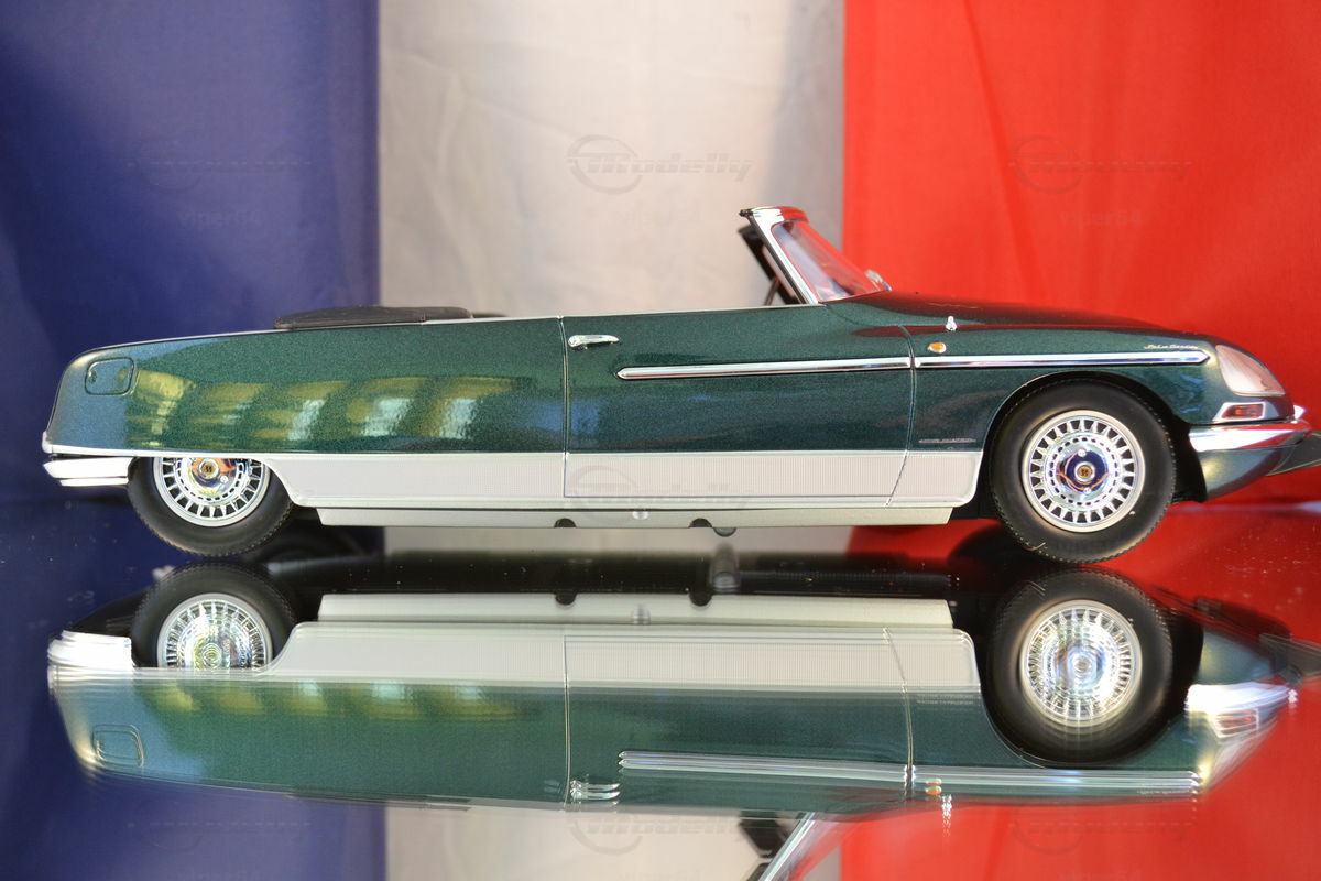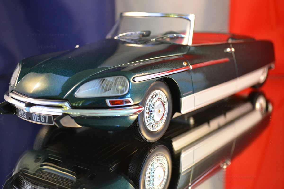 Das hier gezeigte Modellauto in 1:18 Maßstab, hergestellt von Metal 18, ist ein bemerkenswert detailliertes Abbild des originalen Citroën DS21 Cabriolet Palm Beach. Modellly-Mitglied "viper64" besitzt dieses Modell, das in der Sammlung eine besondere Stellung einnimmt. Auffällig an dem Modell ist die akribische Nachbildung des aufwendigen Designs und der luxuriösen Ausstattung. Hergestellt auf Basis von Druckgussmaterial (Diecast), vermittelt es ein realistisches Erscheinungsbild und dauerhafte Qualität.