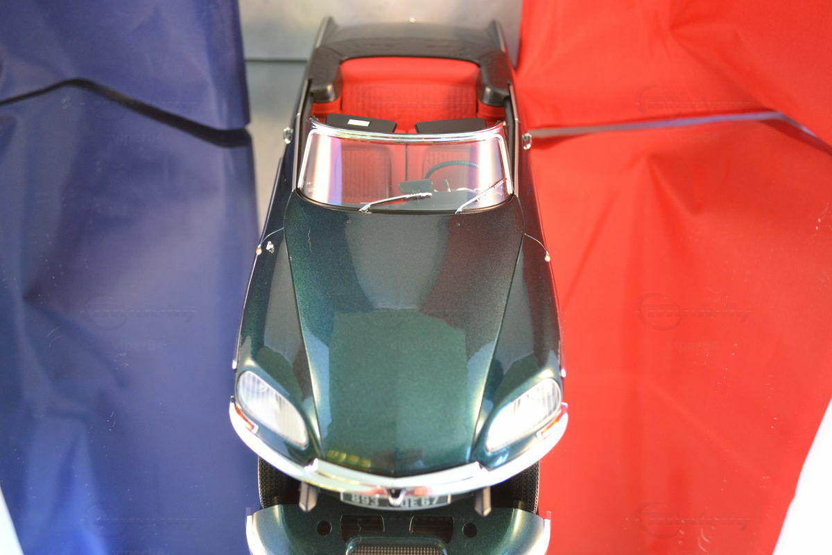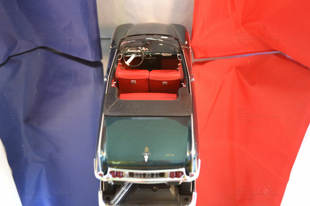 Das Originalfahrzeug, auf dem dieses präzise Miniaturmodell basiert, ist der berühmte Citroën DS21 Cabriolet Palm Beach, der seinen Ursprung in den späten 1950er Jahren hat. Der Citroën DS war eine bahnbrechende Limousine, die erstmals 1955 von André Lefèbvre und Flaminio Bertoni entworfen wurde und mit innovativer Technologie und avantgardistischem Design die Welt der Automobile revolutionierte. Die spezifische Generation des Citroën DS21 wurde von 1967 bis 1971 produziert, und der Henry Chapron-Umbau zum Cabriolet war eine exklusive Variante, die durch ihren stilvollen Aufbau und luxuriösen Komfort hervorstach. Der Citroën DS21 ist bekannt für sein hydropneumatisches Federungssystem, das ein außergewöhnliches Fahrkomfort bietet.