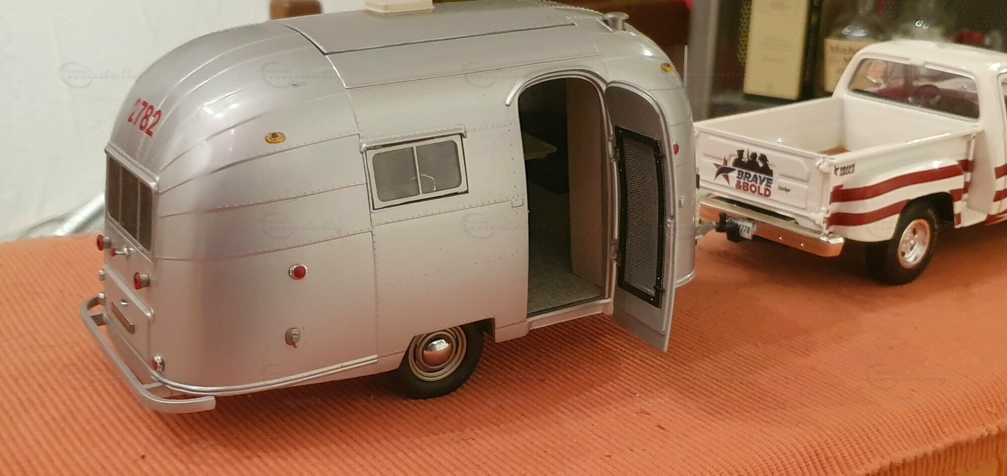 Ein Airstream 'Bambi' 16 von 1961, hier in schwerer ( ganze 1751gr.‼️ ) DieCast-Ausführung in 18, aus der Manufaktur MotorCity Classics.