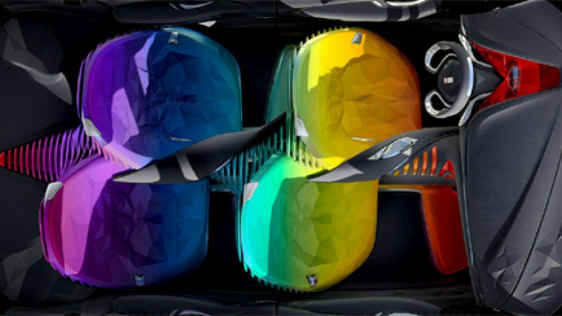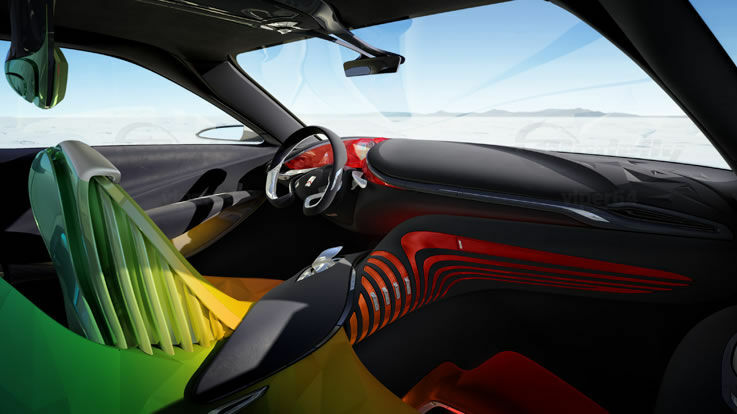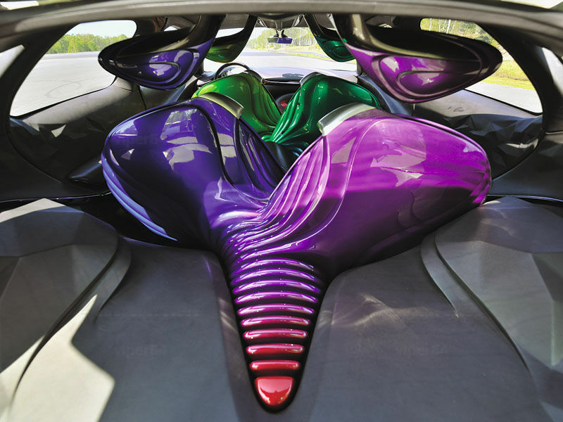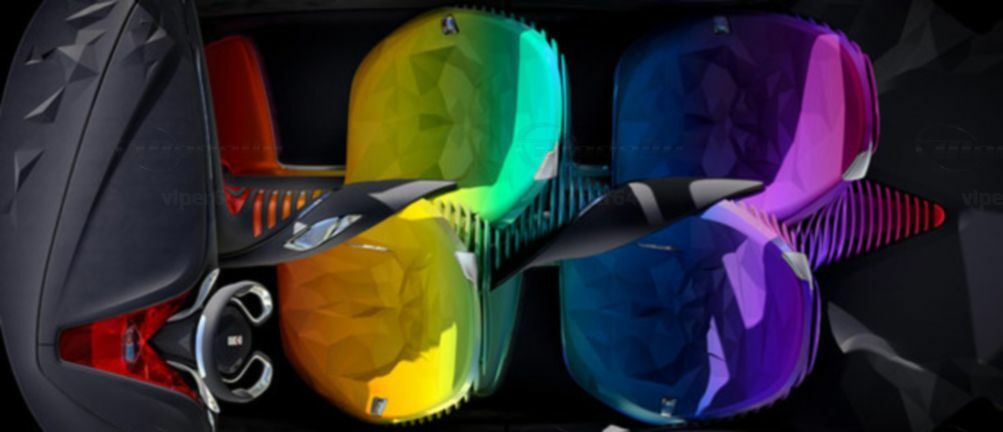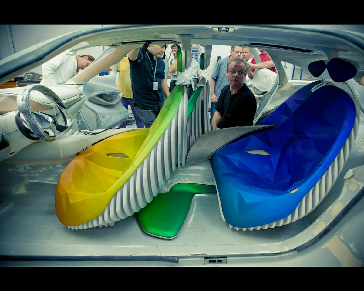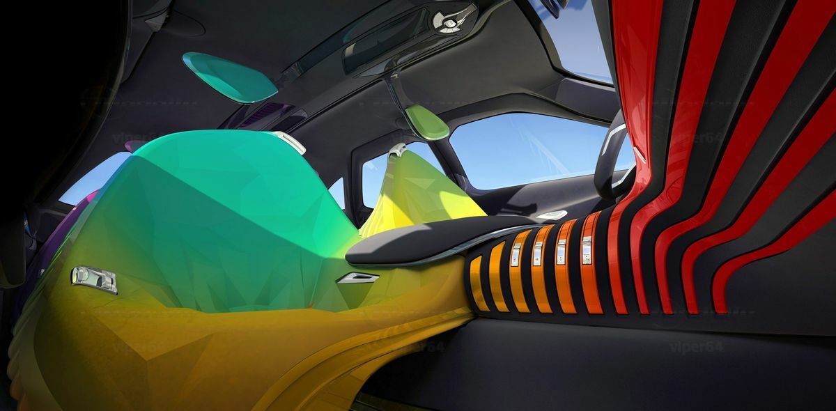 Der Innenraum erstrahlt in allen Regenbogenfarben, die einen starken Kontrast zum Farbton der Karosserie bilden.
