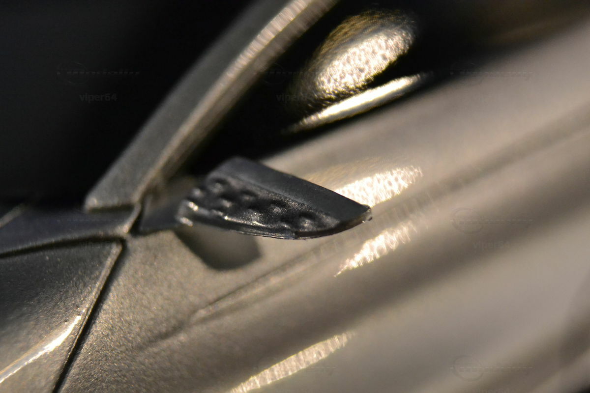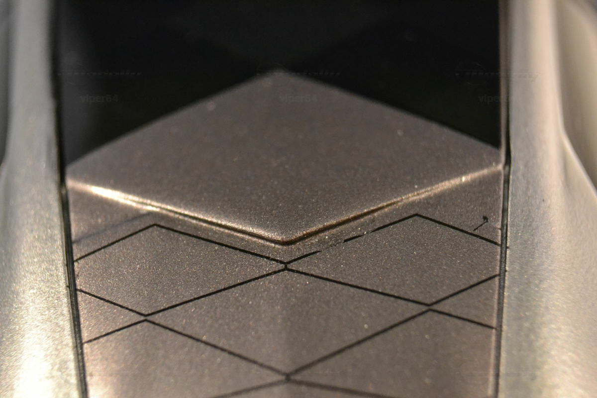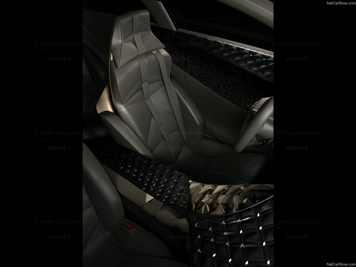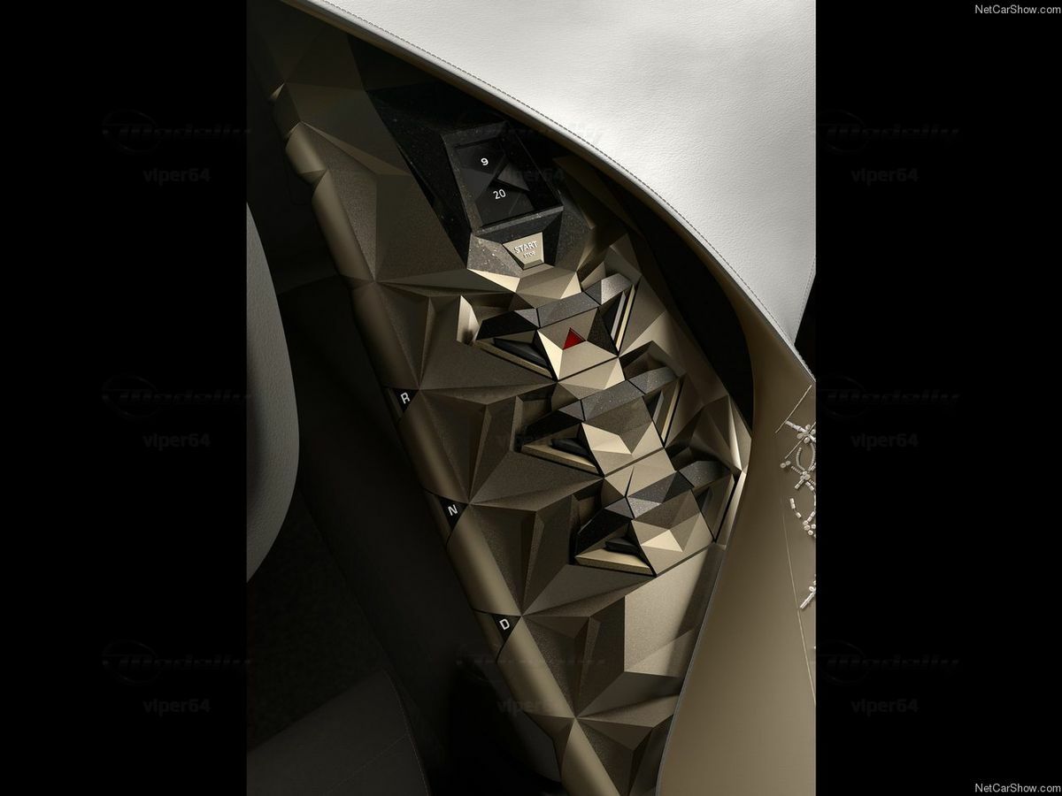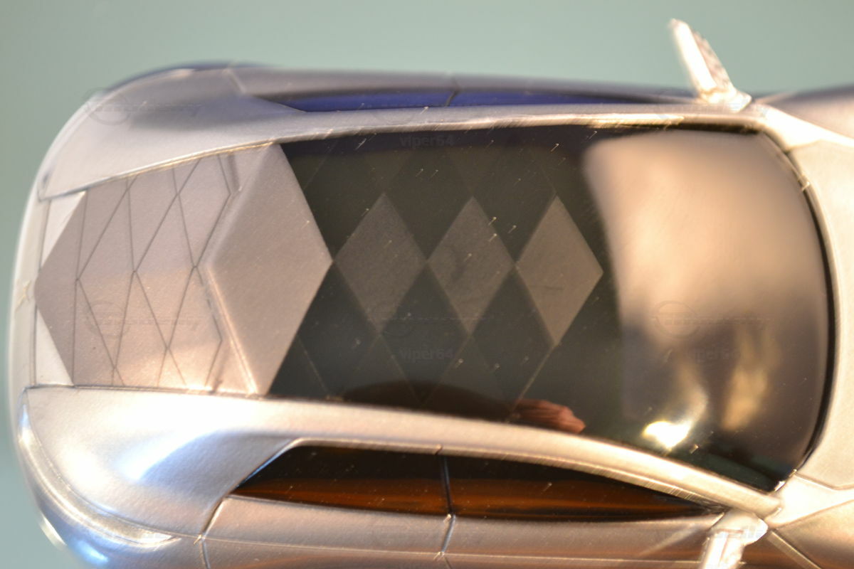 Zwar ist das Showcar nur gut 4,20 Meter lang und deshalb alles andere als eine luxuriöse Limousine, doch dafür funkelt das Designmodell, der tatkräftigen Unterstützung von Swarovski sei Dank, als würde es beim Juwelier und nicht auf einem Automobilsalon präsentiert. Und als wären die Edelsteine in den Scheinwerfern und auf den Charakterlinien des Coupés noch nicht genug, trägt das Coupé einen schwarz abgesetzten Streifen längs übers Heck, der wahlweise an den Rückenpanzer eines Gürteltiers oder das Gliederarmband einer Uhr erinnert. Im Dach noch von gläsernen Kacheln durchbrochen, schließt sich dieser aus verschiedenfarbigen Metallplatten gefertigte Schildpanzer weiter nach hinten komplett und ersetzt die Heckscheibe. So können die Passagiere im Fond ungehindert in ihrem eigenen Kokon kuscheln und der Fahrer schaut halt nicht in den Spiegel, sondern auf einen Monitor, auf den eine Kamera das Geschehen hinter dem Auto überträgt.