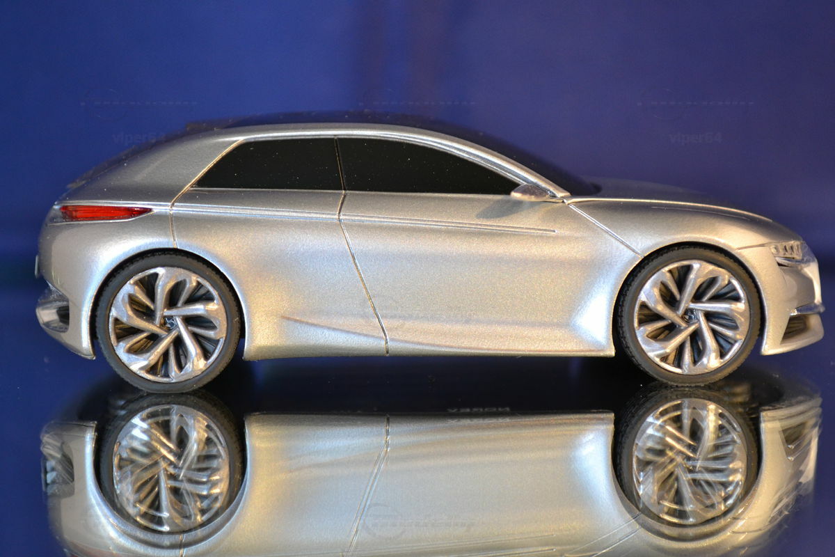Aber die göttliche Göttin will nicht nur schick, sondern auch sportlich sein. Sind die aktuellen DS-Modelle alle ein bisschen unförmig und schon im Stand behäbig, lässt das Messeauto provozierend die Muskeln spielen: Die Kotflügel sind extrem weit ausgestellt, die wenigen Linien an der Flanke messerscharf, die LED-Scheinwerfer und Rückleuchten böse funkelnd und der Grill so groß und gemein, als könnten darin kreuzbrave Kleinwagen auf Nimmerwiedersehen verschwinden. Und damit das Paket auch schön glaubwürdig wird, röhrt unter der Haube der 270 PS starke Turbo aus dem Peugeot RCZ-R.