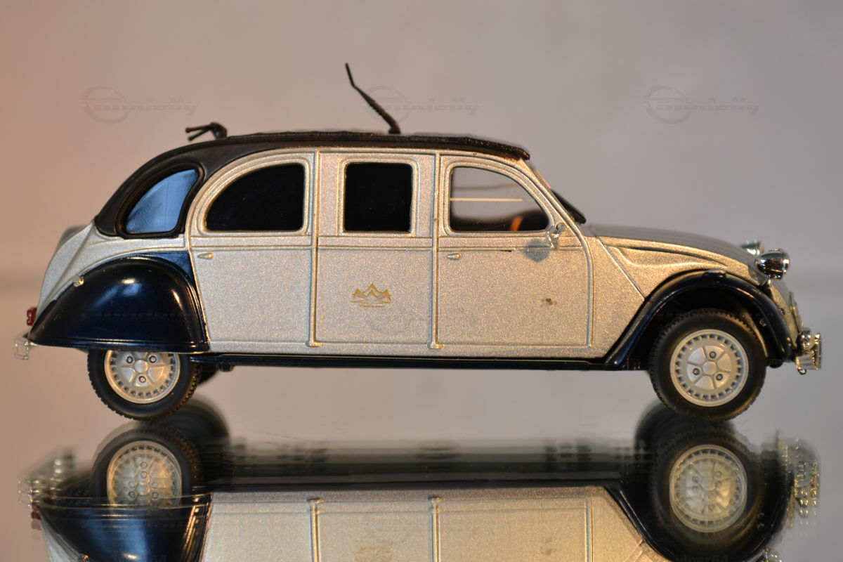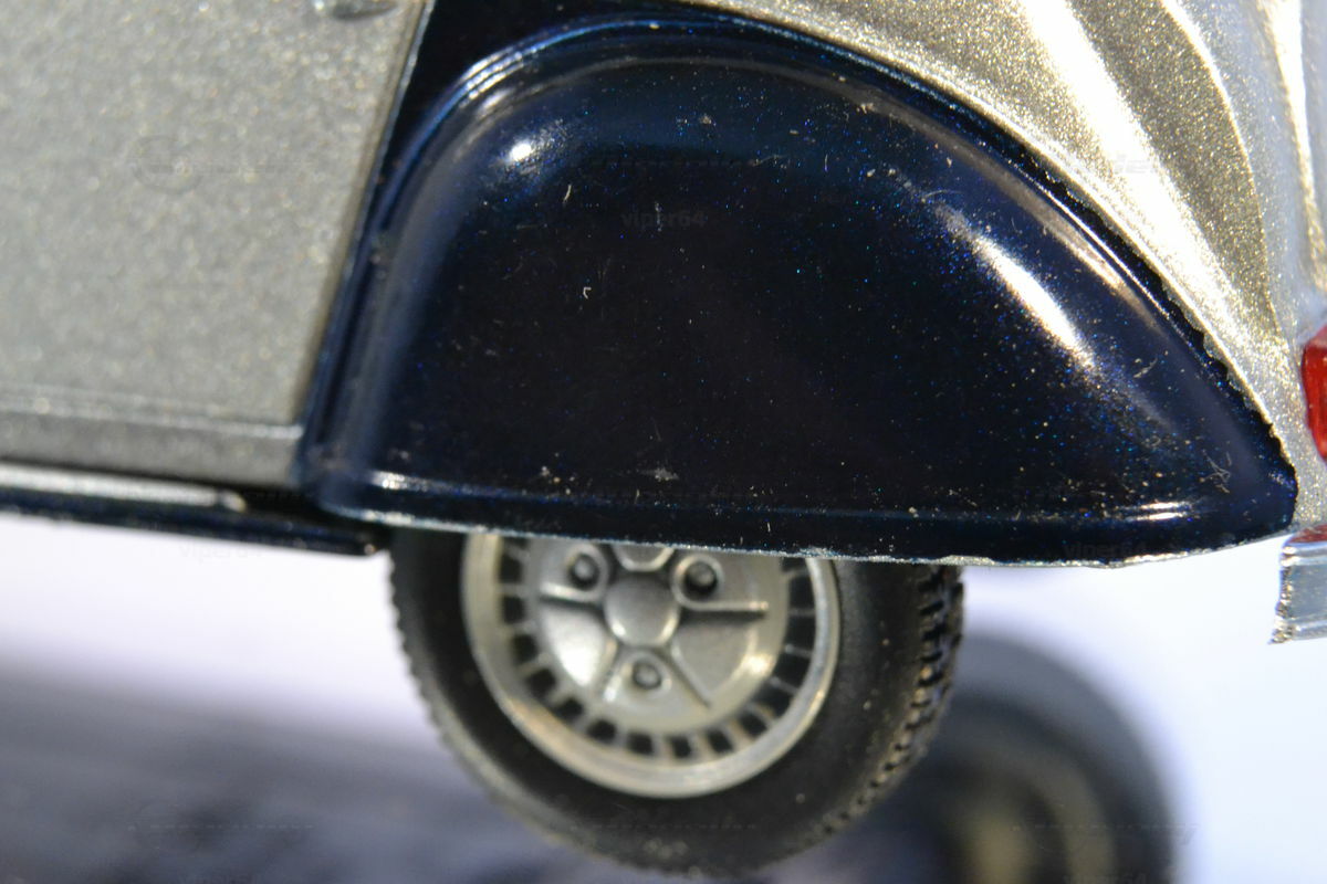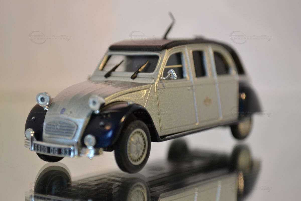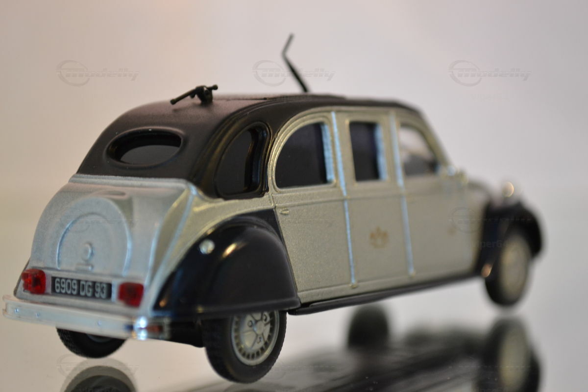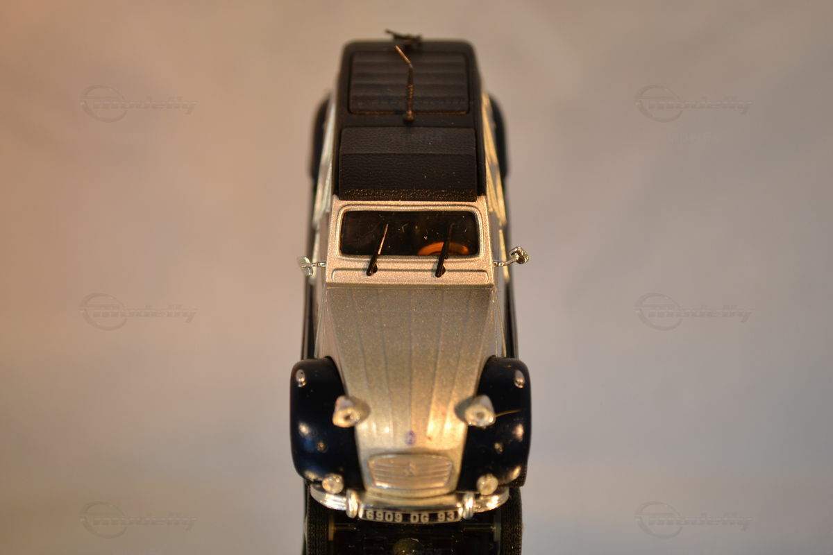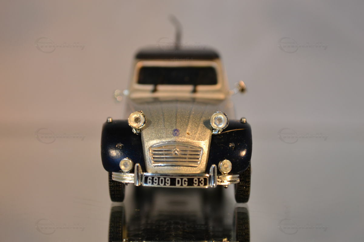Das Sammlermodell des Citroën 2 CV Limousine im Maßstab 1:43 von Norev besitzt besondere und genau nachgebildete Details. Hergestellt aus Diecast-Material, besticht das Modell durch präzise Nachbildung der Proportionen und Linien des Originals. Besonders hervorzuheben sind die silber-farbenen Lackierungen des Modells sowie die schwarzen und dunkelblauen Akzente an Kotflügeln und Dach, die dem Modell ein authentisches Erscheinungsbild verleihen. Die speziell nachgebildeten Felgen heben die Liebe zum Detail hervor. Modellautosammler auf der ganzen Welt schätzen solche präzisen Nachbildungen, die die historische Bedeutung des Originals würdigen.