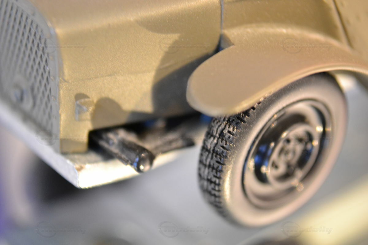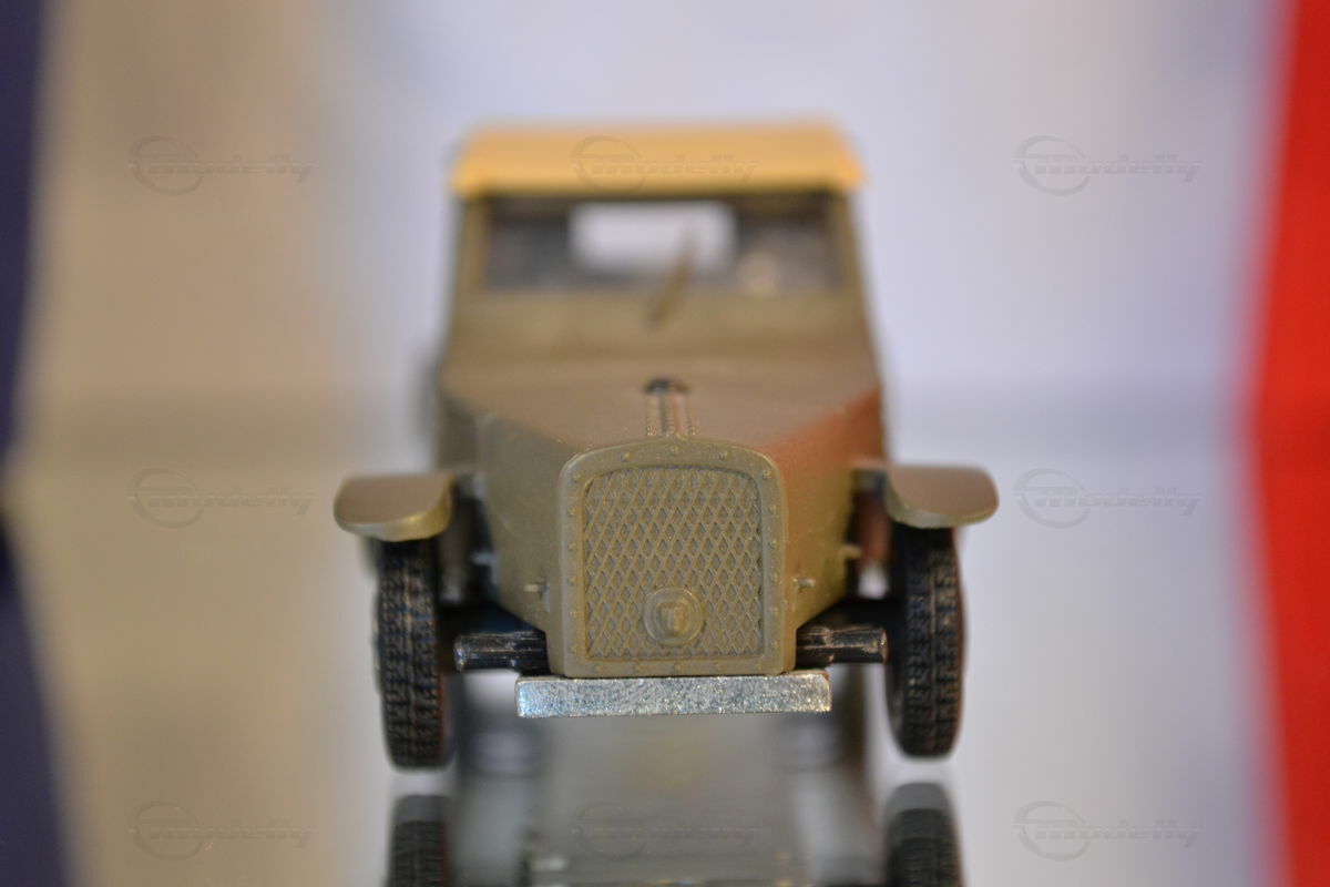 Das Modell im Maßstab 1:43 von Norev, das hier vorgestellt wird, repräsentiert den Citroen 2 CV Pick-Up Prototyp in einer sehr authentischen Art und Weise. Das Modell ist in einem matten Olivgrün lackiert, das auf das originalgetreue Militärdesign der damaligen Prototypen hinweist. Das Dach ist in einem beigen Ton gehalten, um einen Kontrast zur Karosserie zu schaffen und die besonderen Farbelemente hervorzuheben. Die Ladefläche zeigt die typische Holzplanken-Optik und die Radkästen sind perfekt nachgebildet. Dieses Modell bietet Sammlern nicht nur eine visuell ansprechende Nachbildung, sondern auch eine historische Verbindung zu einem besonderen Kapitel der Automobilgeschichte. Die exakt nachgebildeten Reifen und die minimalistisch gehaltenen Details der Karosserie machen dieses Diecast-Modell zu einem Highlight in jeder Sammlung.