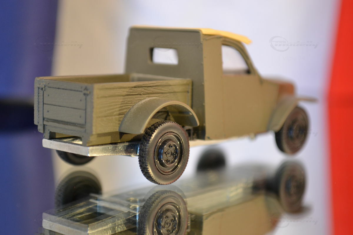 Der Citroen 2 CV Pick-Up Prototyp war eine experimentelle Ausbaustufe des regulären 2 CV und spiegelte die Vielseitigkeit dieses Fahrzeugs wider. Die Entwickler, darunter der Designer Flaminio Bertoni, hatten es sich zur Aufgabe gemacht, ein leichtes und langlebiges Arbeitsfahrzeug zu konzipieren. Mit einem Gewicht von rund 600 kg und einem Motor, der eine bescheidene aber praktische Leistung von 9 PS erbrachte, war dieser Pick-Up auf Wirtschaftlichkeit und Einfachheit ausgelegt. Weitere technische Features des Originals umfassten eine Vorderachsfederung mit Zugstreben und ein robustes Fahrgestell, das für verschiedenste Einsatzbereiche geeignet war.