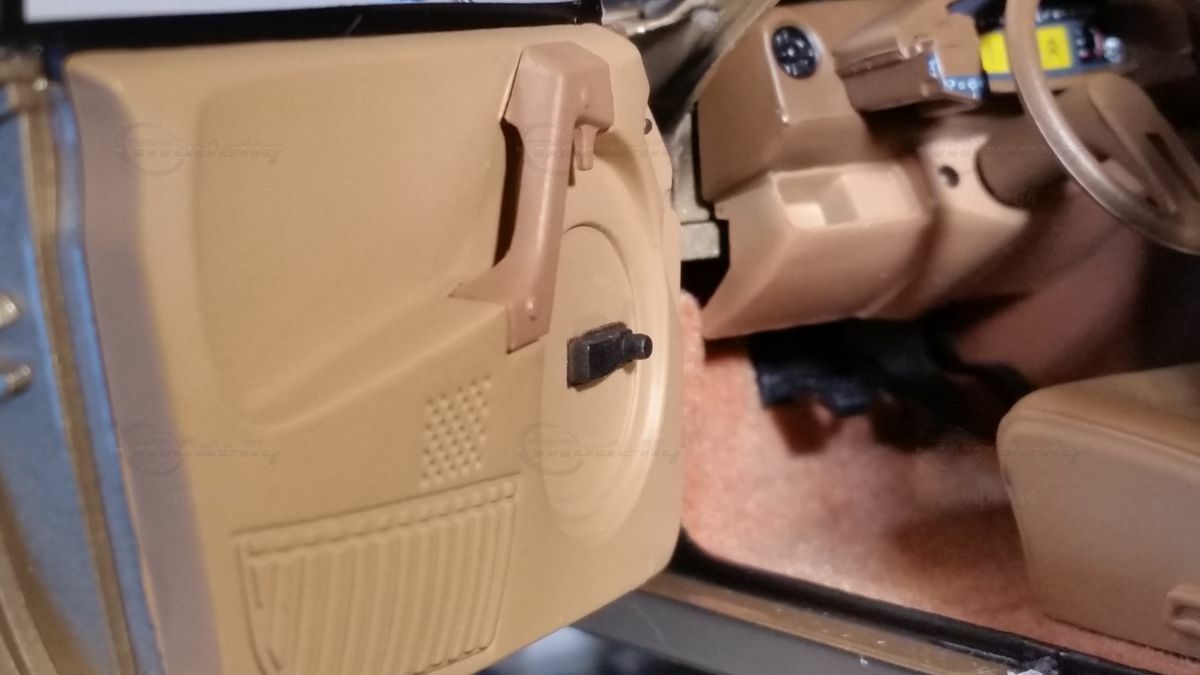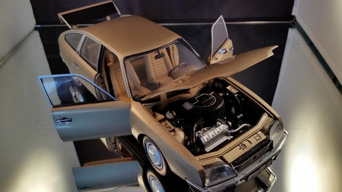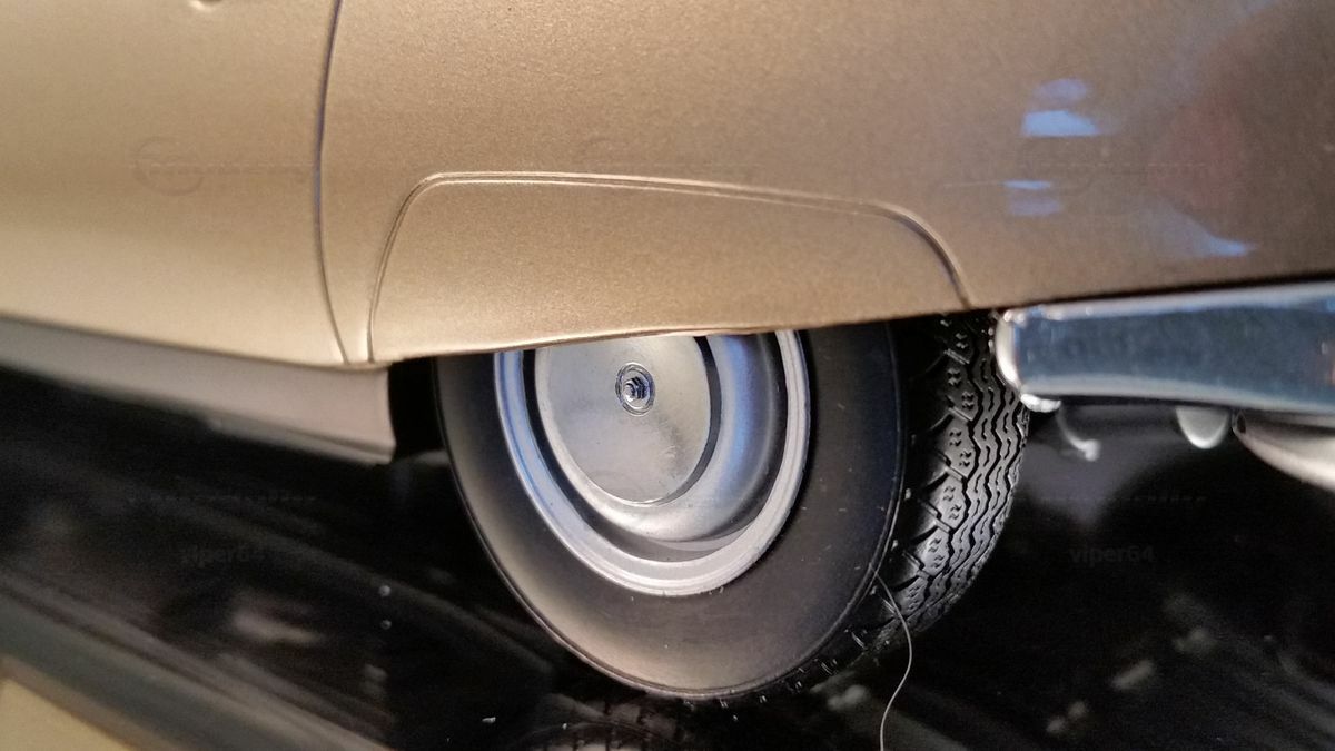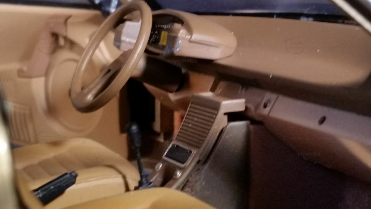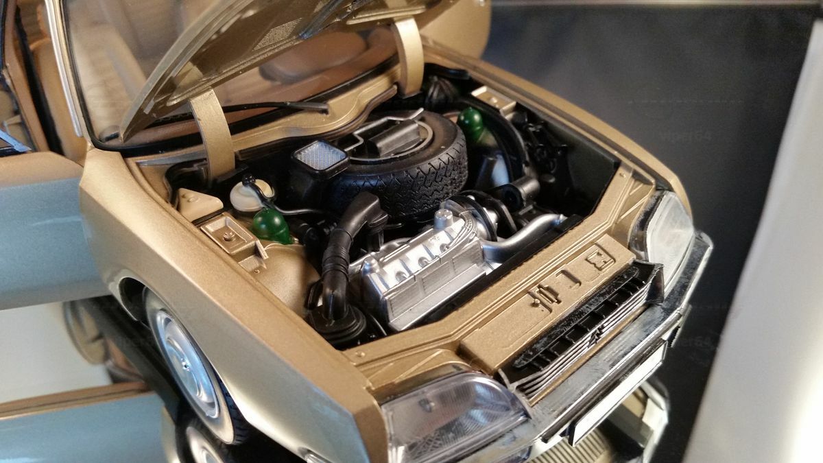 Das Modell von Norev hat mal wieder faszinierende Details parat, die es sehr hochwertig macht. Im Motorraum wurde wirklich alles nachgebildet. Die Hydraulikzylinder, das Ersatzrad mit Wagenheber, der vergitterte Lufteinlass bis hin zur Doppelklanghupe. Die Detailgenauigkeit geht im Innenraum weiter. Das Cockpit mit allen Lampen, den zylindrischen Tacho und Drehzahlmesser, die Mittelkonsole mit allen Elementen bis hin zu dem "Pistolenabzug ähnlichen" Türöffner. sowohl Innenraum und Kofferraum sind mit Teppisch ausgelegt.